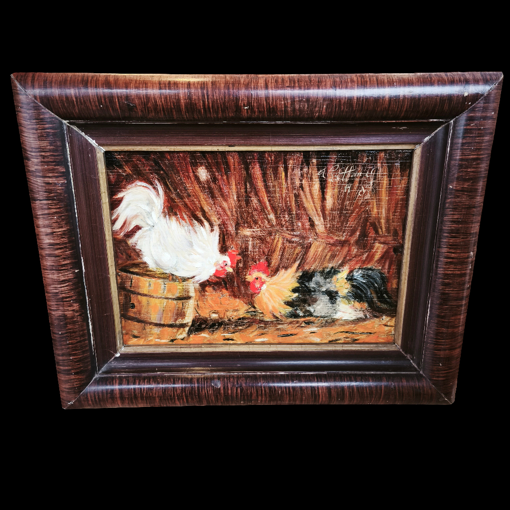 Aristodemo Lattanzi Villela - Óleo sobre madera 'Dos gallos'