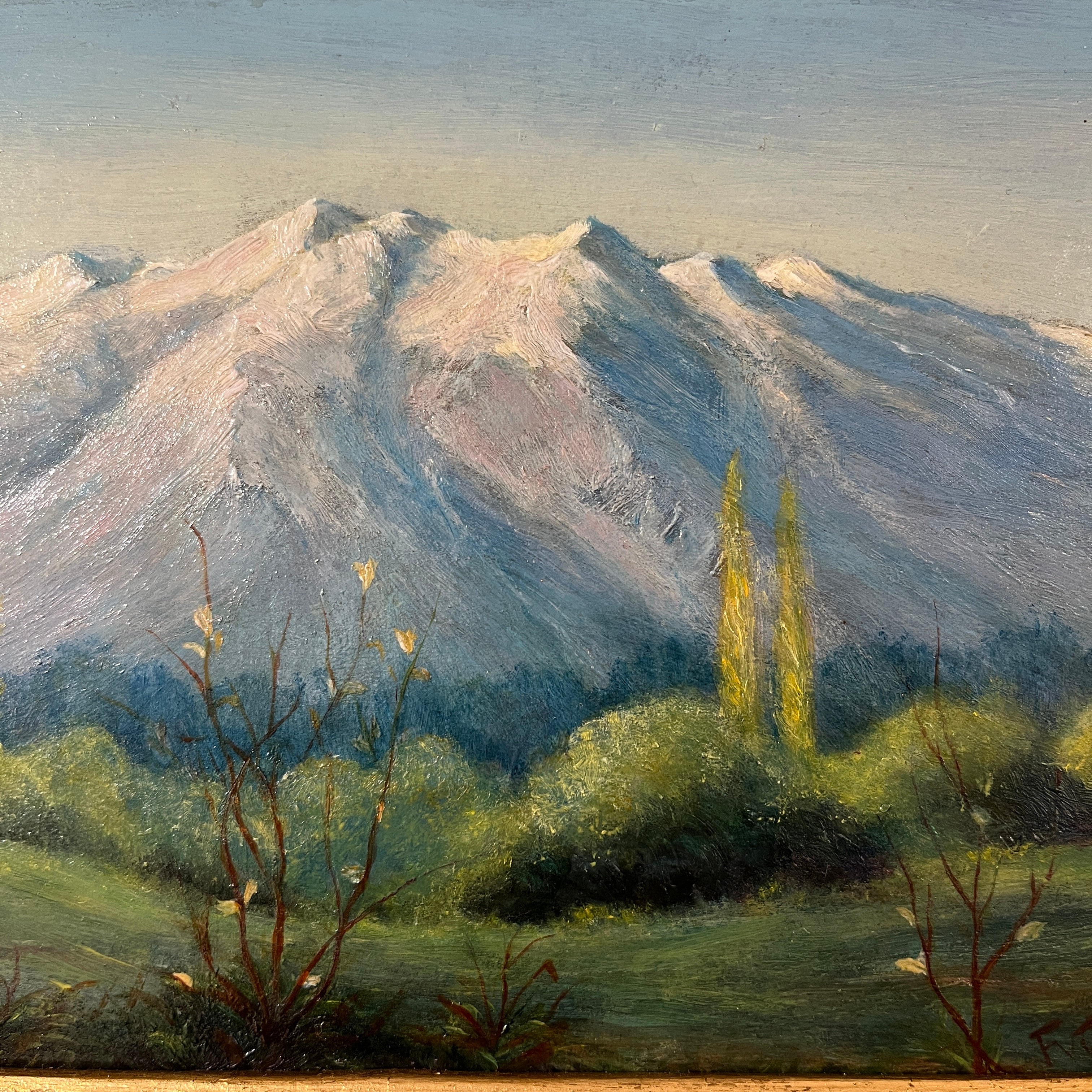 Florencio Vial - Óleo sobre madera 'Paisaje valle y cordillera'