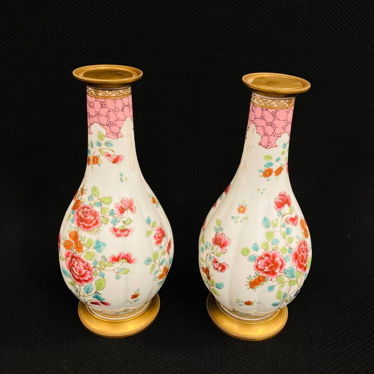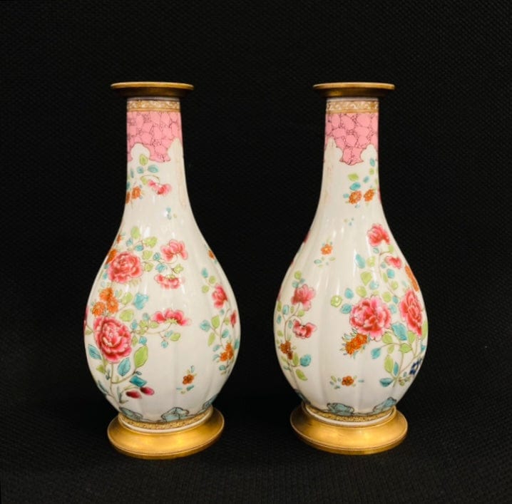 Bellas lámparas de porcelana pintadas a mano y montadas en bronce.