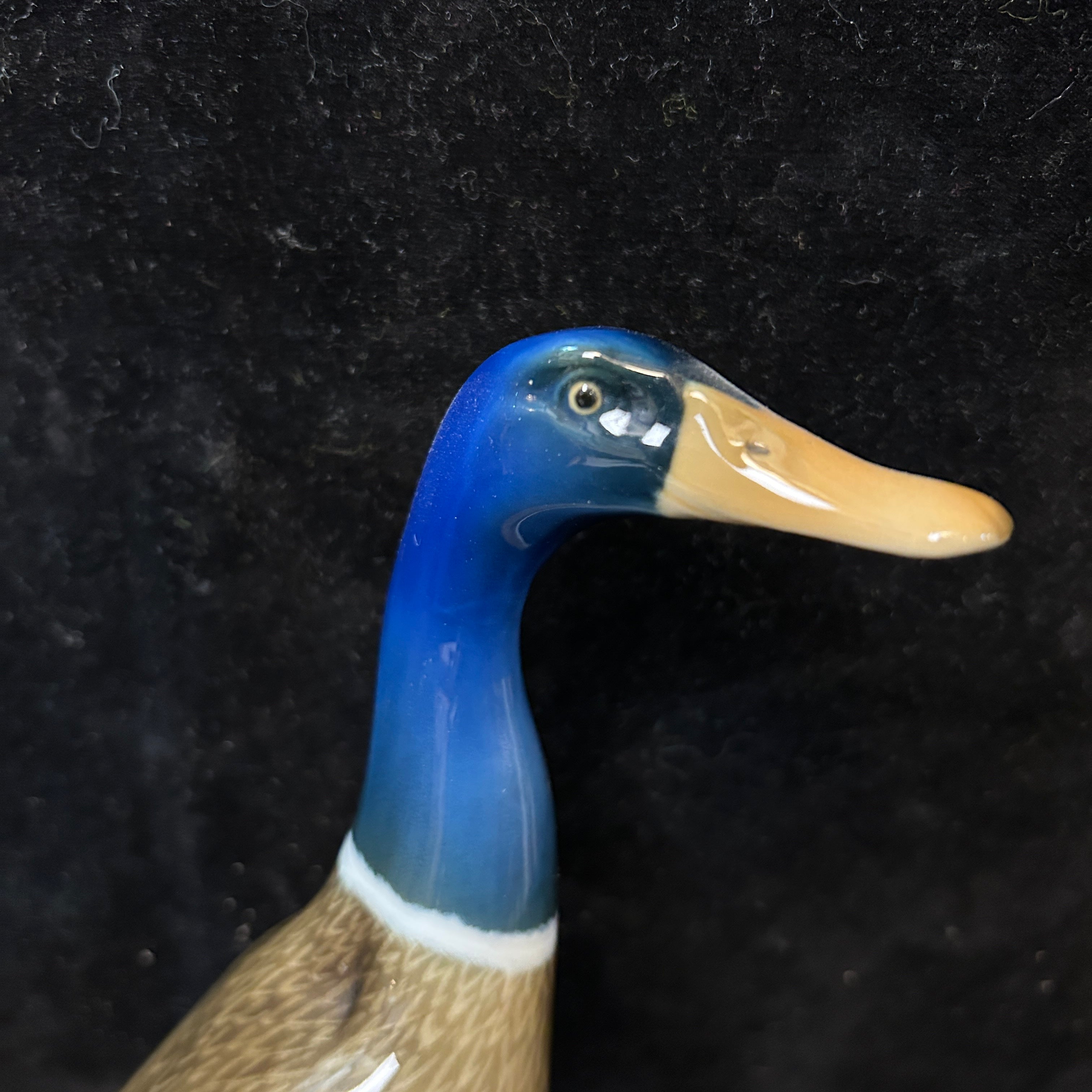 Delicada figura de un pato de porcelana de la prestigiosa marca alemana Lorenz Kuntsabtellung, pintada a mano donde destacan delicados detalles como sus ojos, el plumaje de su pecho o las patas palmeadas.