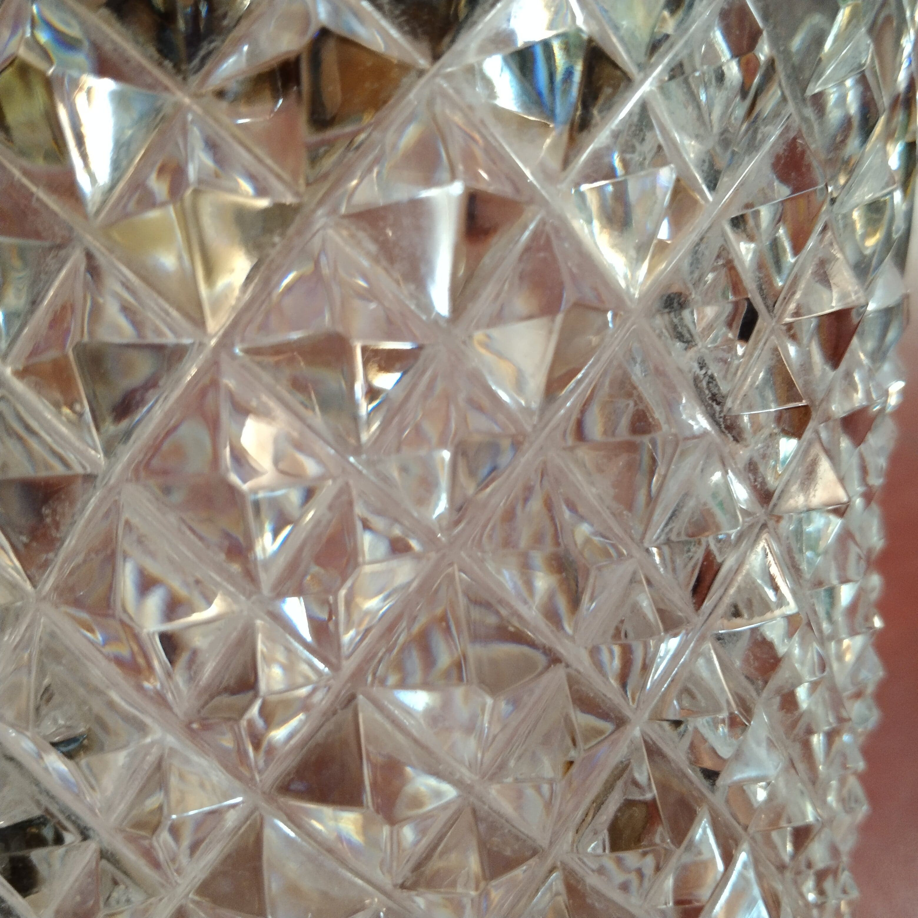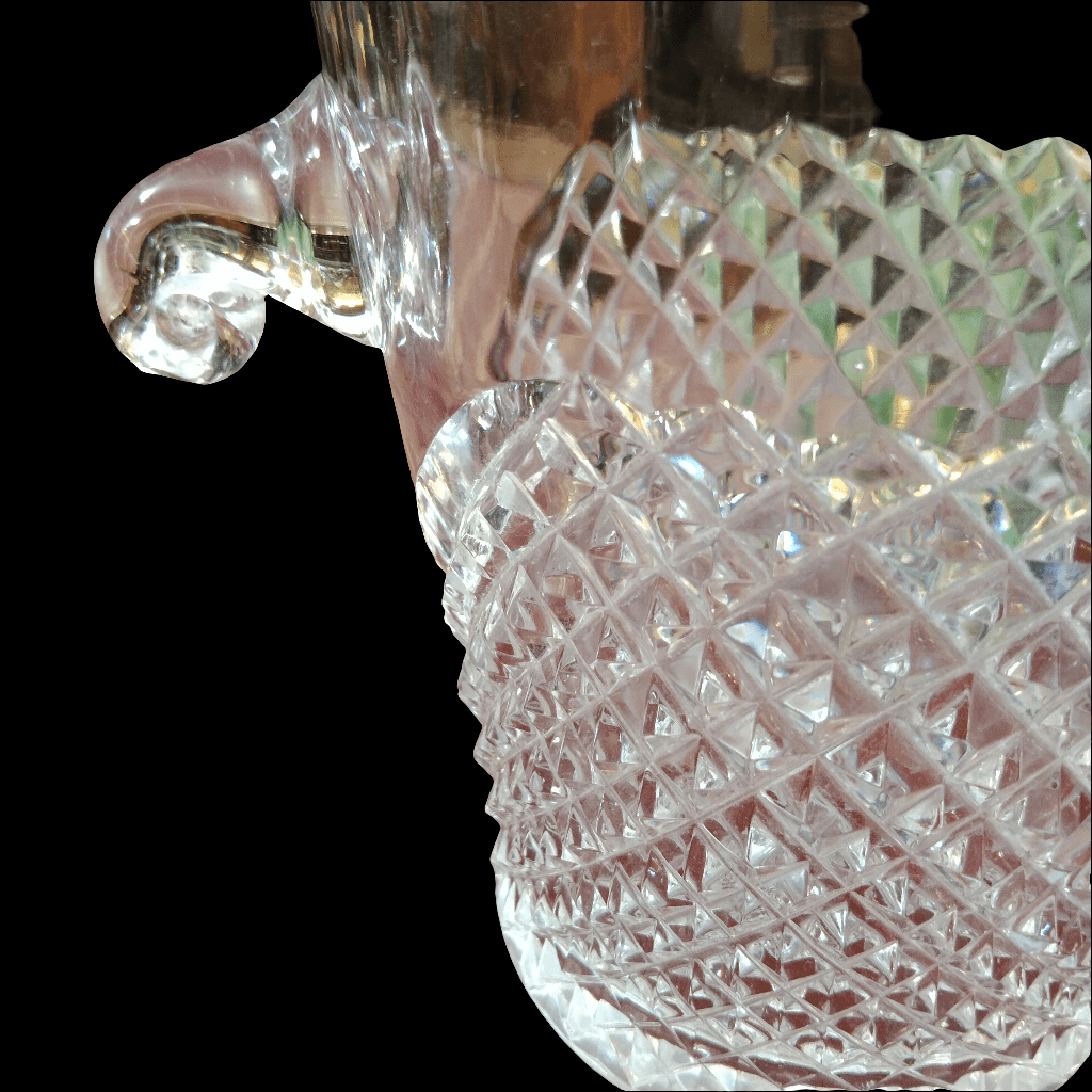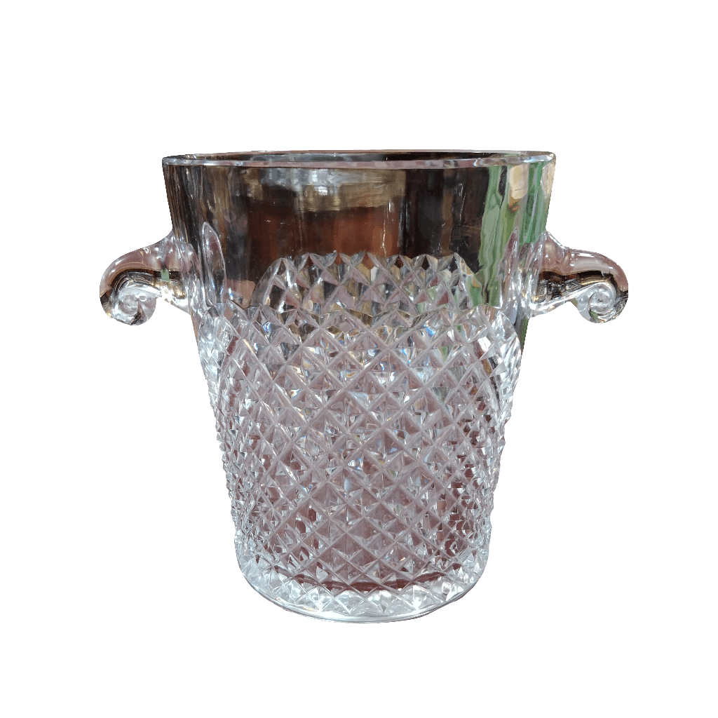Hielera de cristal corte geométrico y asas curvas