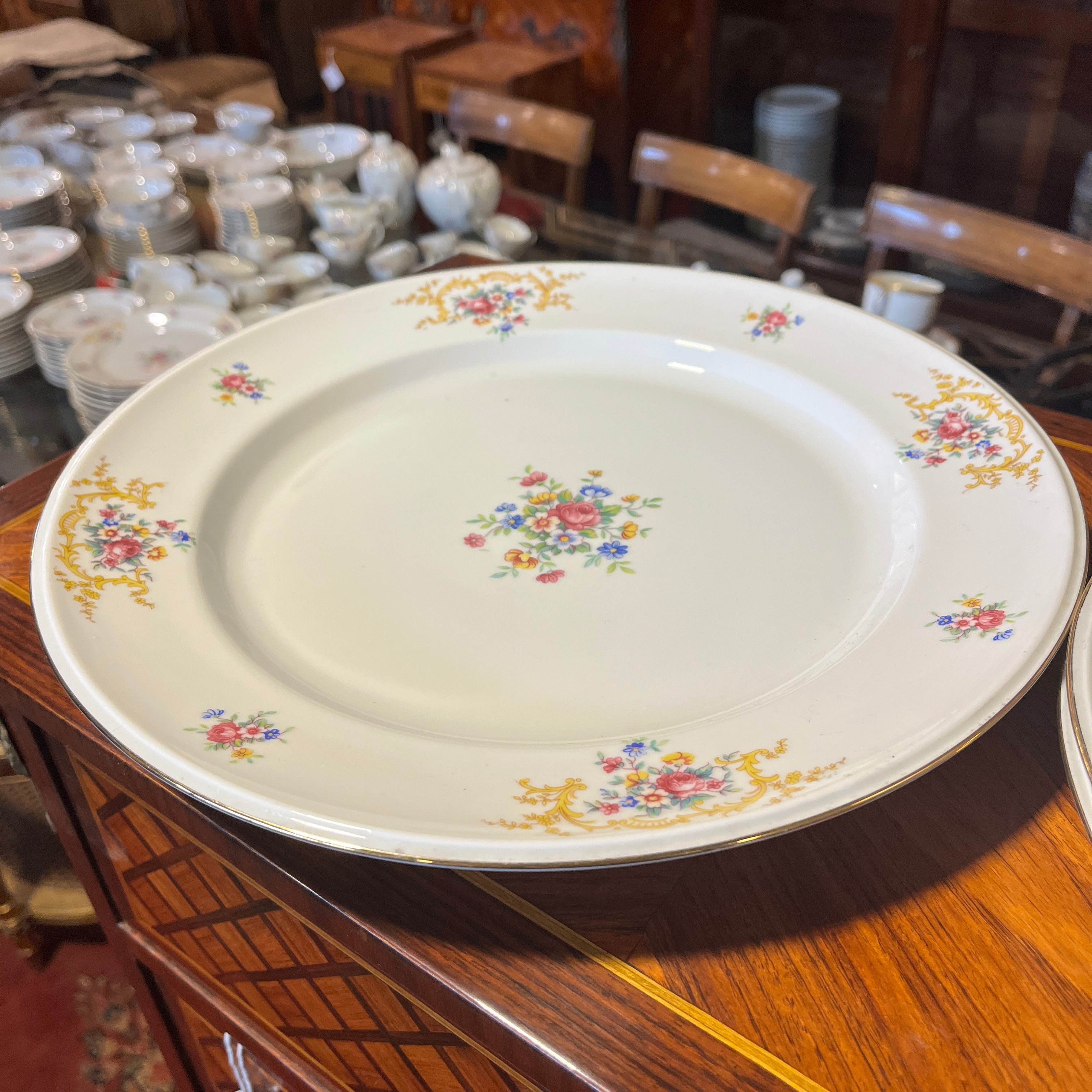 Juego de porcelana alemana Hutschenreuter 207 piezas Diseño flores y guirnalda dorada