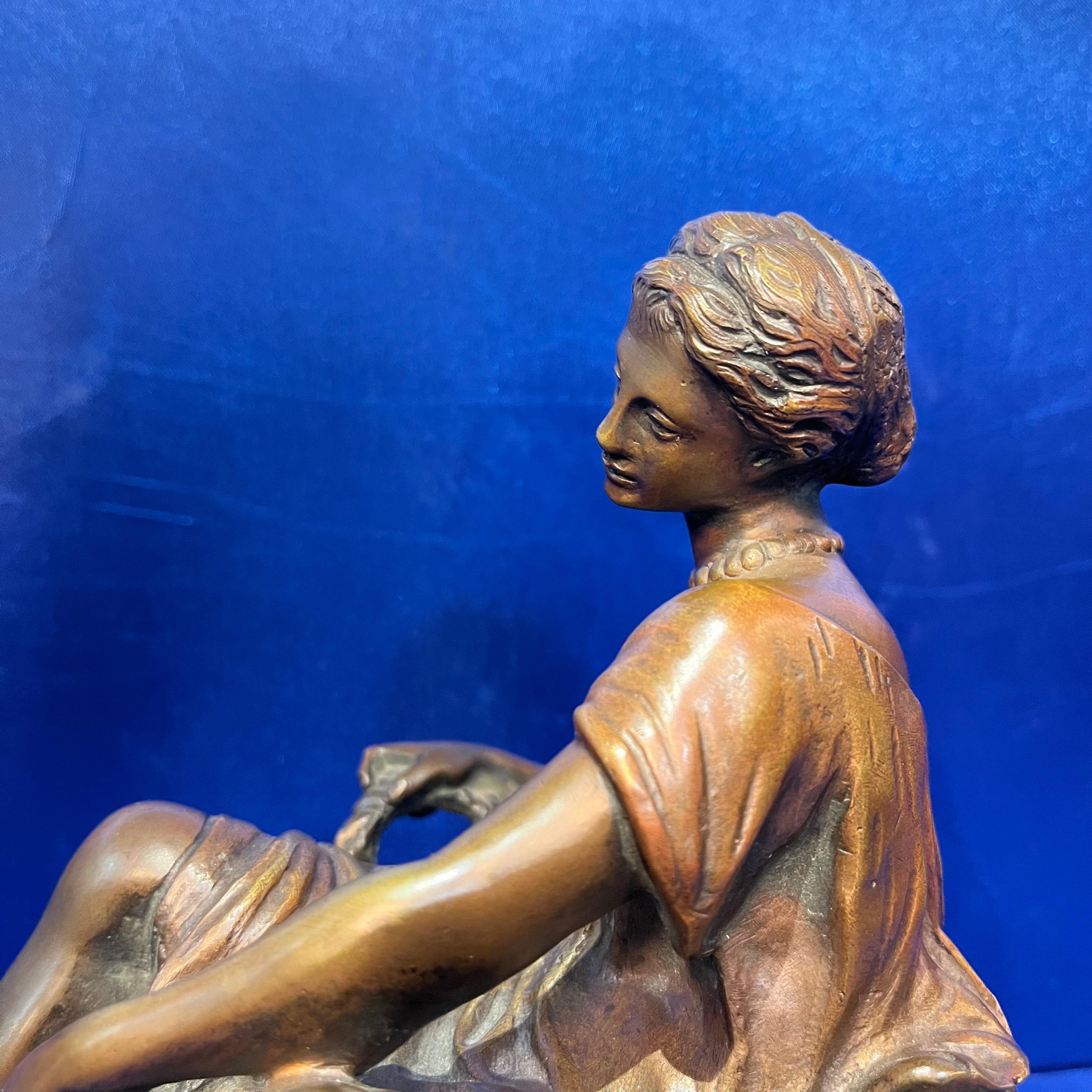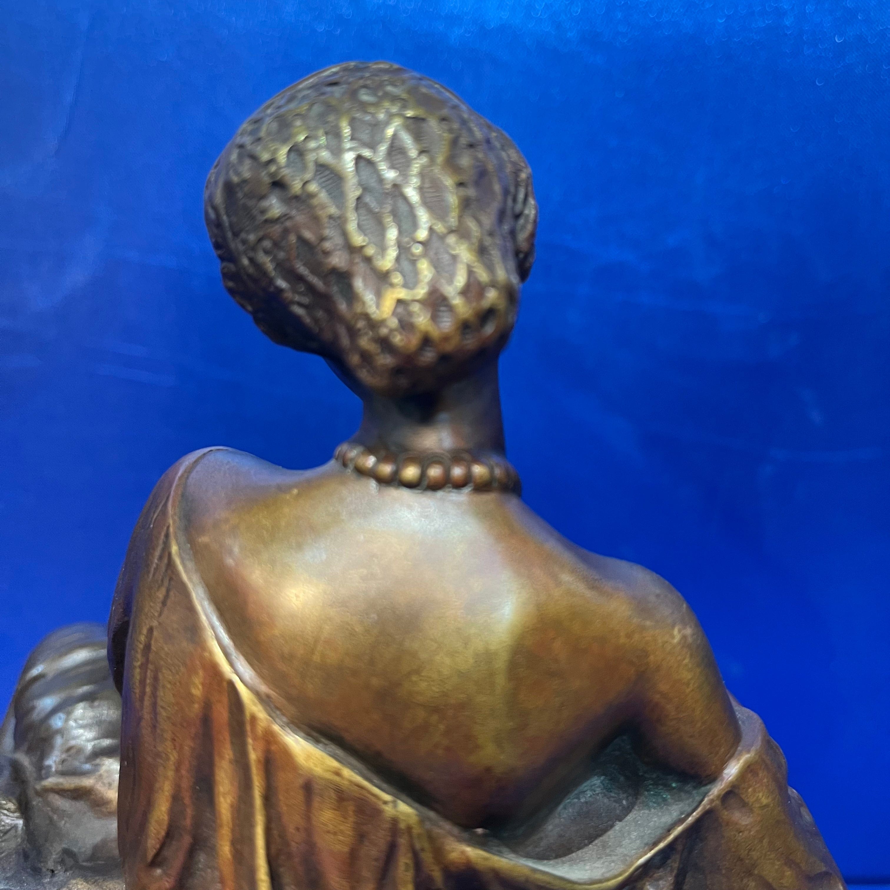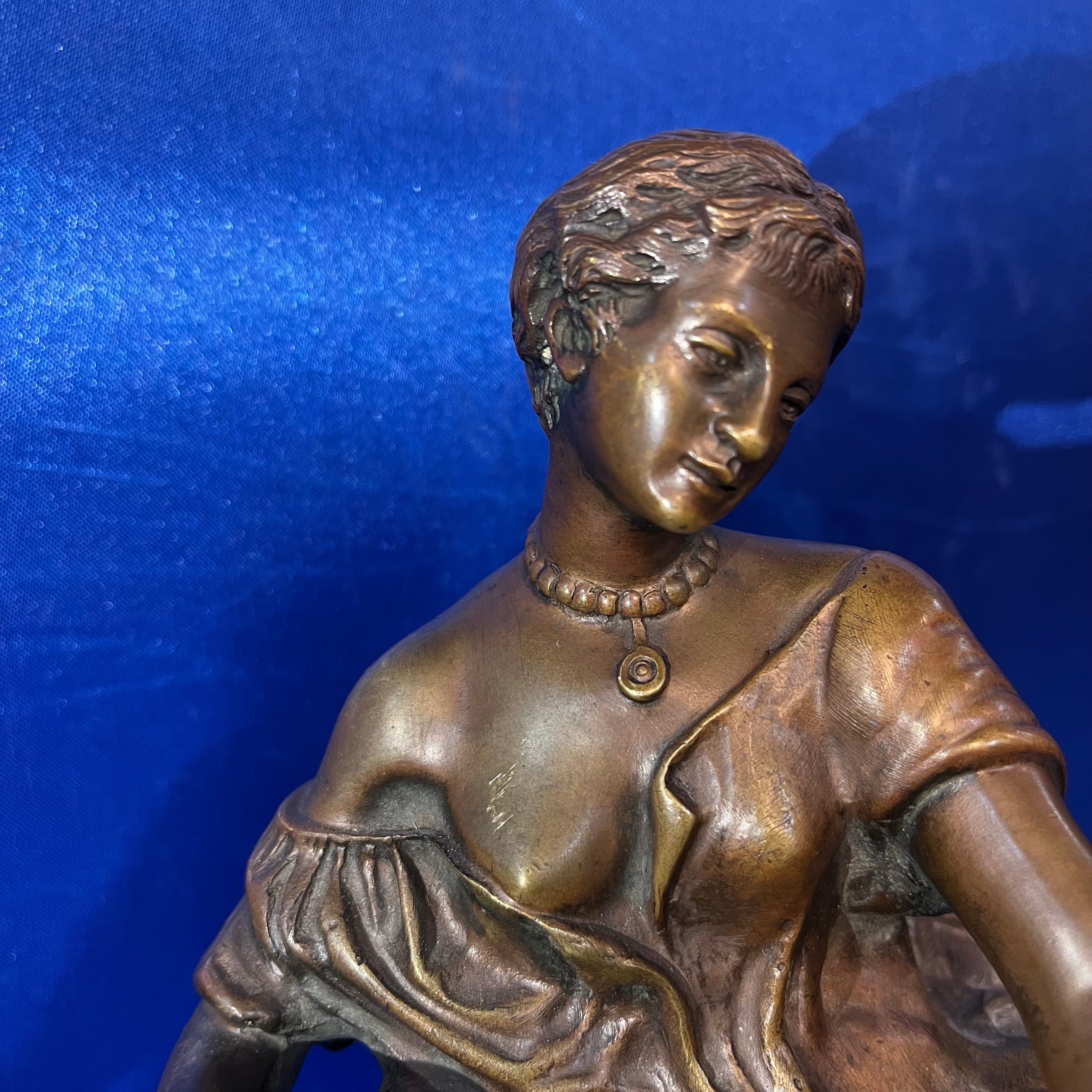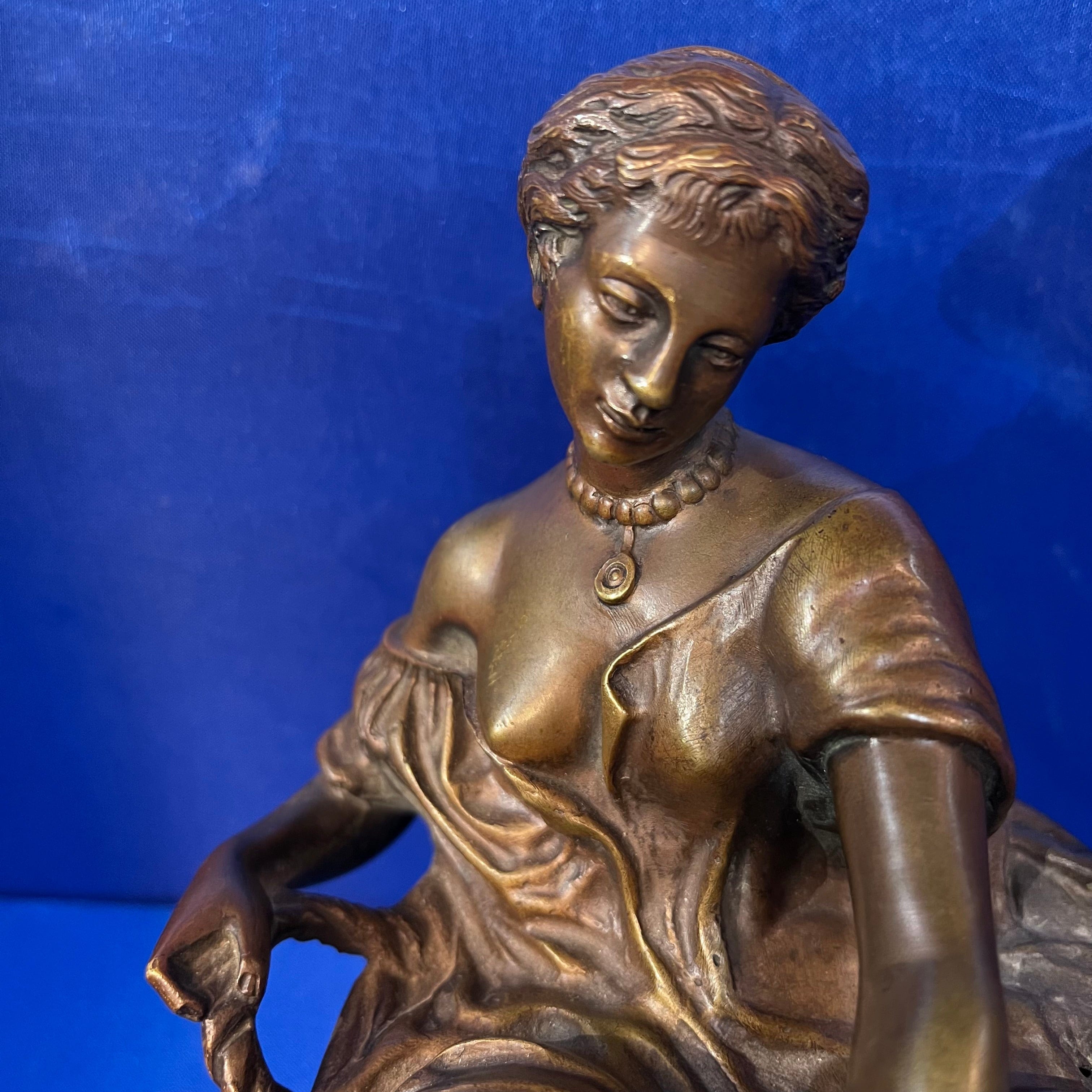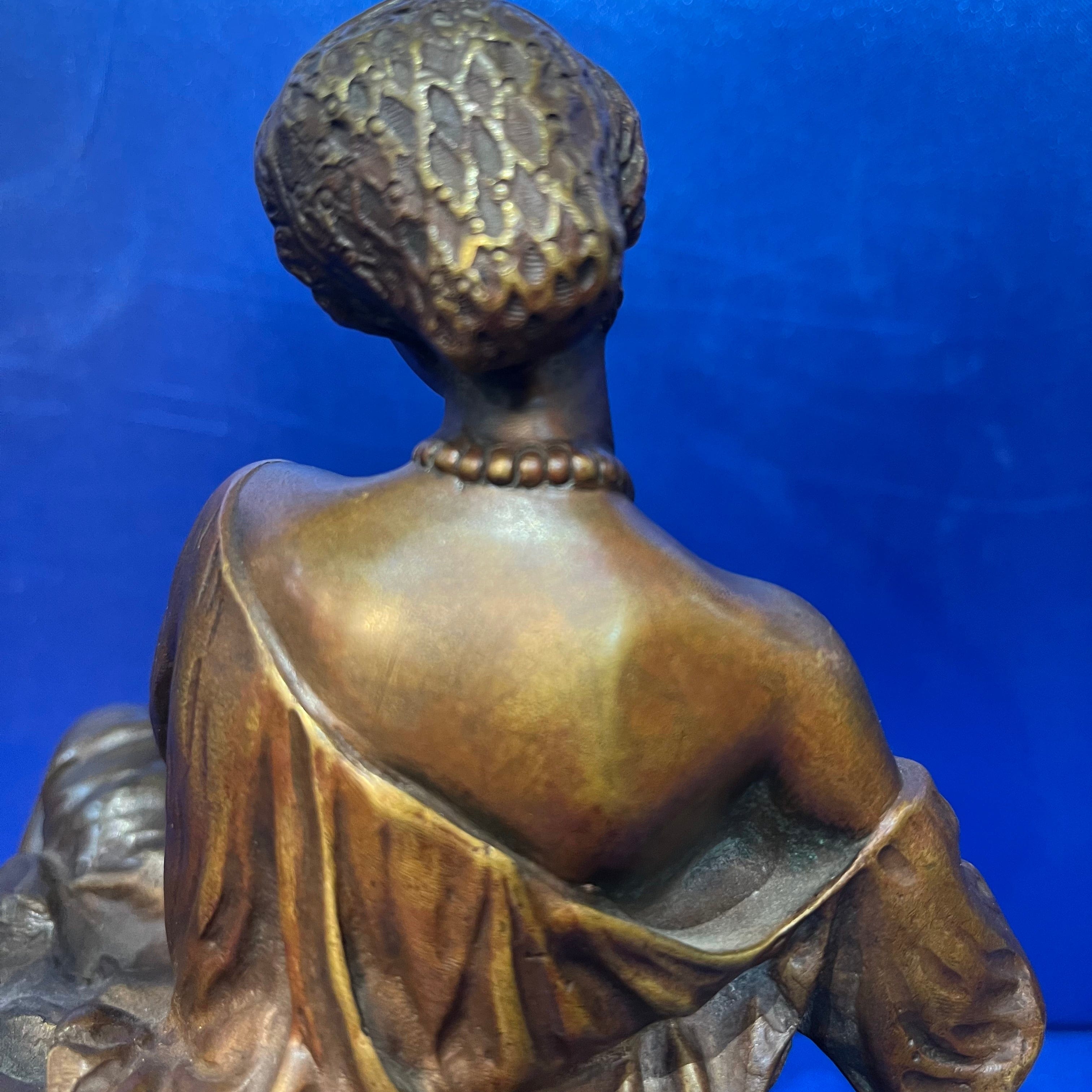 Provocativa figura de broce de mujer sentada sobre canasto de lavandería. Siglo XIX Se atribuye al escultor francés Charles Bory (1788-1856)