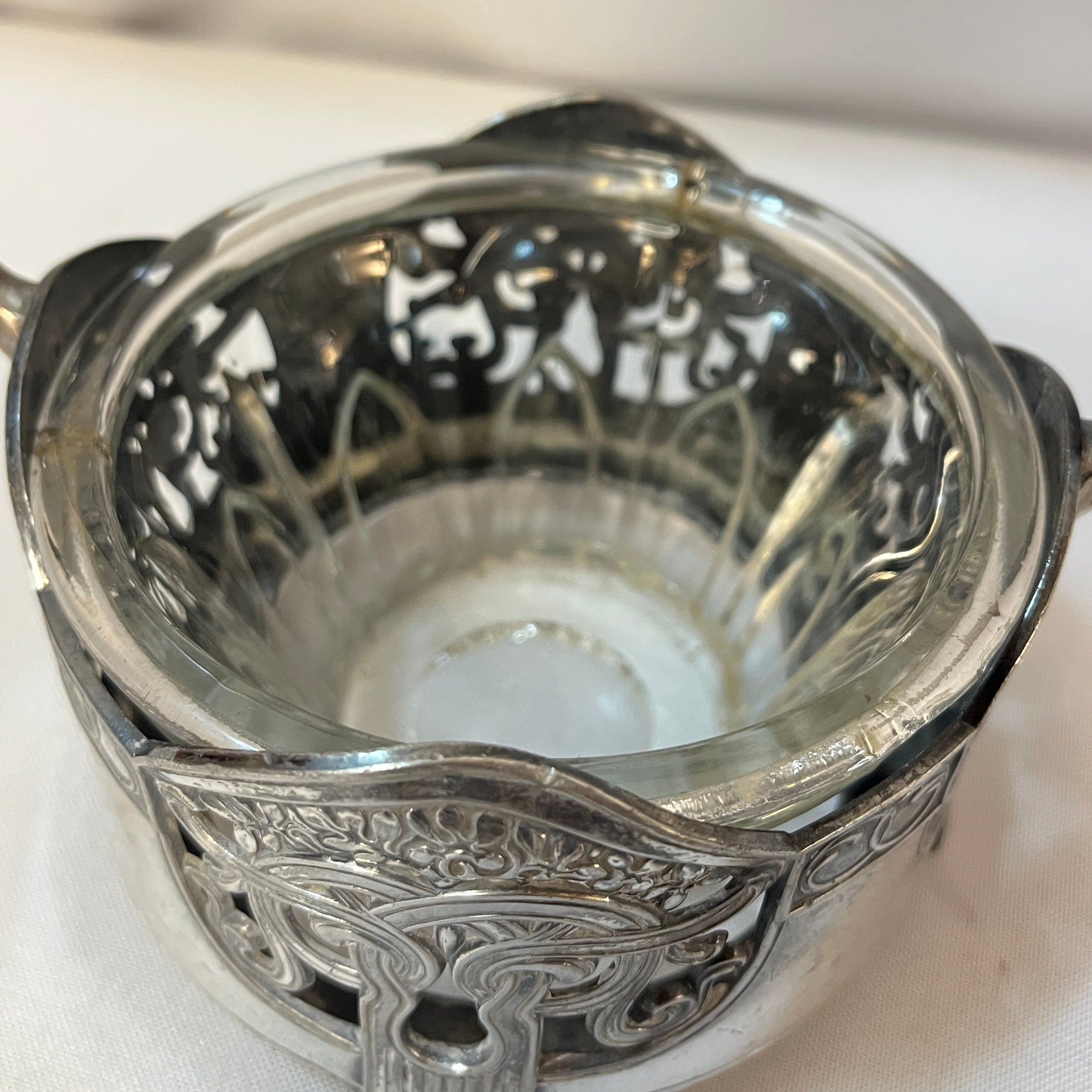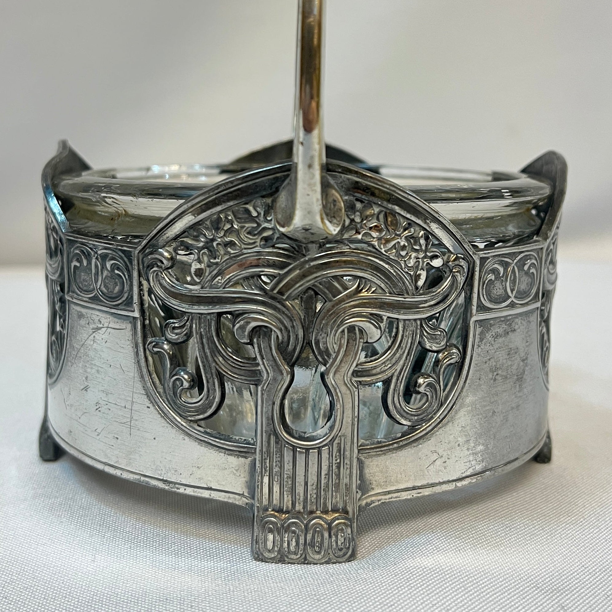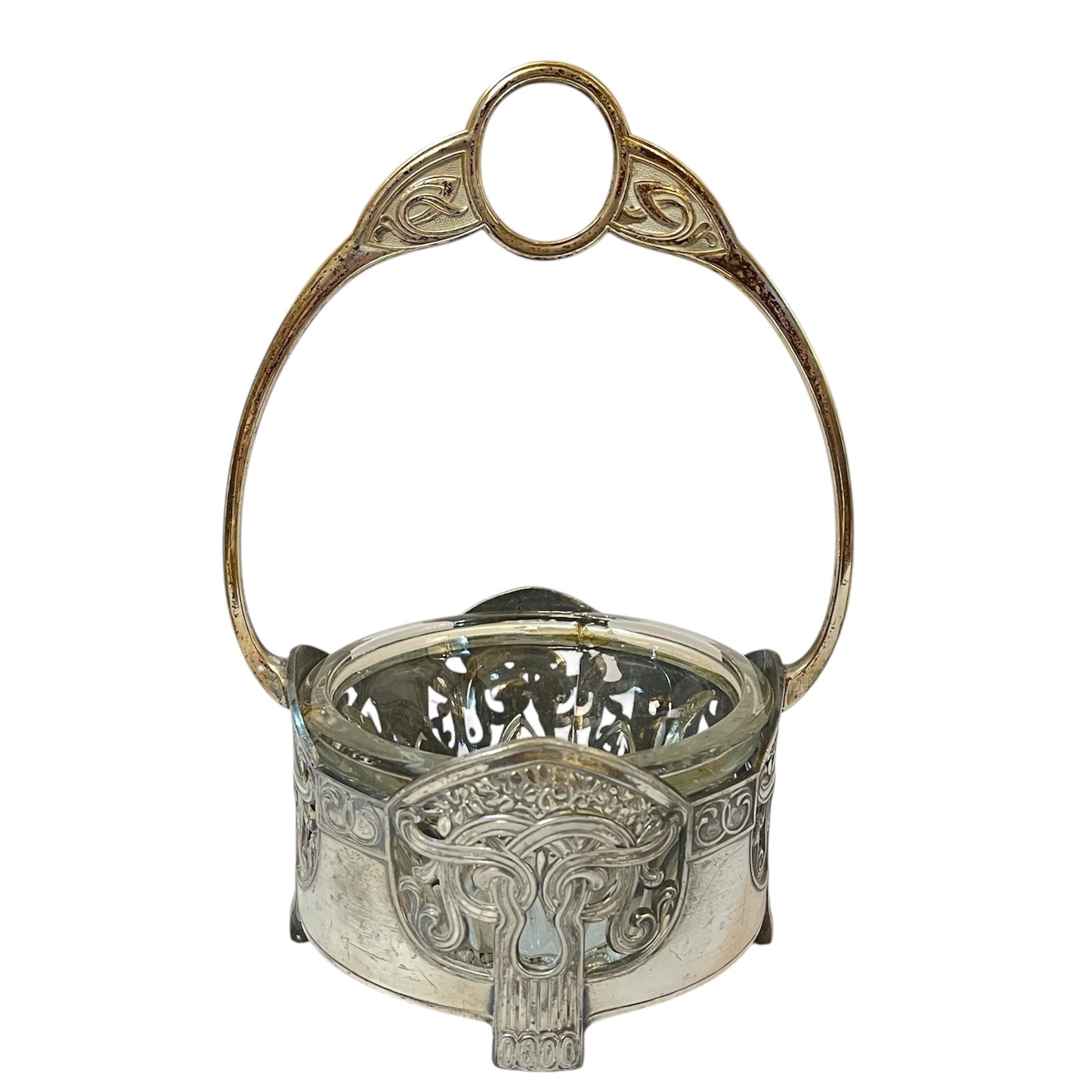 Canasta de peltre y vidrio alemán WMF estilo Art Nouveau s.XX