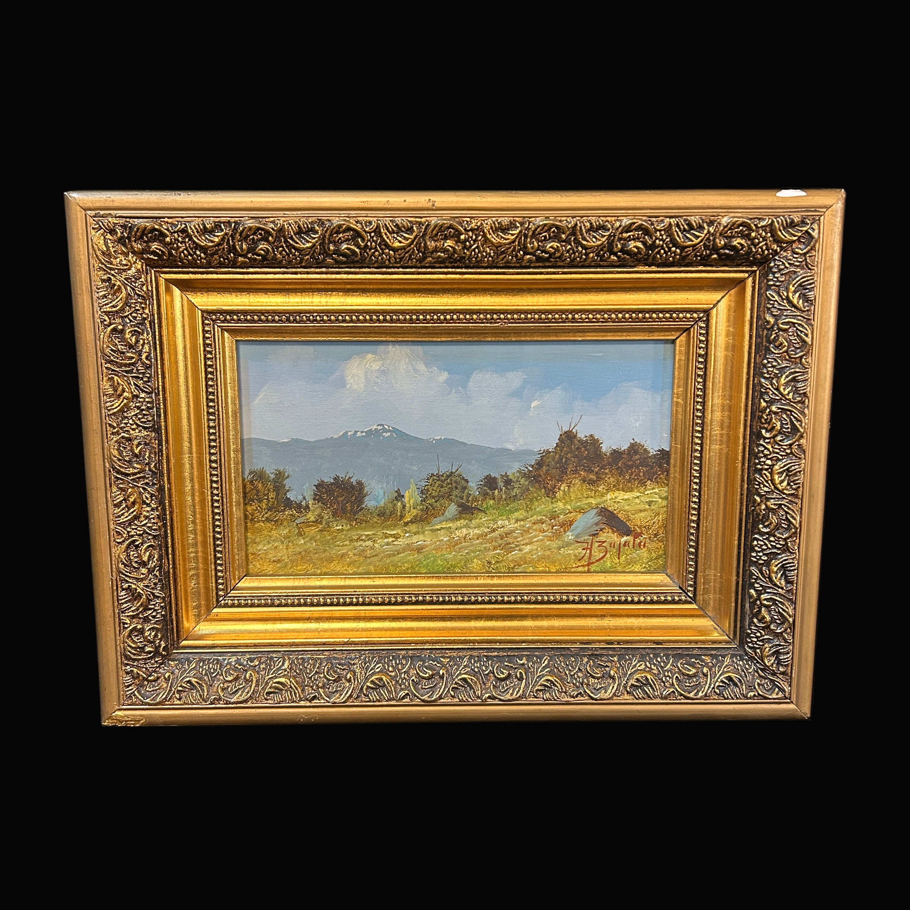 Hugo Zapata - Óleo sobre madera ‘Paisaje de campo y cordillera’ (live)