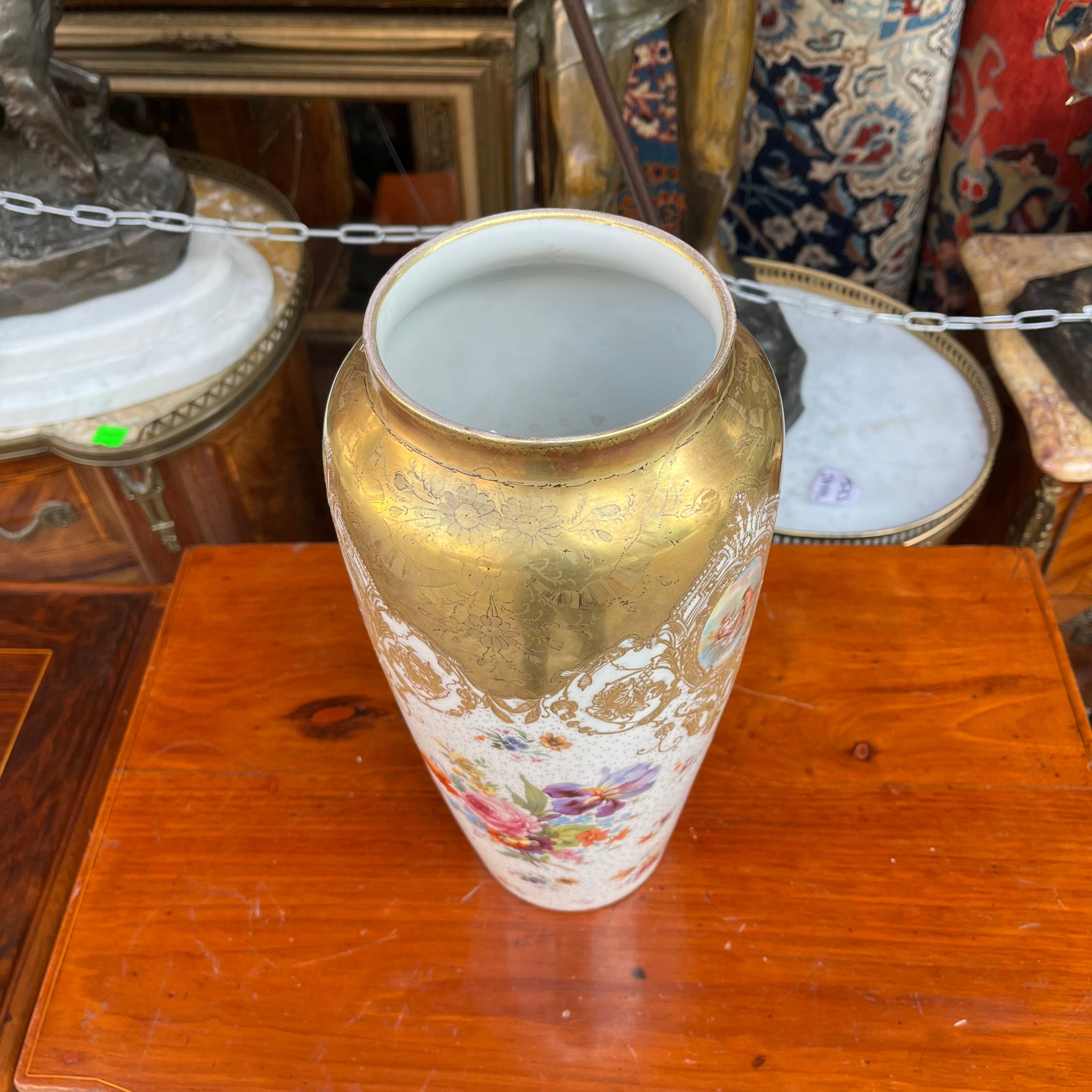 Florero porcelana de Sèvres flores y dorado