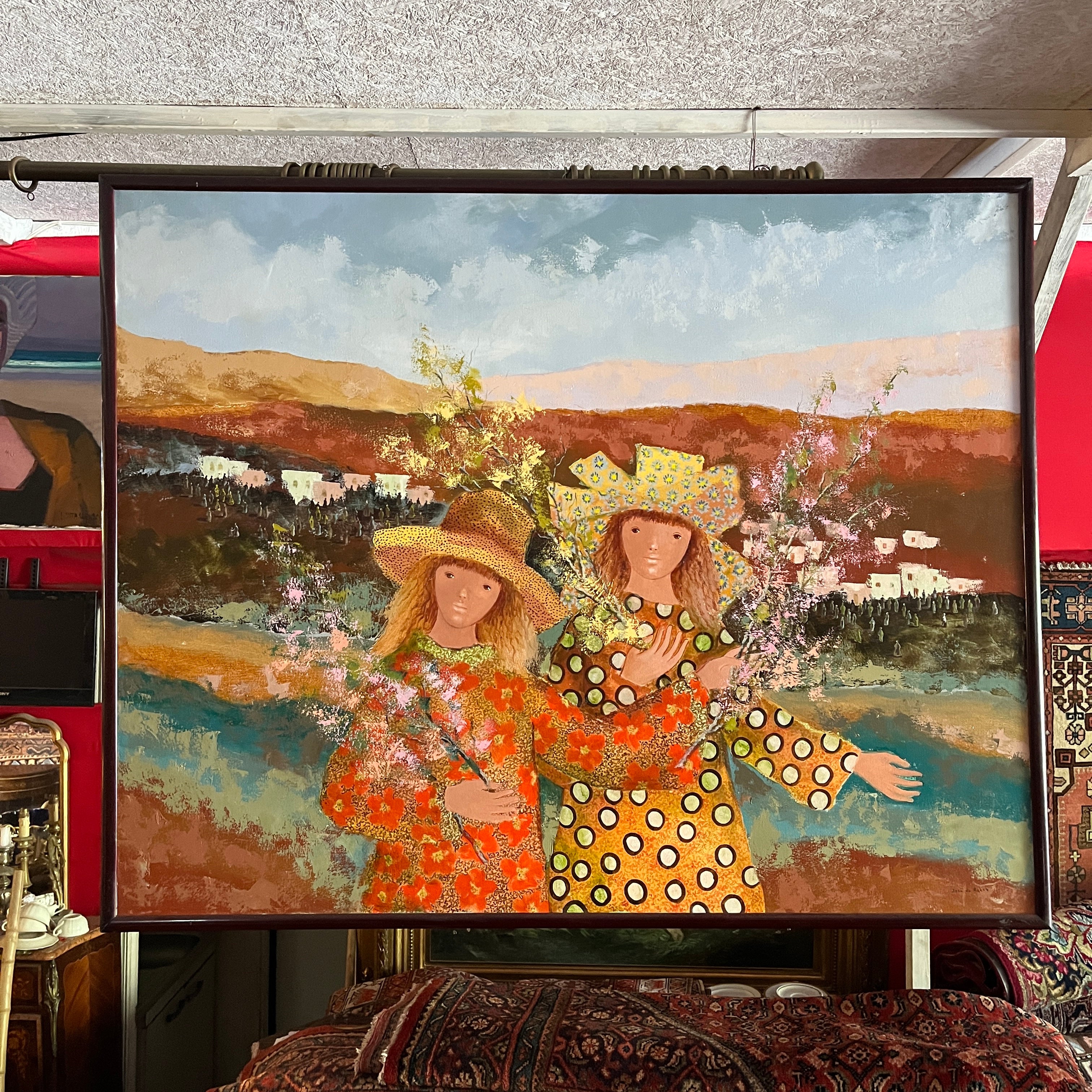 José de Rokha - Óleo sobre tela ´Niñas y ramas`