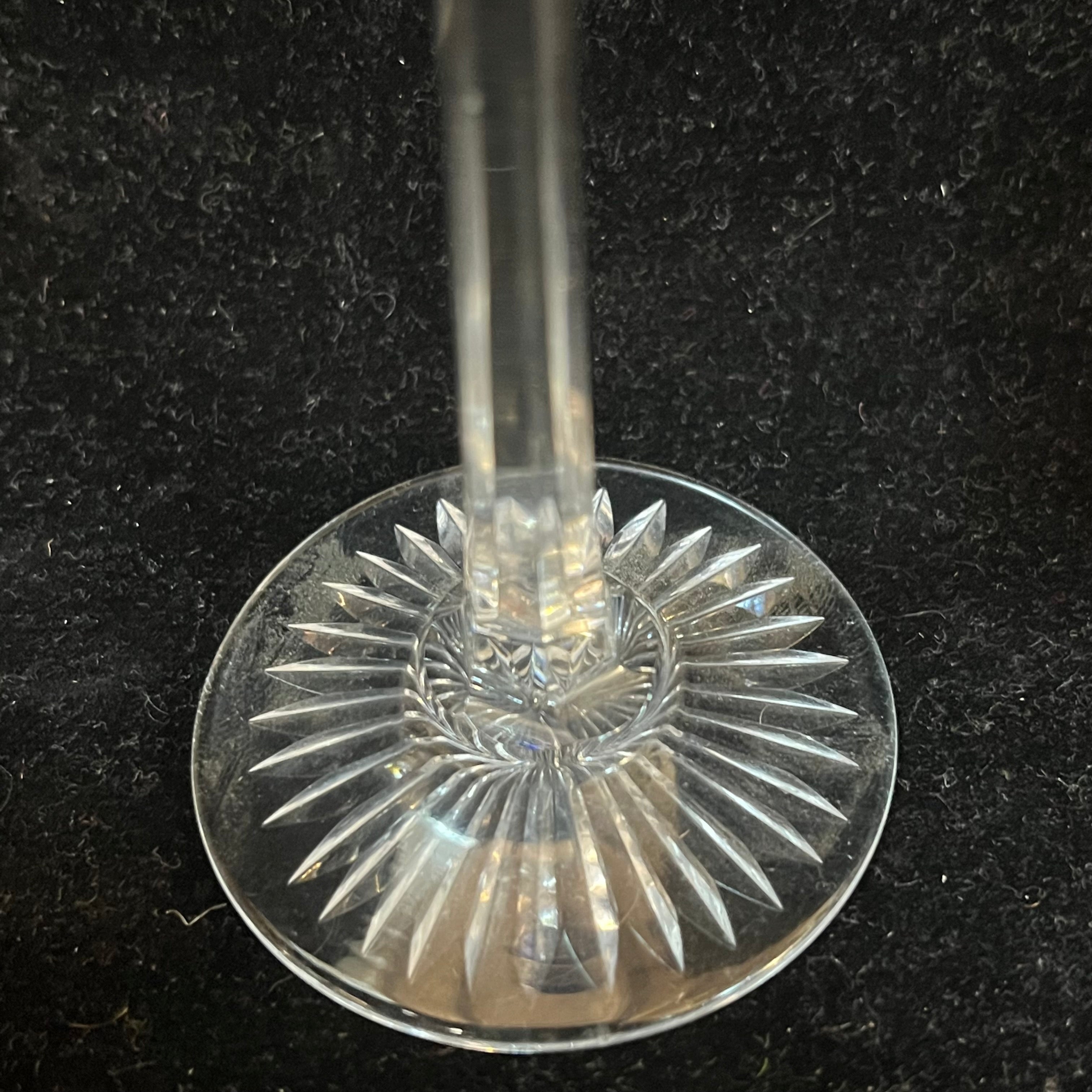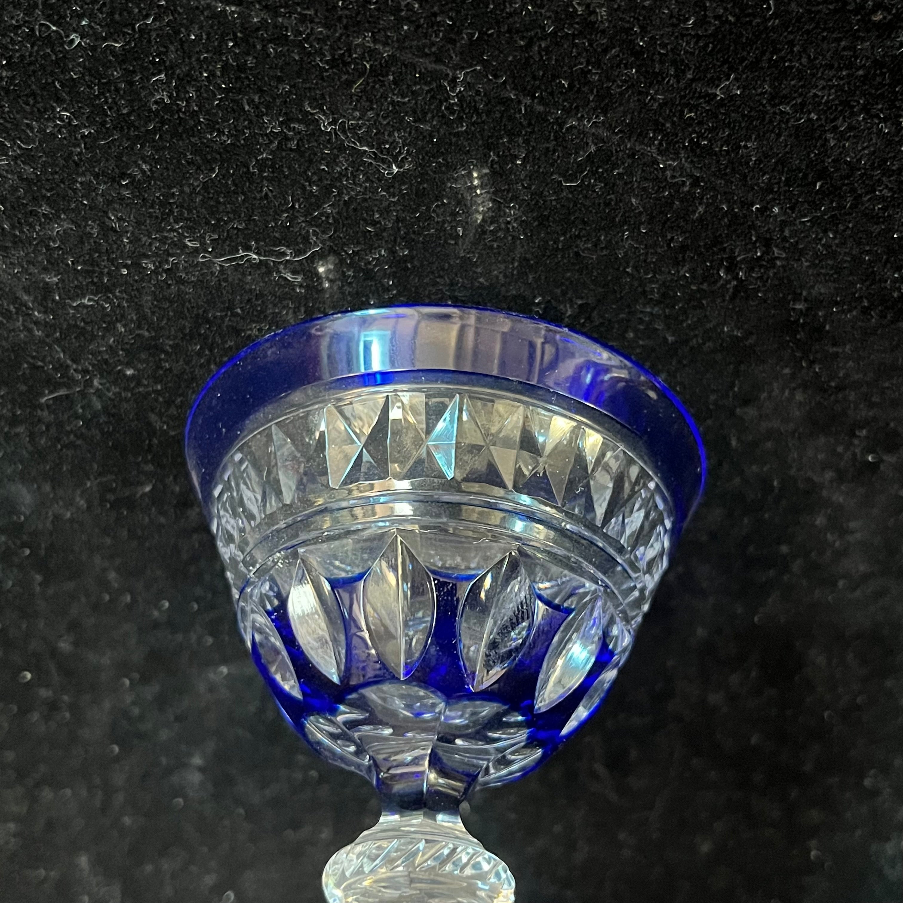 Bellísimo juego de cuatro copitas de cristal de origen europeo, con elegantes tallados y coloreadas en azul cobalto.