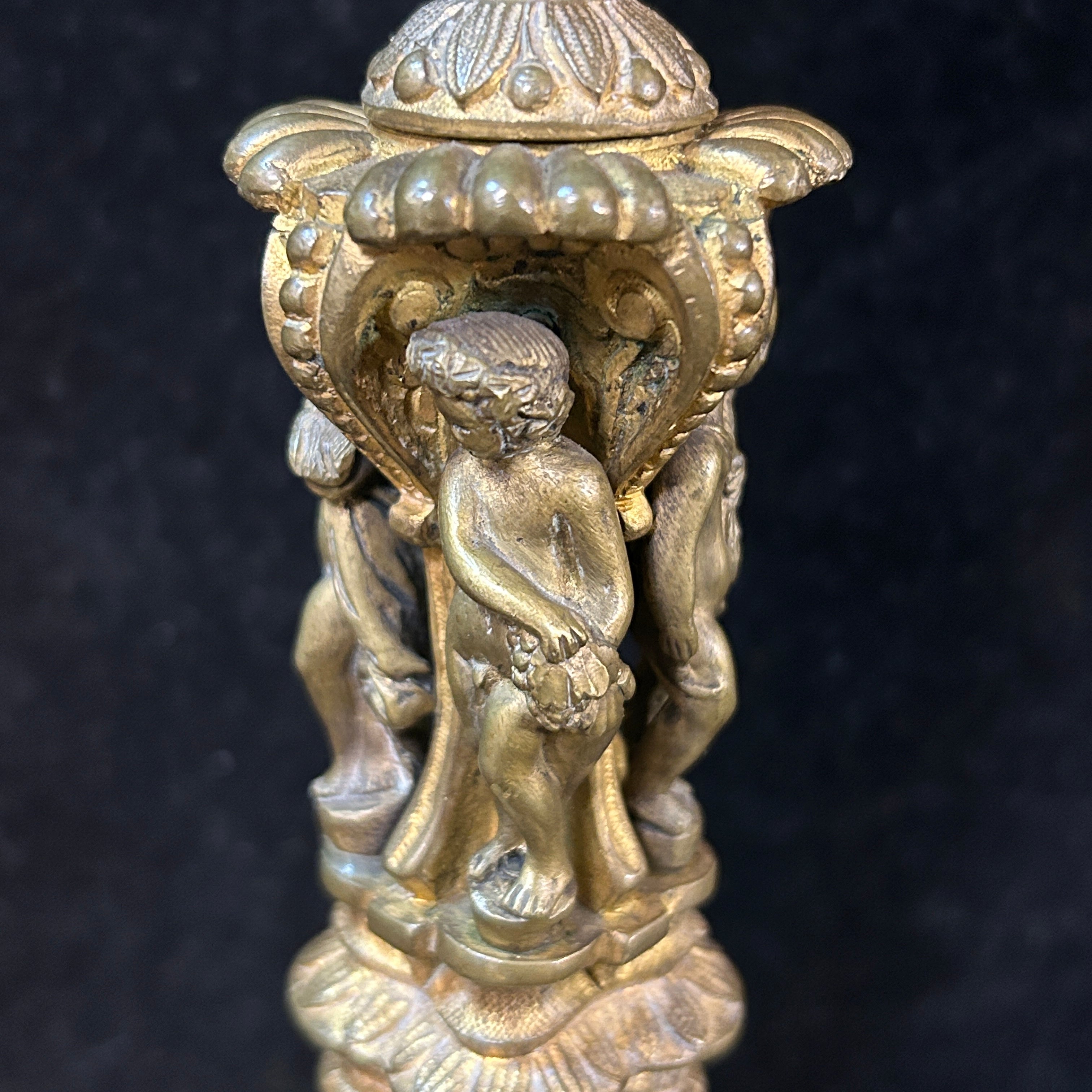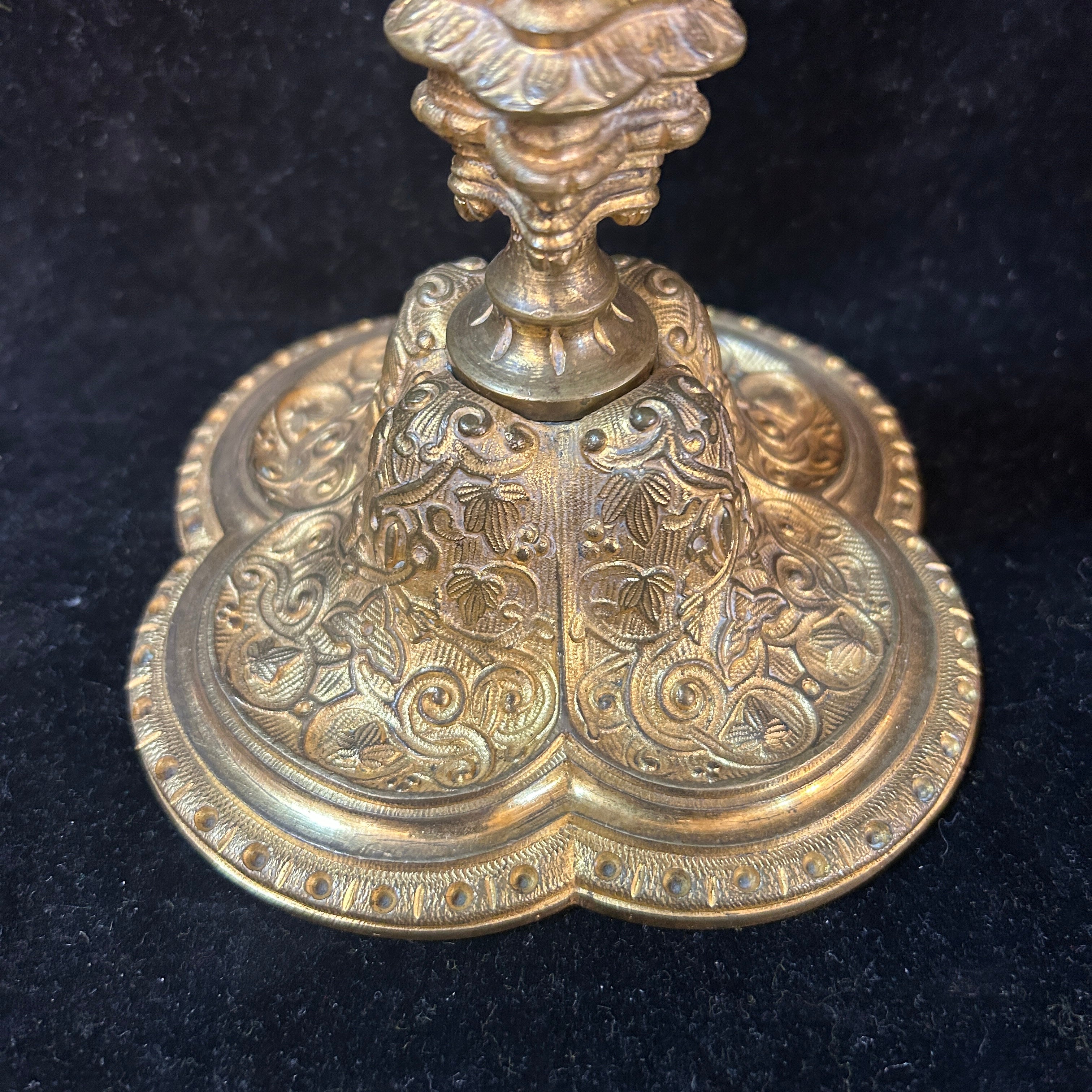 Pareja de candelabros rusos bronce figuras y relieves
