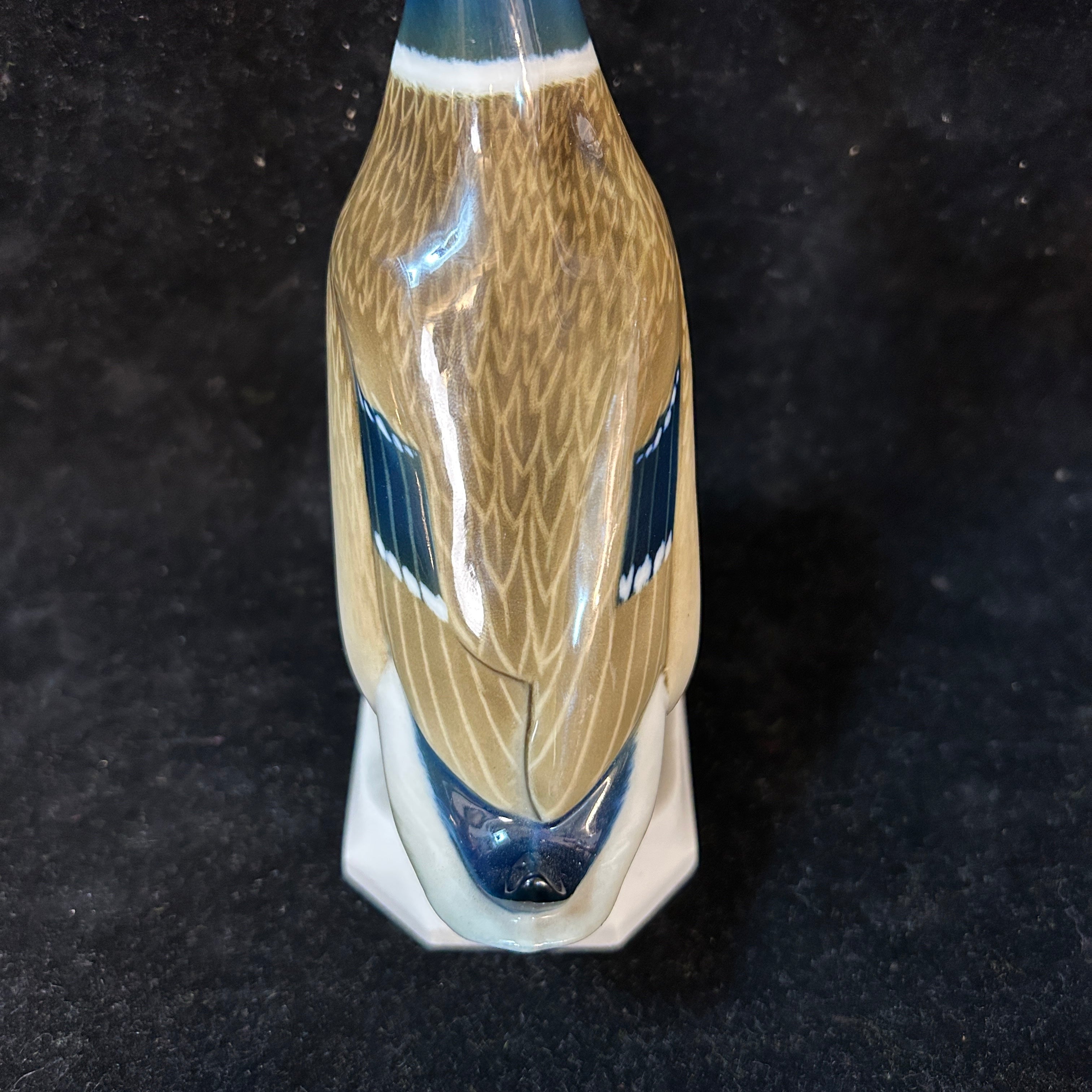 Delicada figura de un pato de porcelana de la prestigiosa marca alemana Lorenz Kuntsabtellung, pintada a mano donde destacan delicados detalles como sus ojos, el plumaje de su pecho o las patas palmeadas.