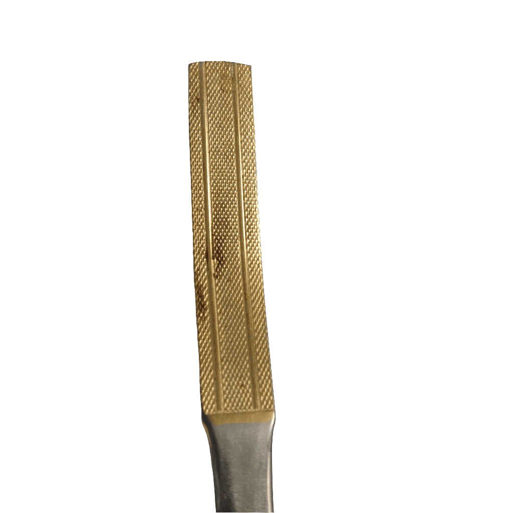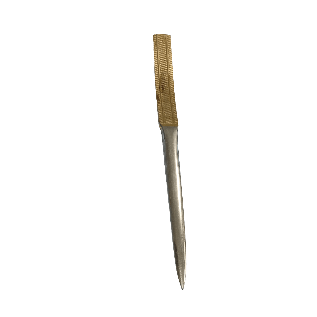Elegante abrecartas de metal con mango dorado con un bello diseño simple, terminado en dorado.
