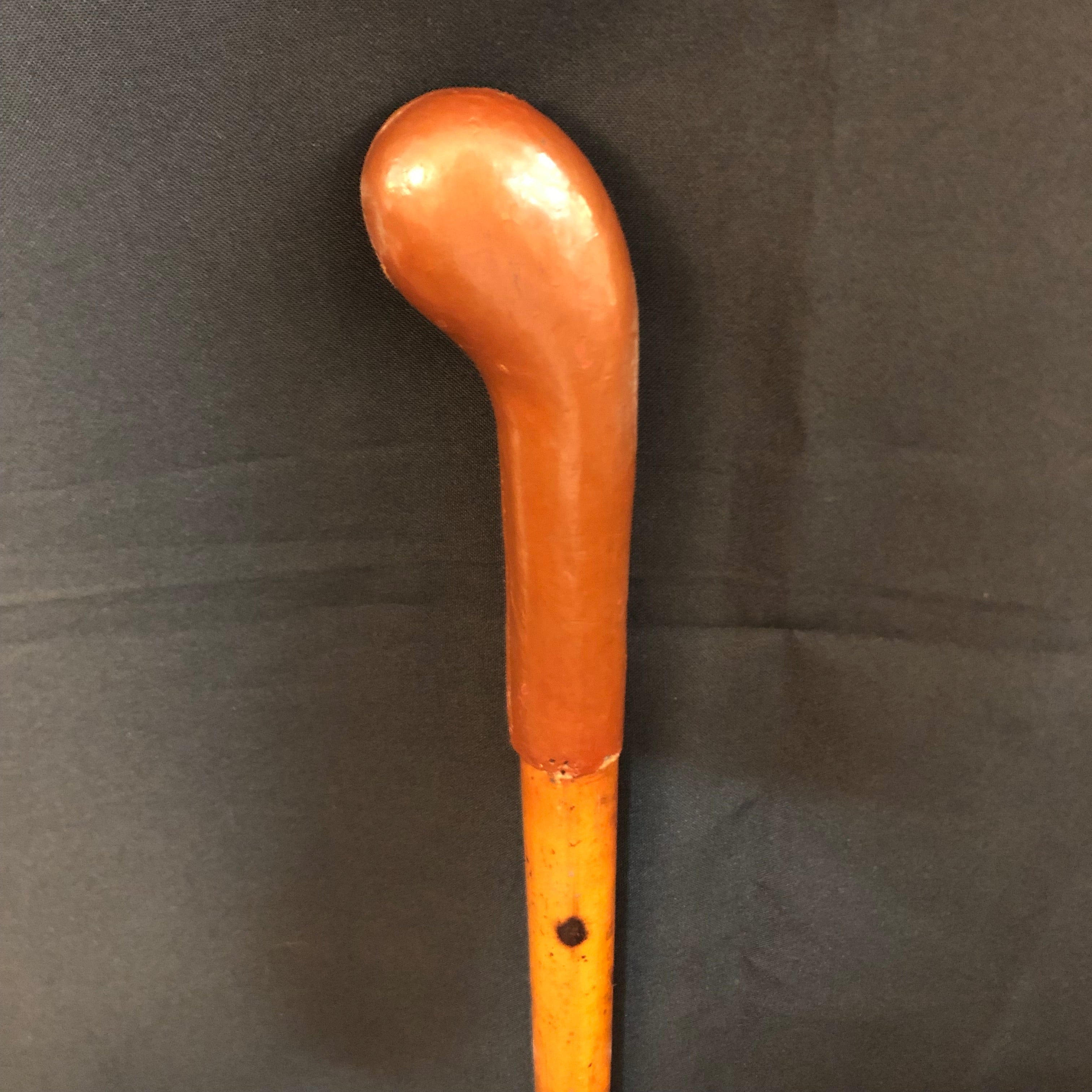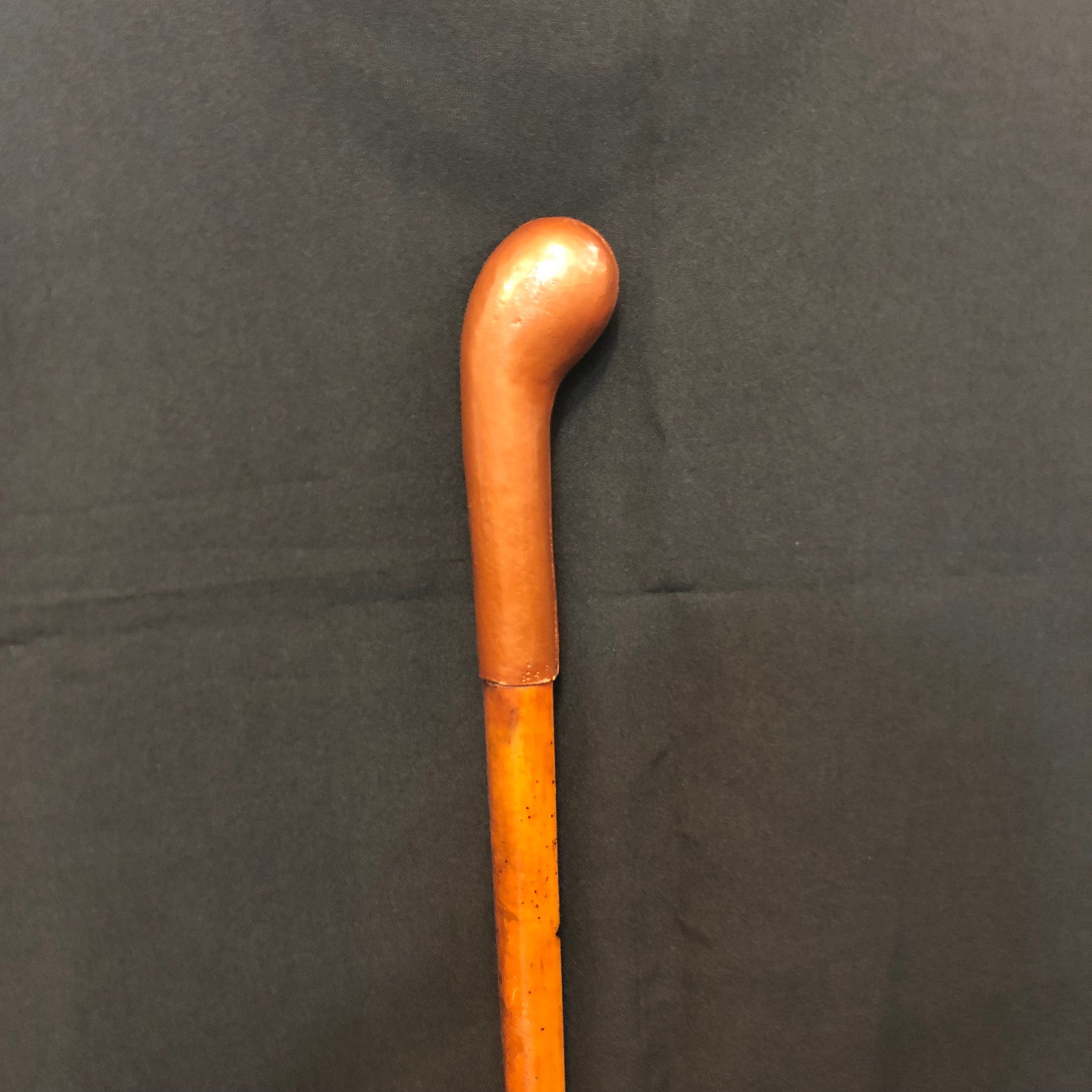 Baston de madera de malaca, un tipo de madera proveniente de una palmera de ratan nativa, de la costa de Sumatra. Su empuñadura está cubierta de cuero, lo que le da un toque elegante y sobrio.