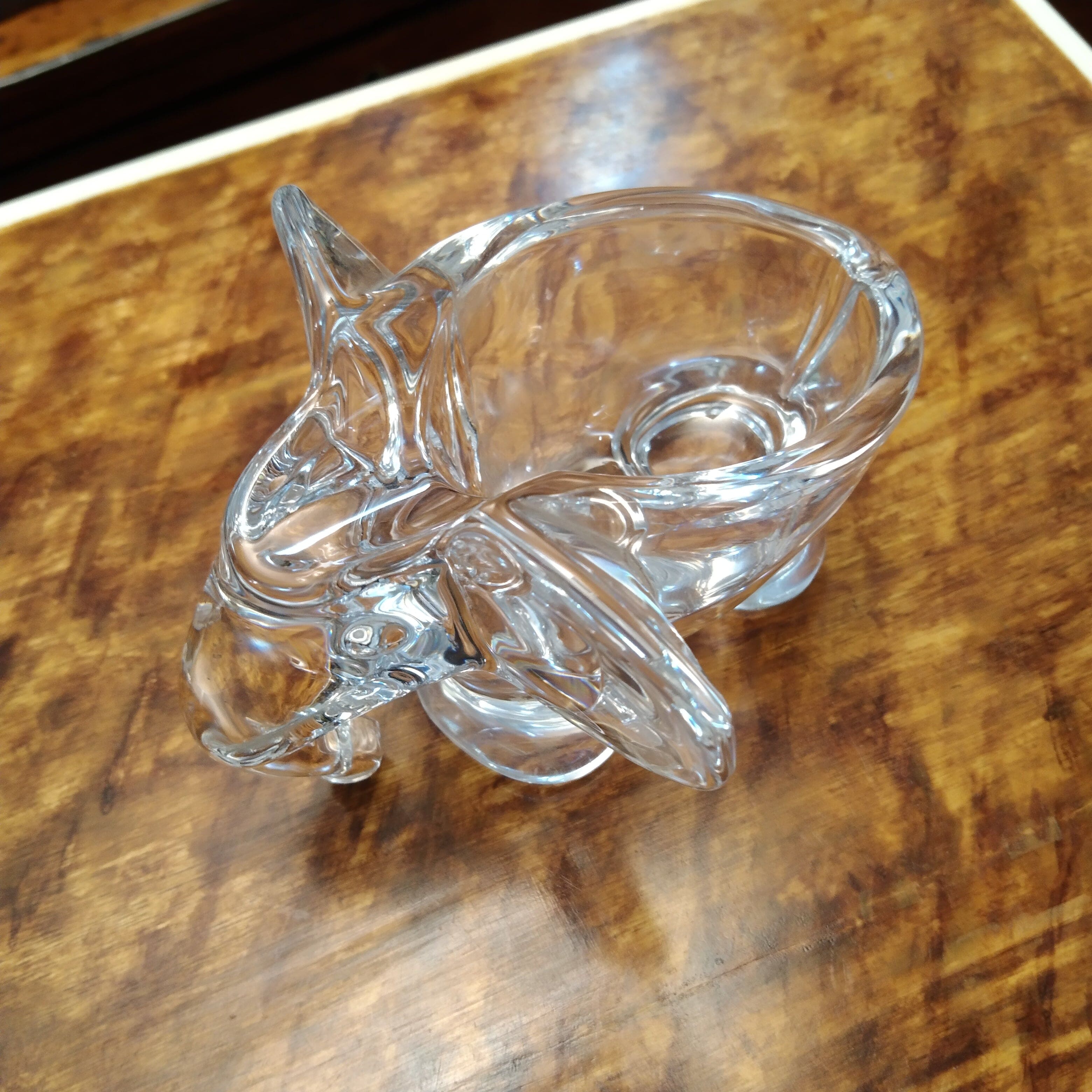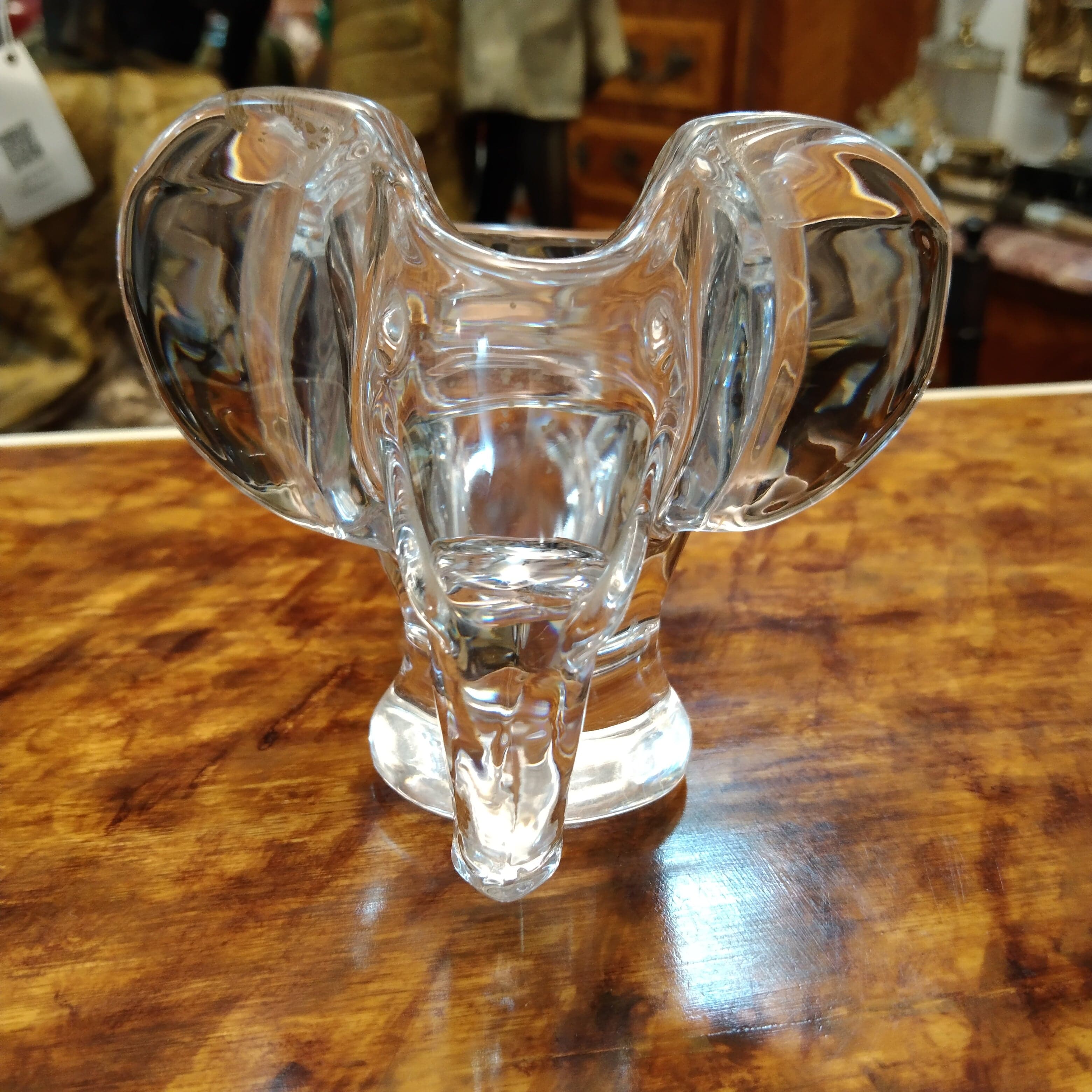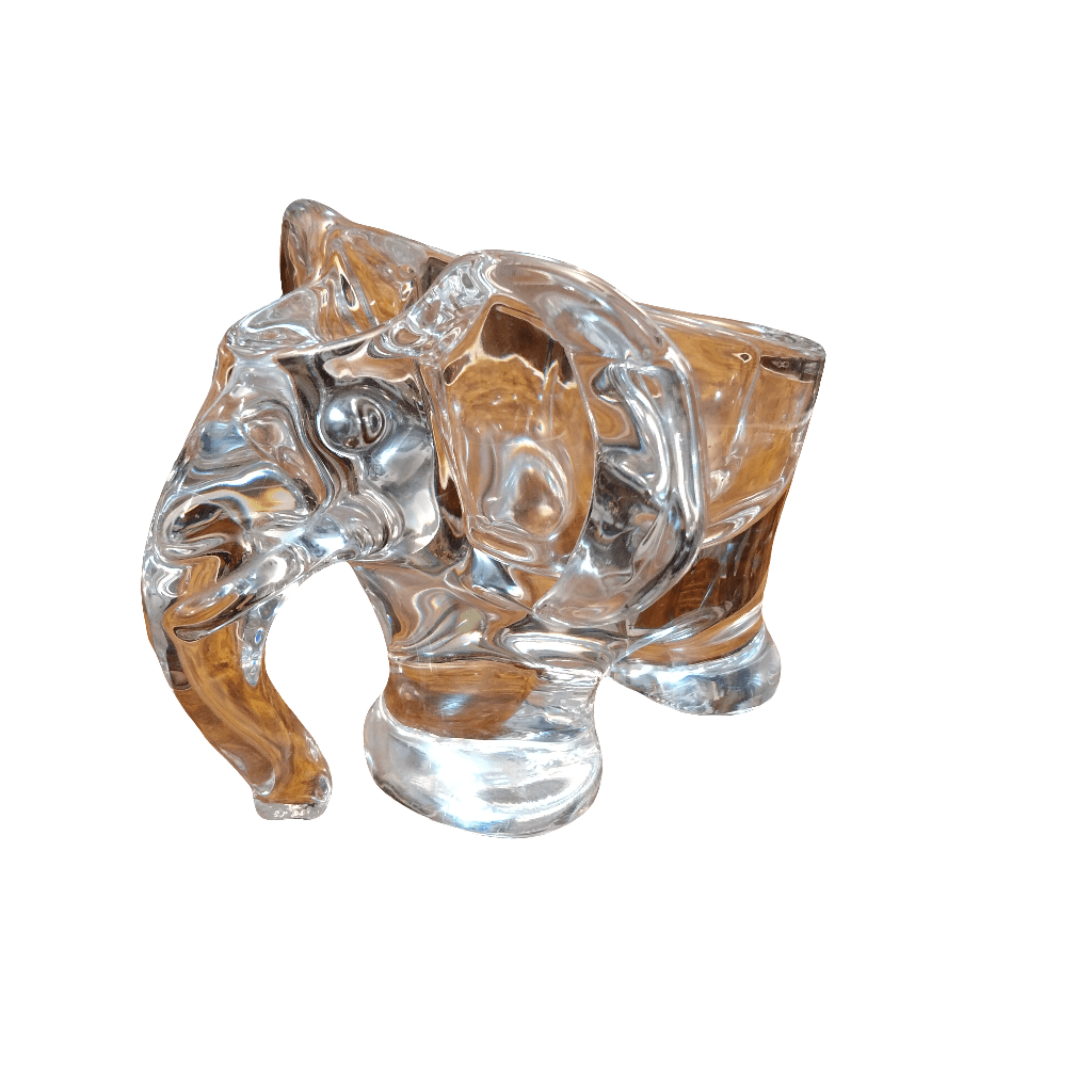 Bello cenicero pequeño en forma de elefante de cristal Europeo, con un espacio para reposar un habano o cigarrillo.
