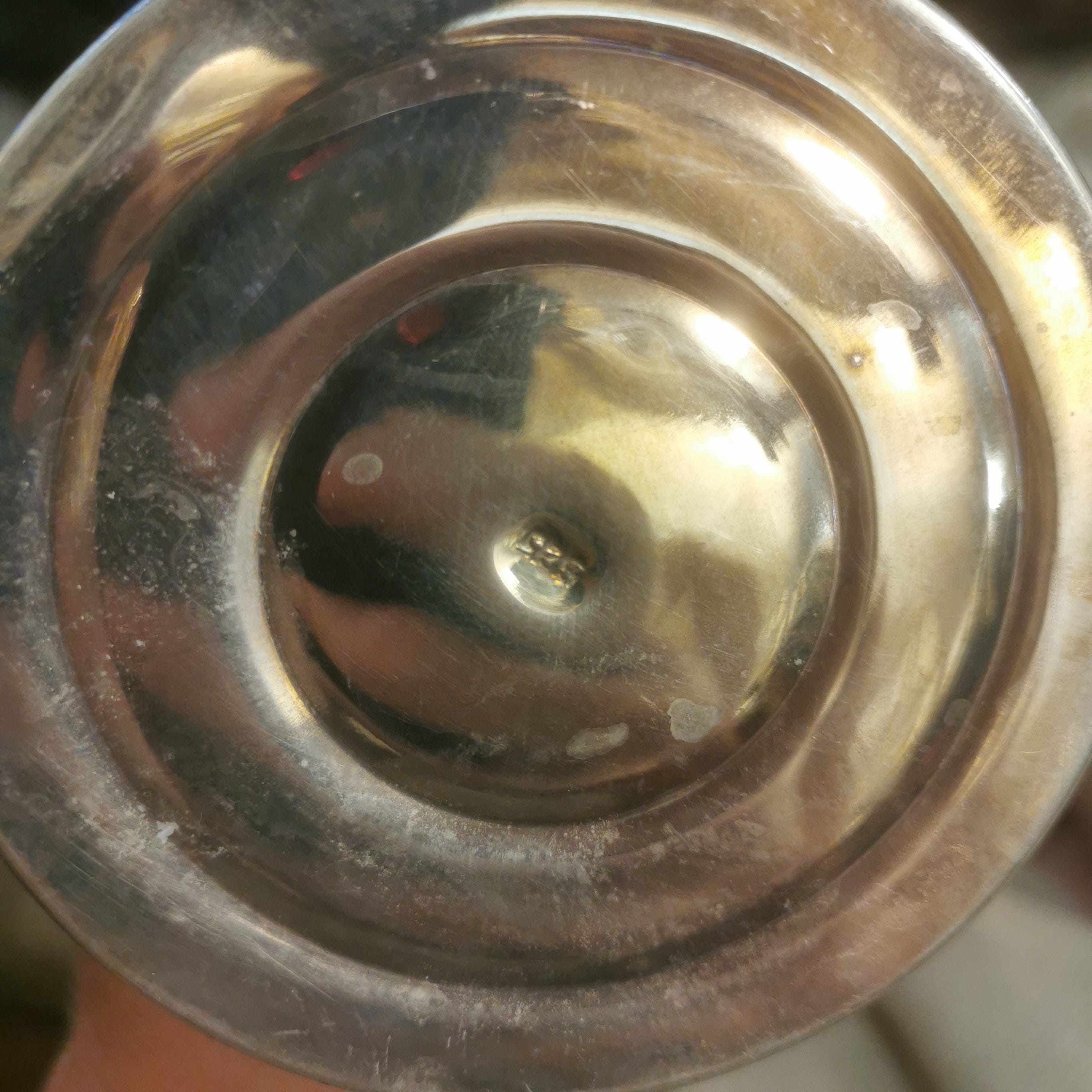 Bello par de candelabros pequeños con cubierta de plata (925) para una vela cada uno. Tienen un lindo diseño art nouvau.