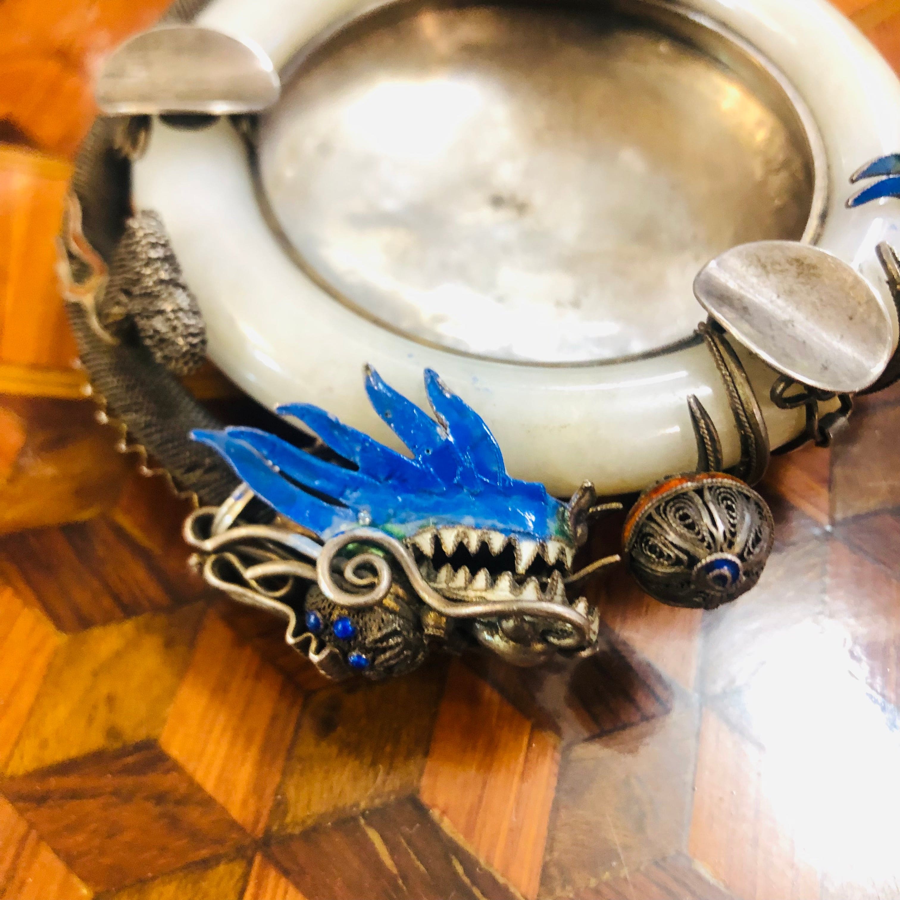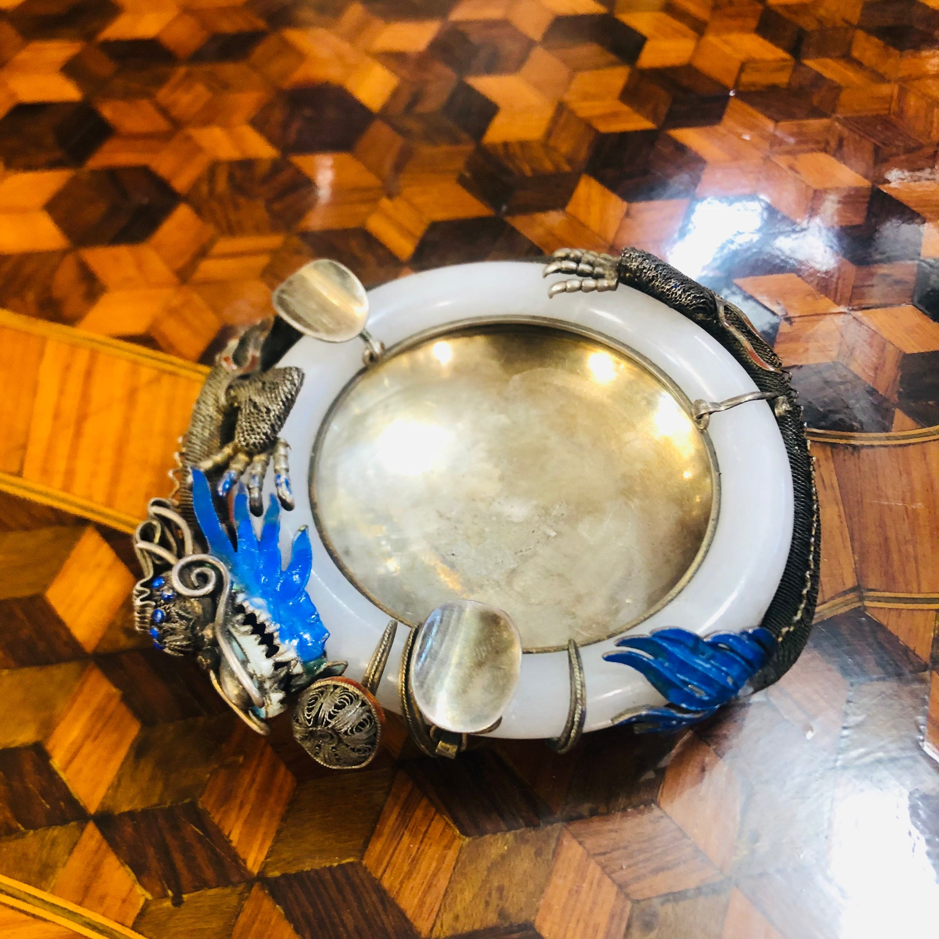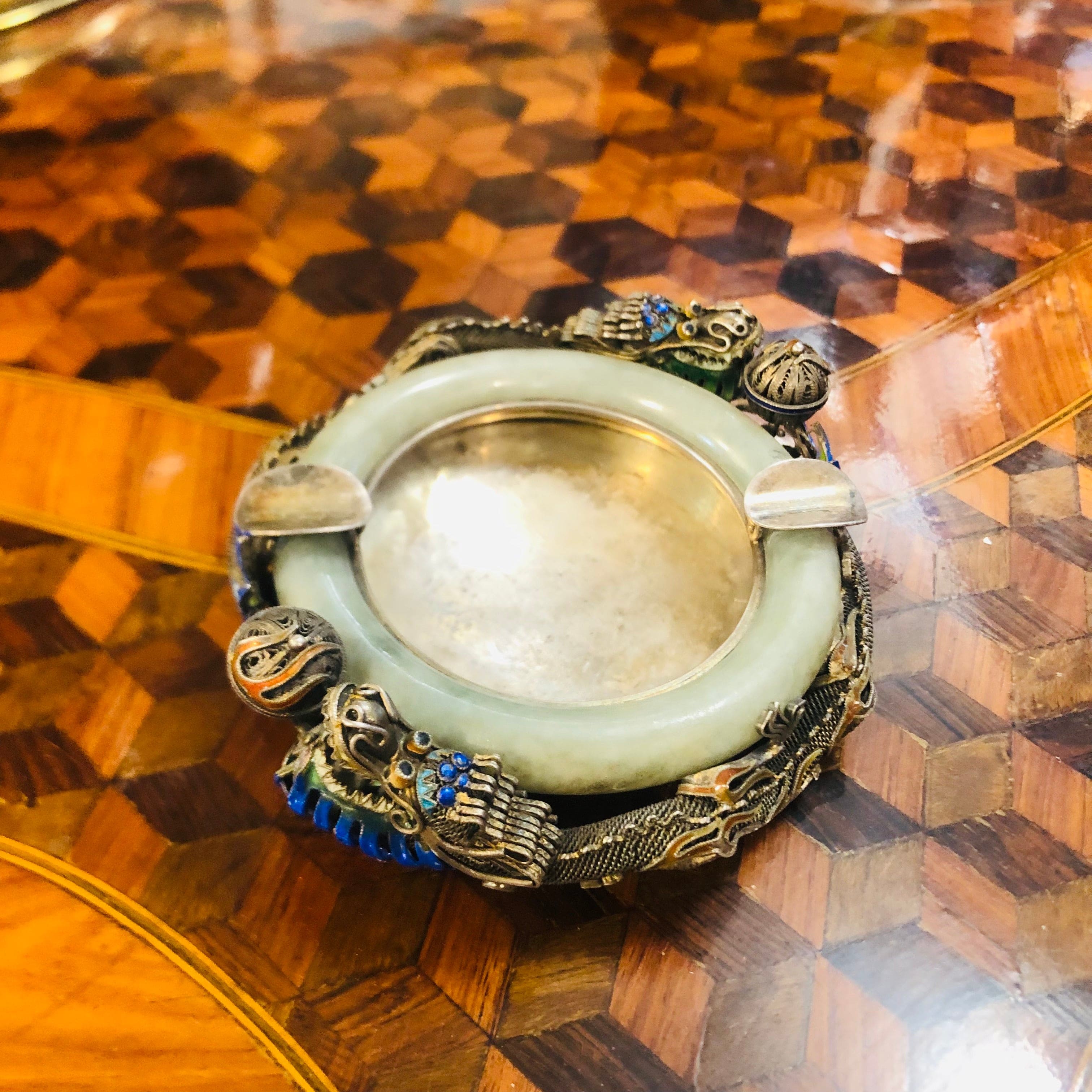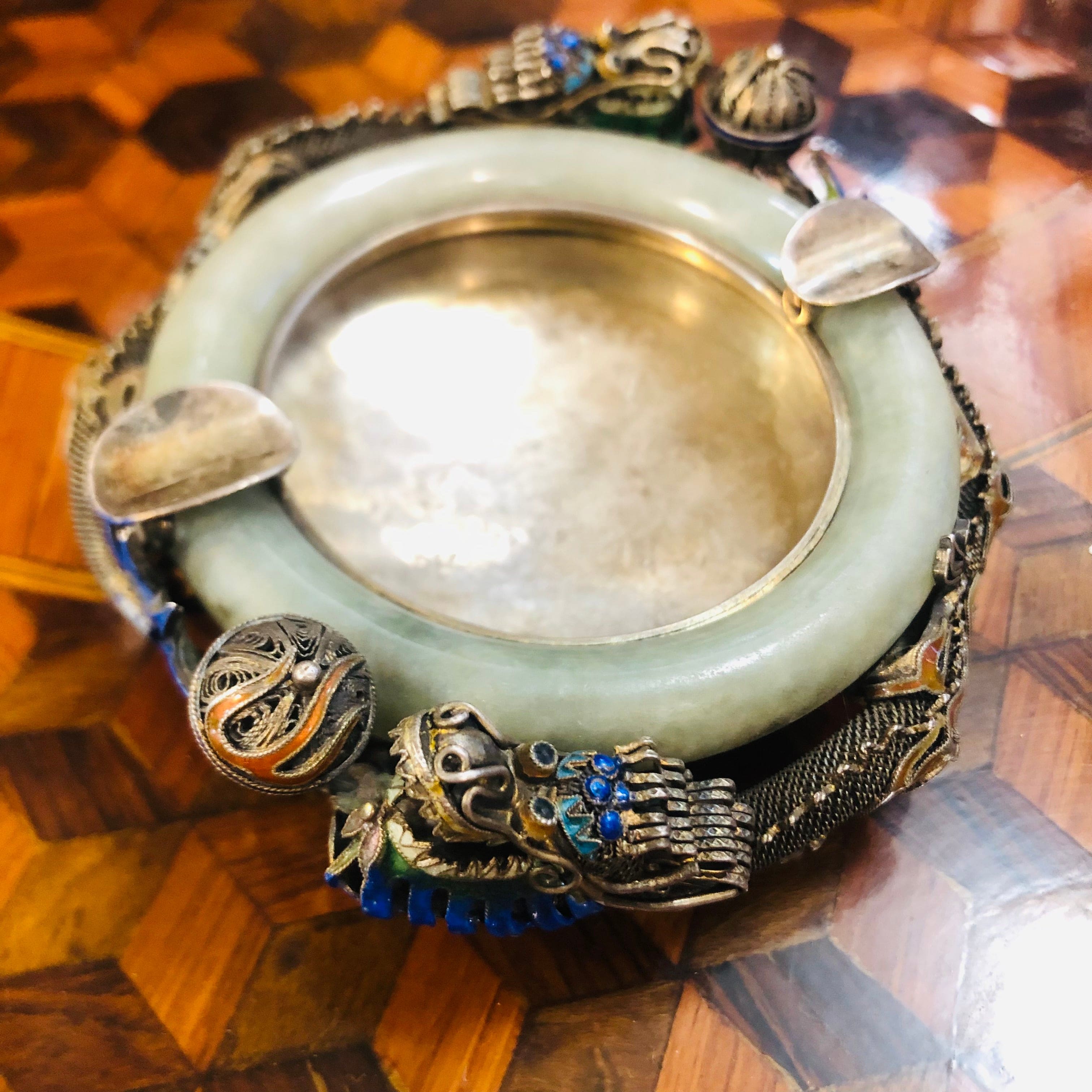 Ceniceros chinos Dragón metal plateado y Jade