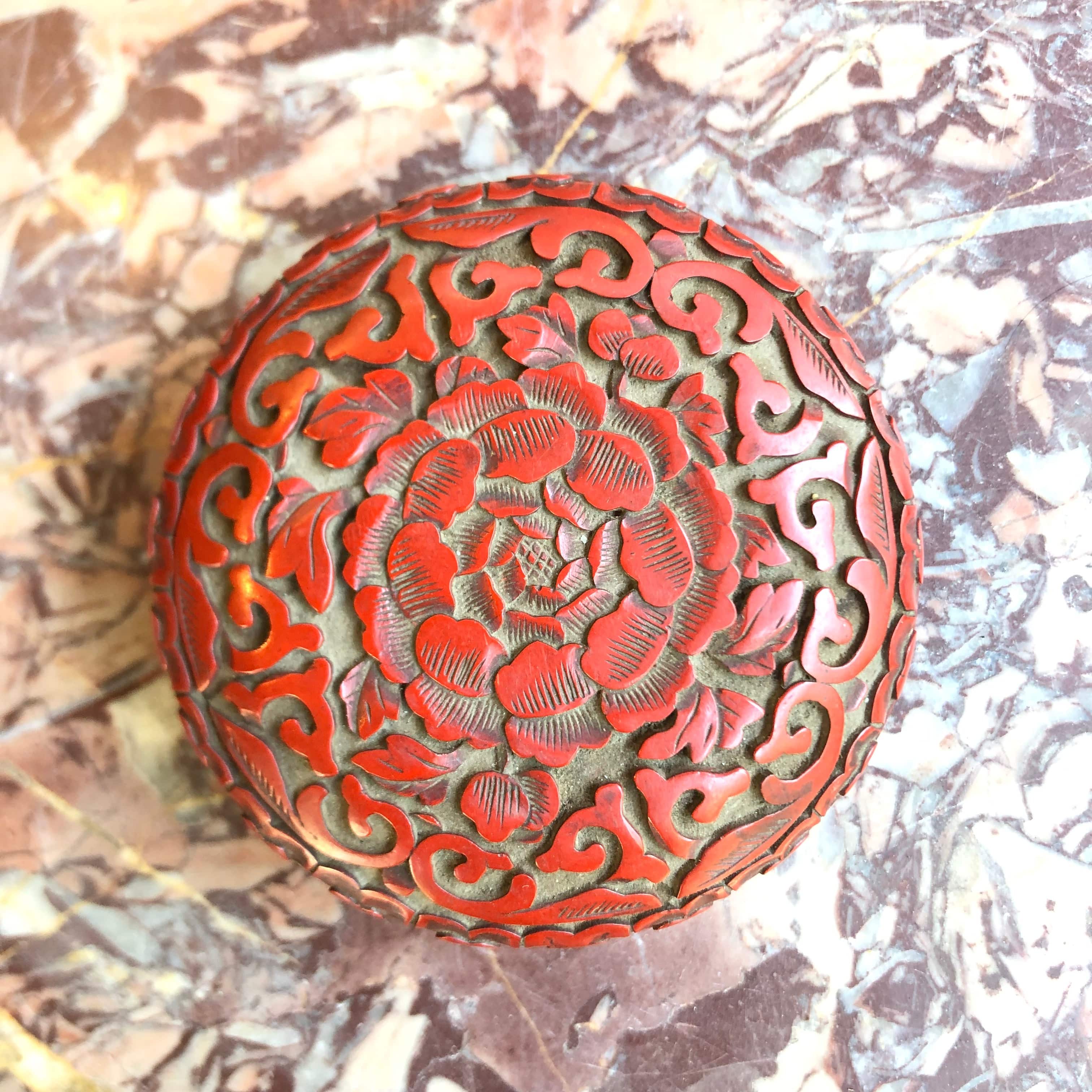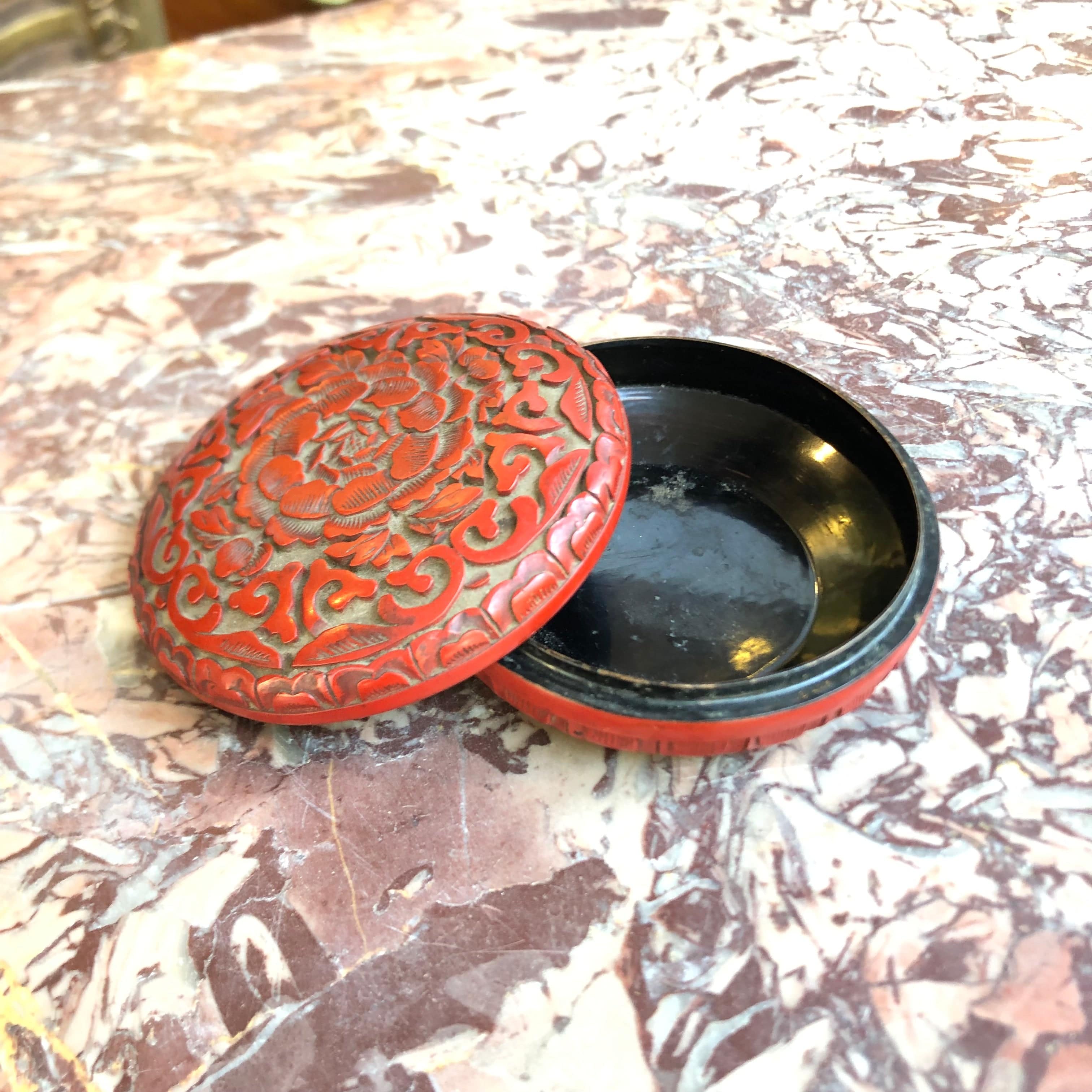 Bella caja joyero de laca chino, finamente tallado del Siglo XVIII.