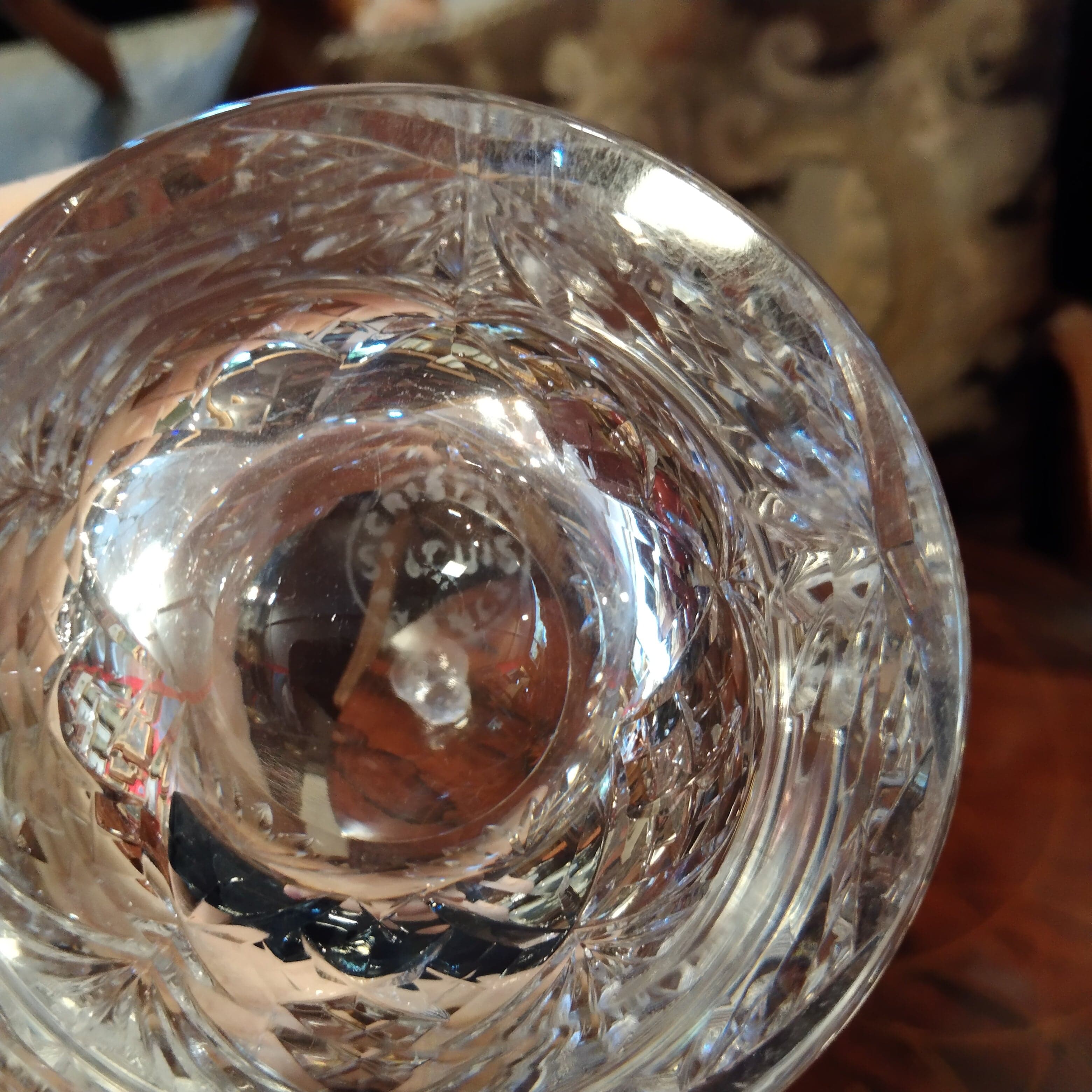 Juego de dos vasos de cristal francés tallado St. Louis de Baccarat con bellos diseños geonétricos hechos a mano. El modelo está diseñado para whiskey o bajativos.