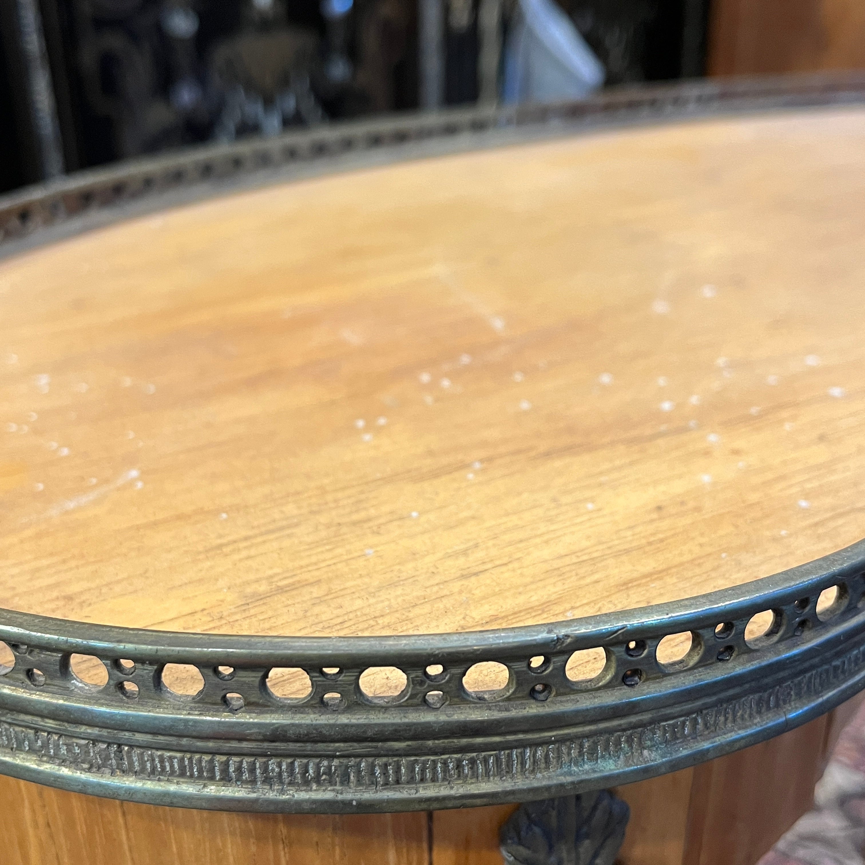 Mesa de apoyo francesa Luis XVI riñón madera frutal, bronces y cintillo