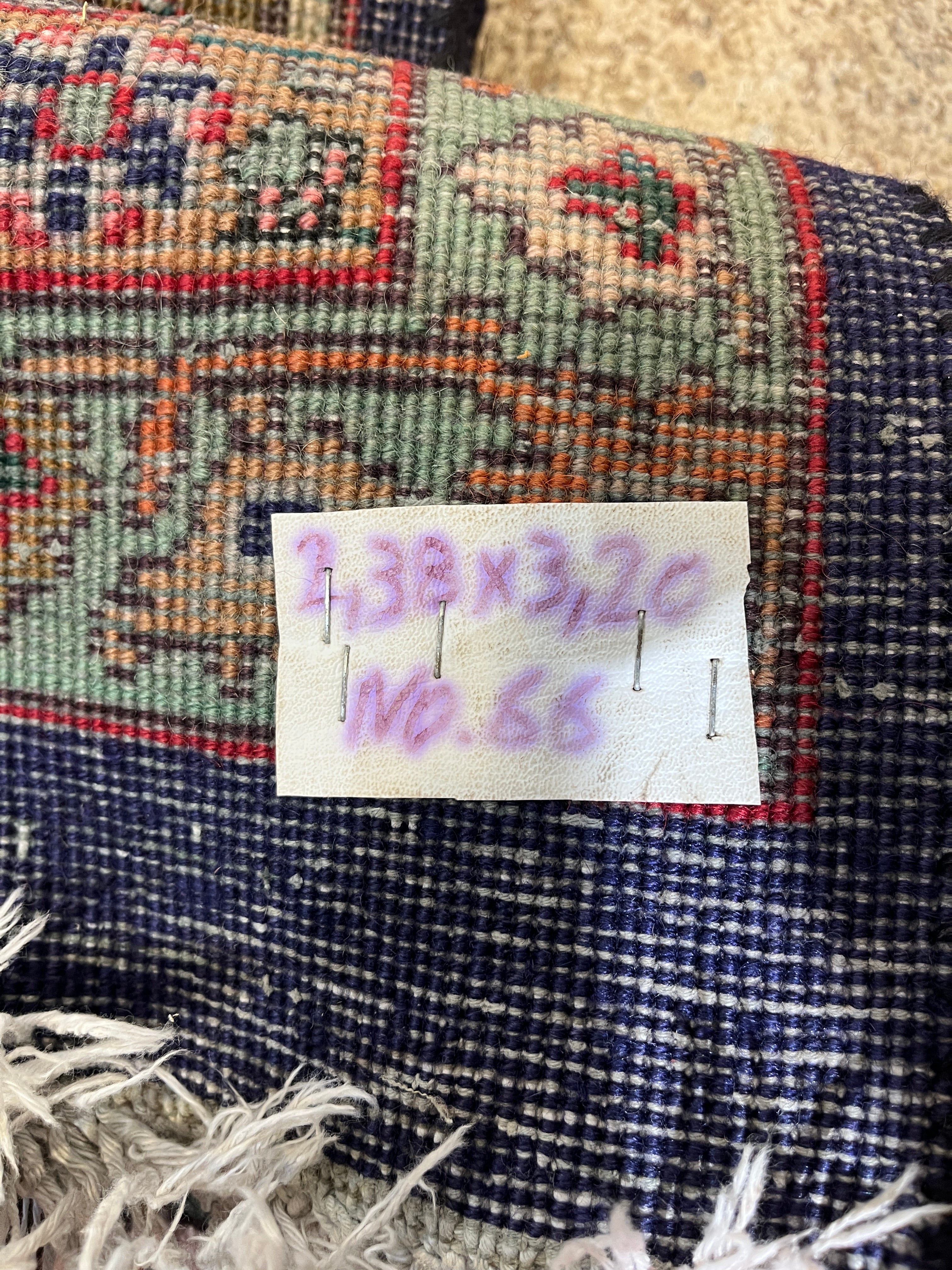 Alfombra Iraní central lana medallón floral y motivos azules 320x230
