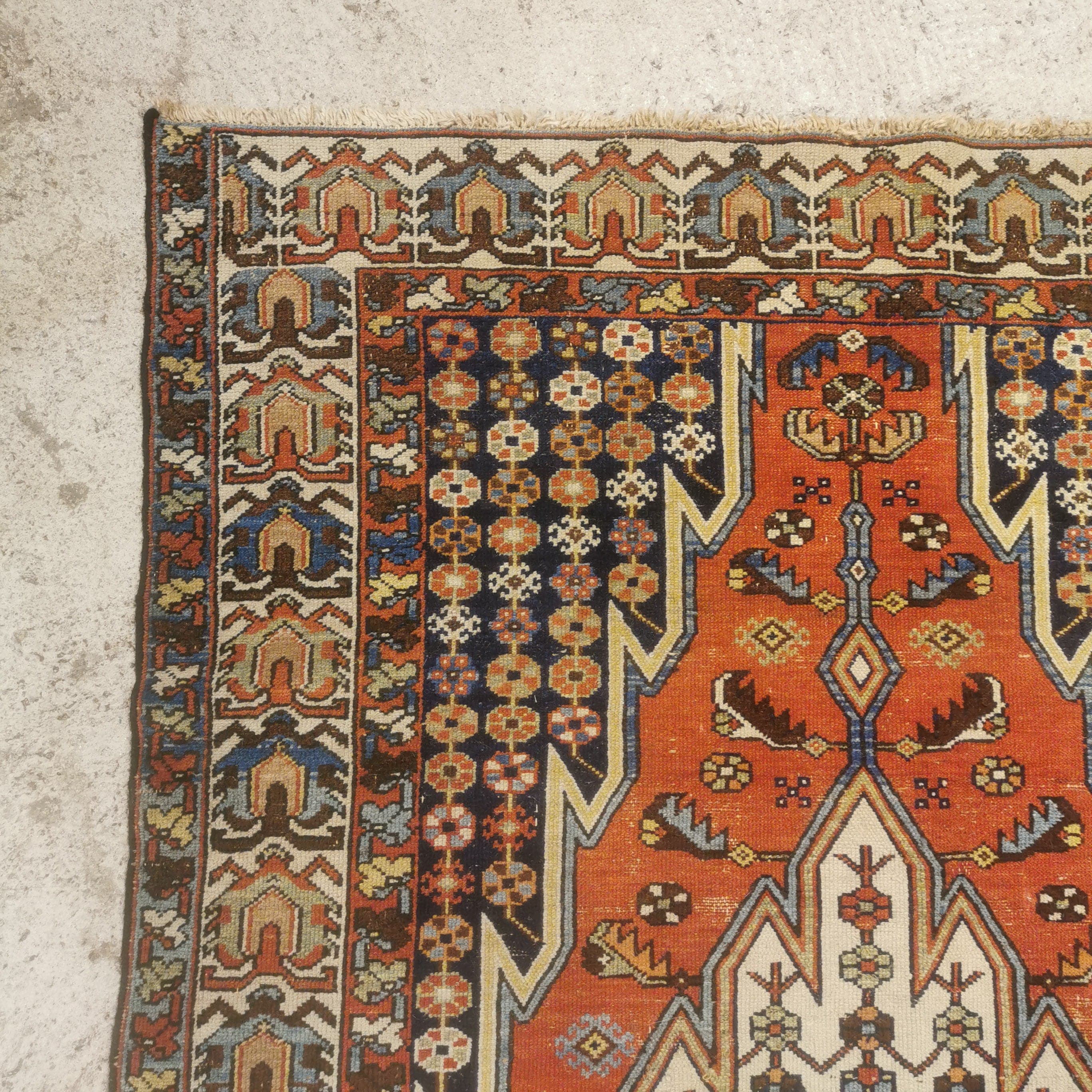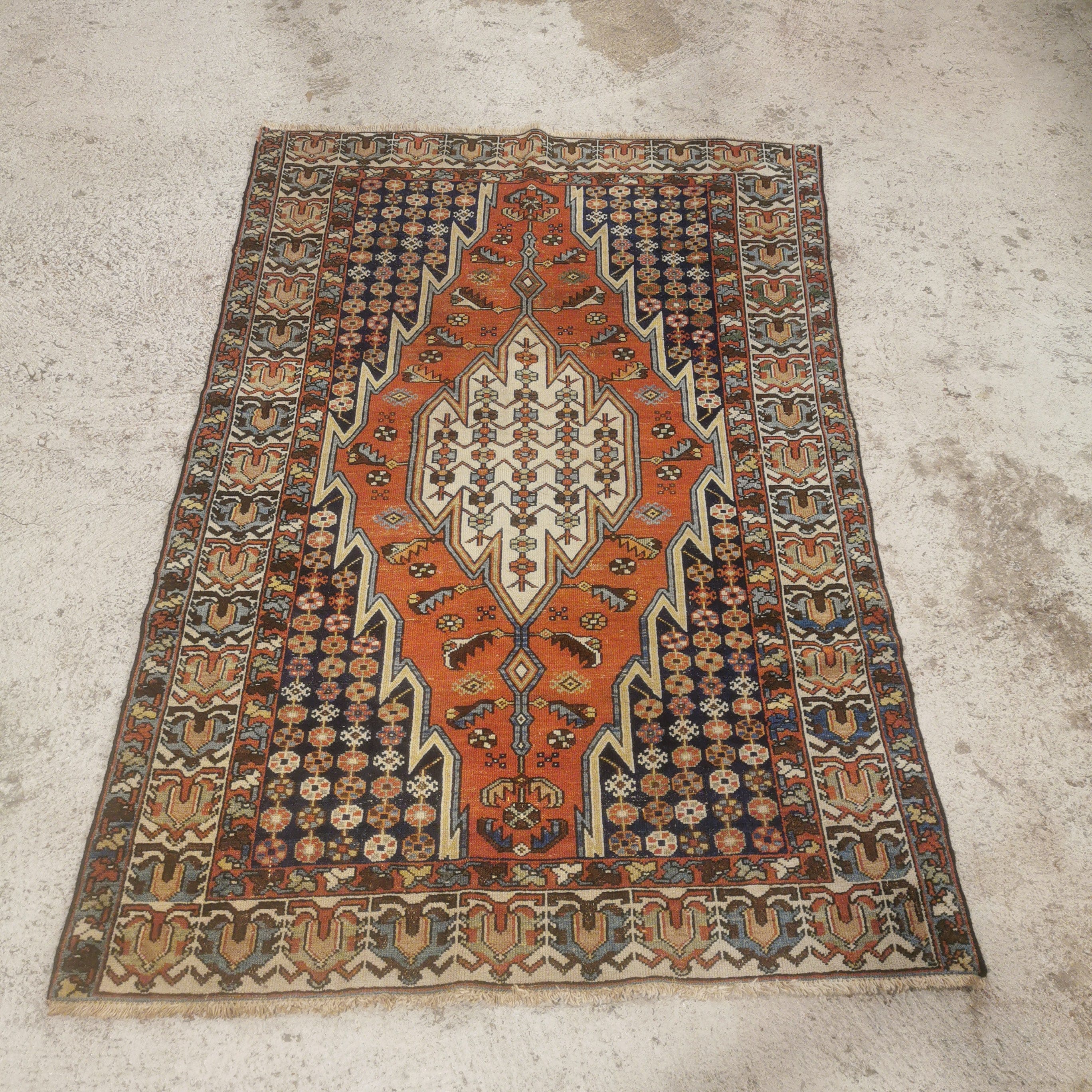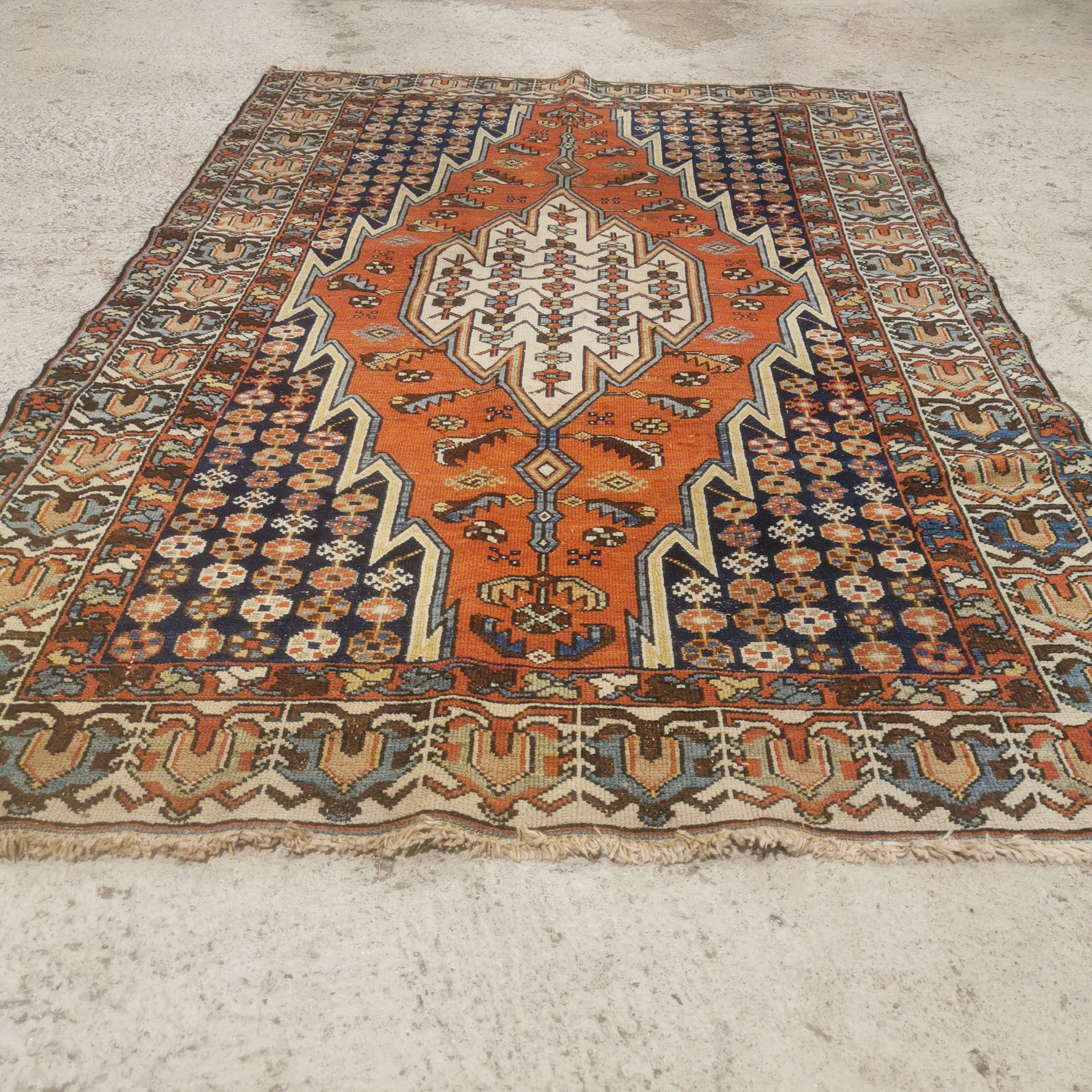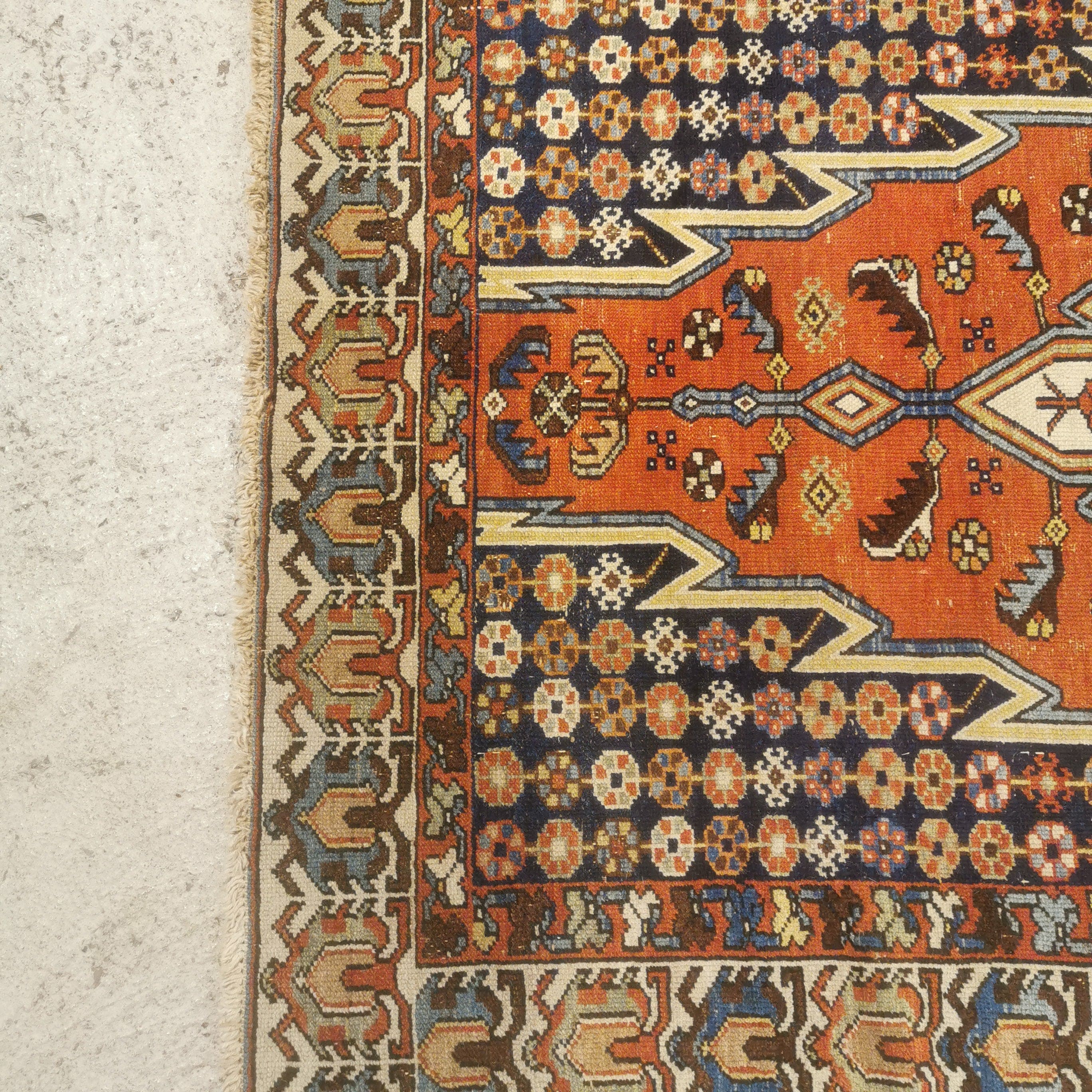 Alfombra Persa Kazak (caucaso) de 1920s en muy buen estado. Extraordinaria densidad de nudos. Anudada a mano por artesanos, diseños geométricos de estilo clásico y predominancia de tonos azules y rojos. Se originaron en el área de Kazak (Armenia) a principios del siglo XVIII.