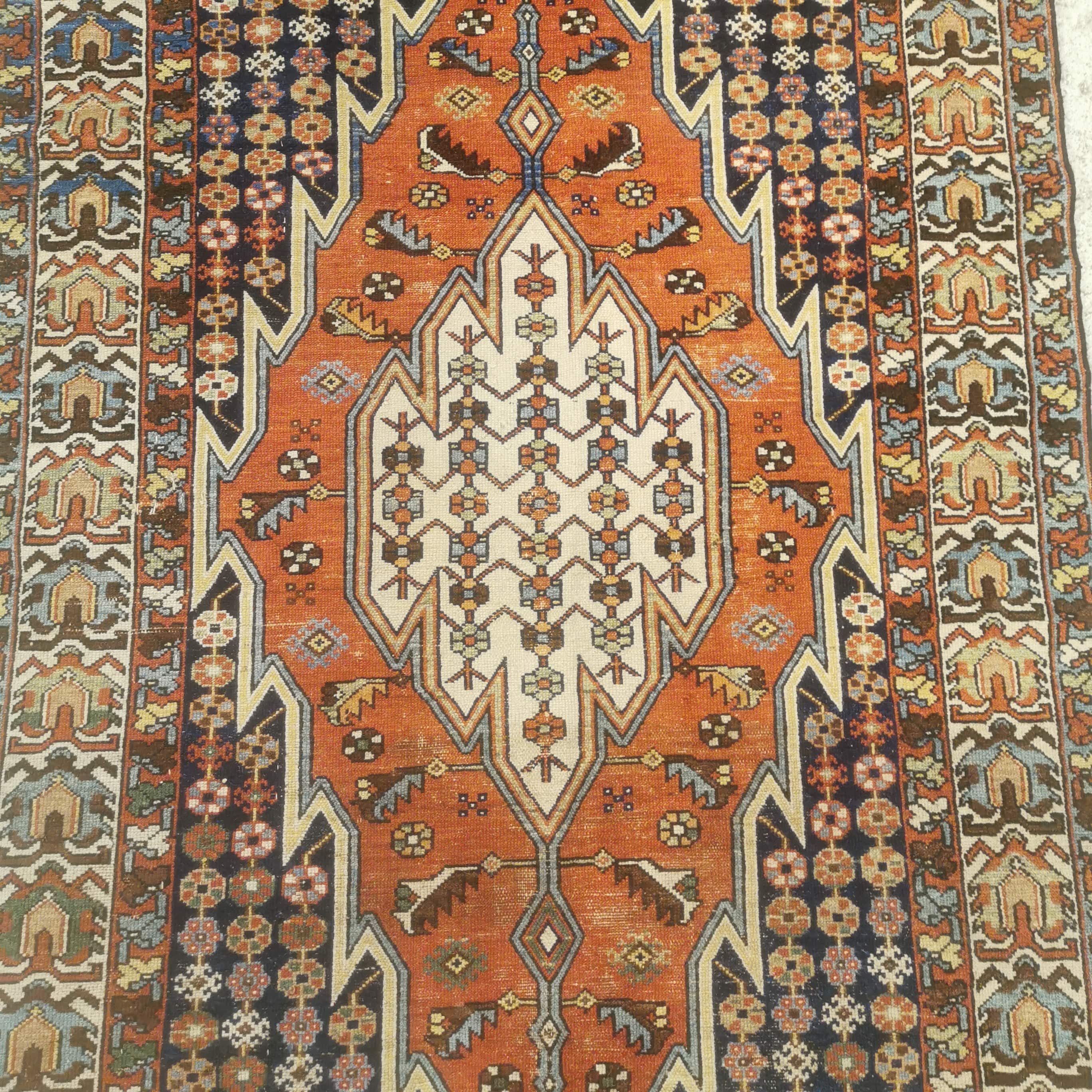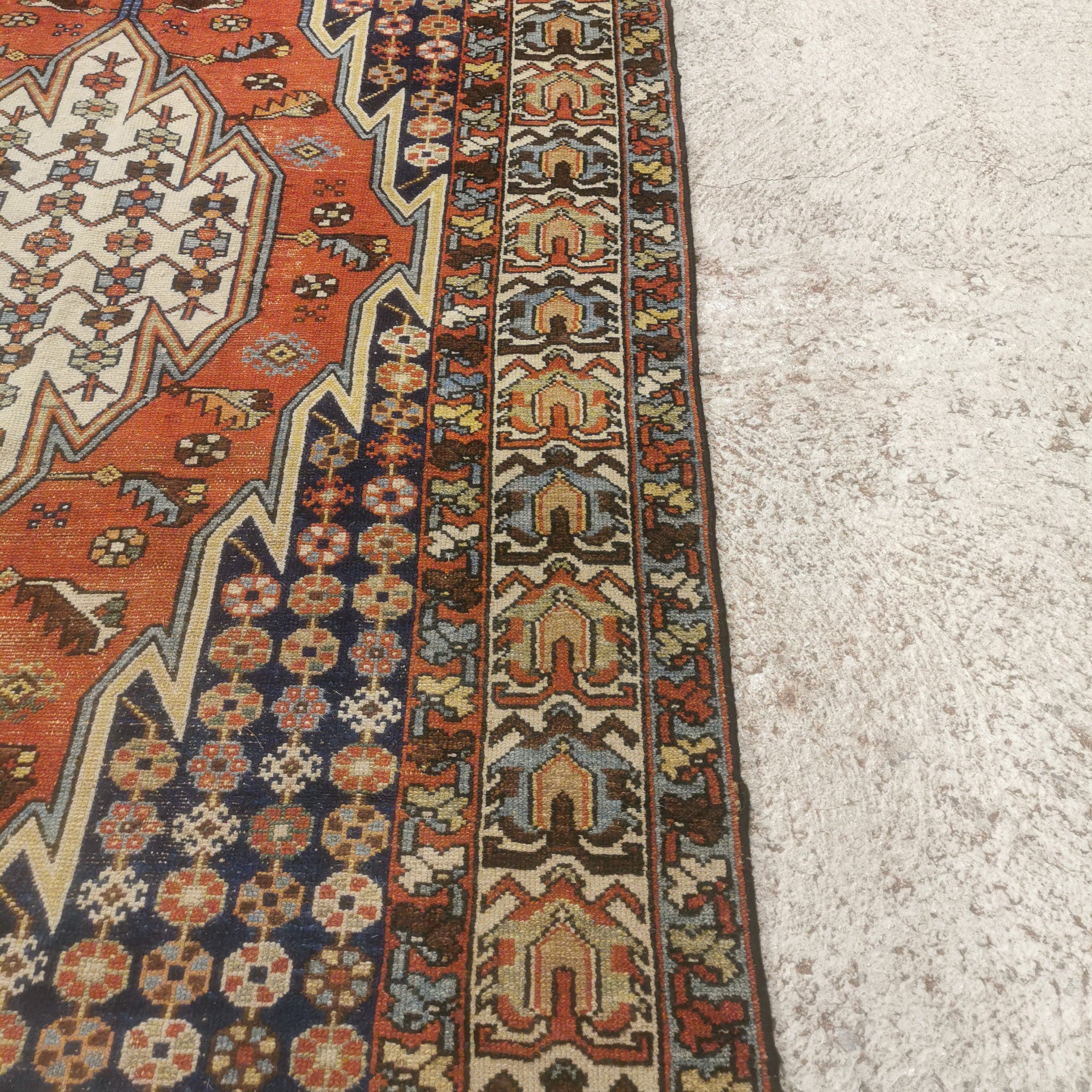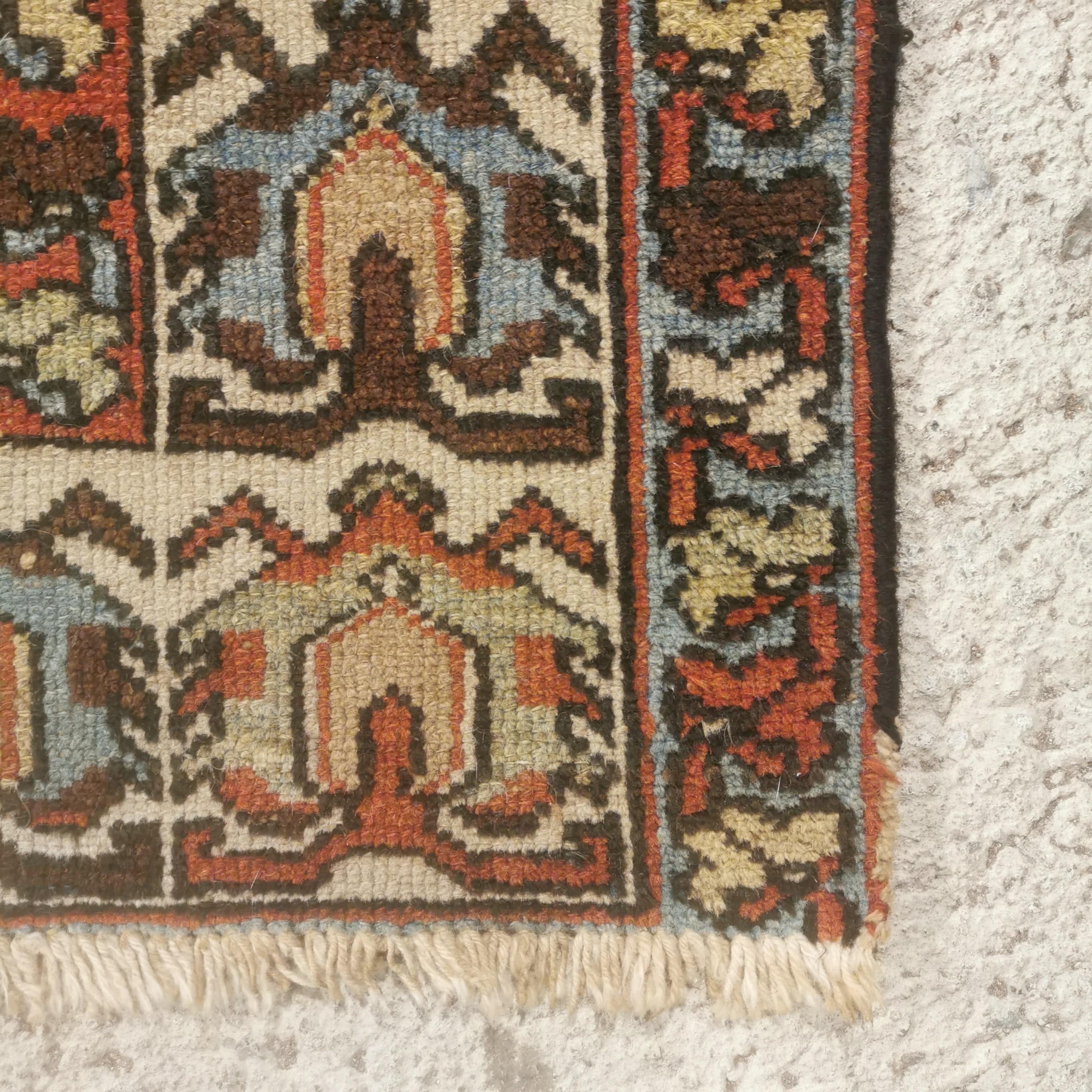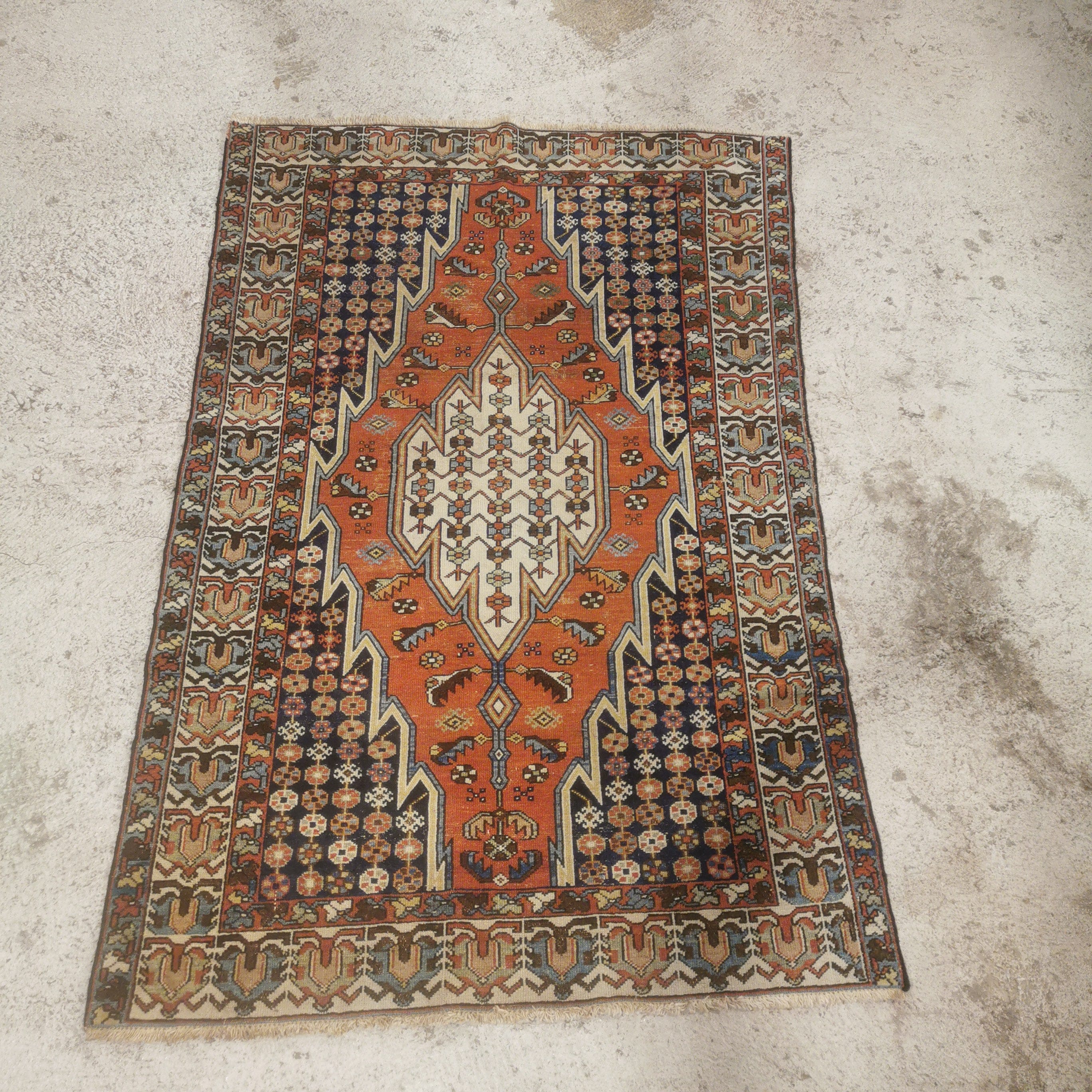 Alfombra Persa Kazak (caucaso) de 1920s en muy buen estado. Extraordinaria densidad de nudos. Anudada a mano por artesanos, diseños geométricos de estilo clásico y predominancia de tonos azules y rojos. Se originaron en el área de Kazak (Armenia) a principios del siglo XVIII.