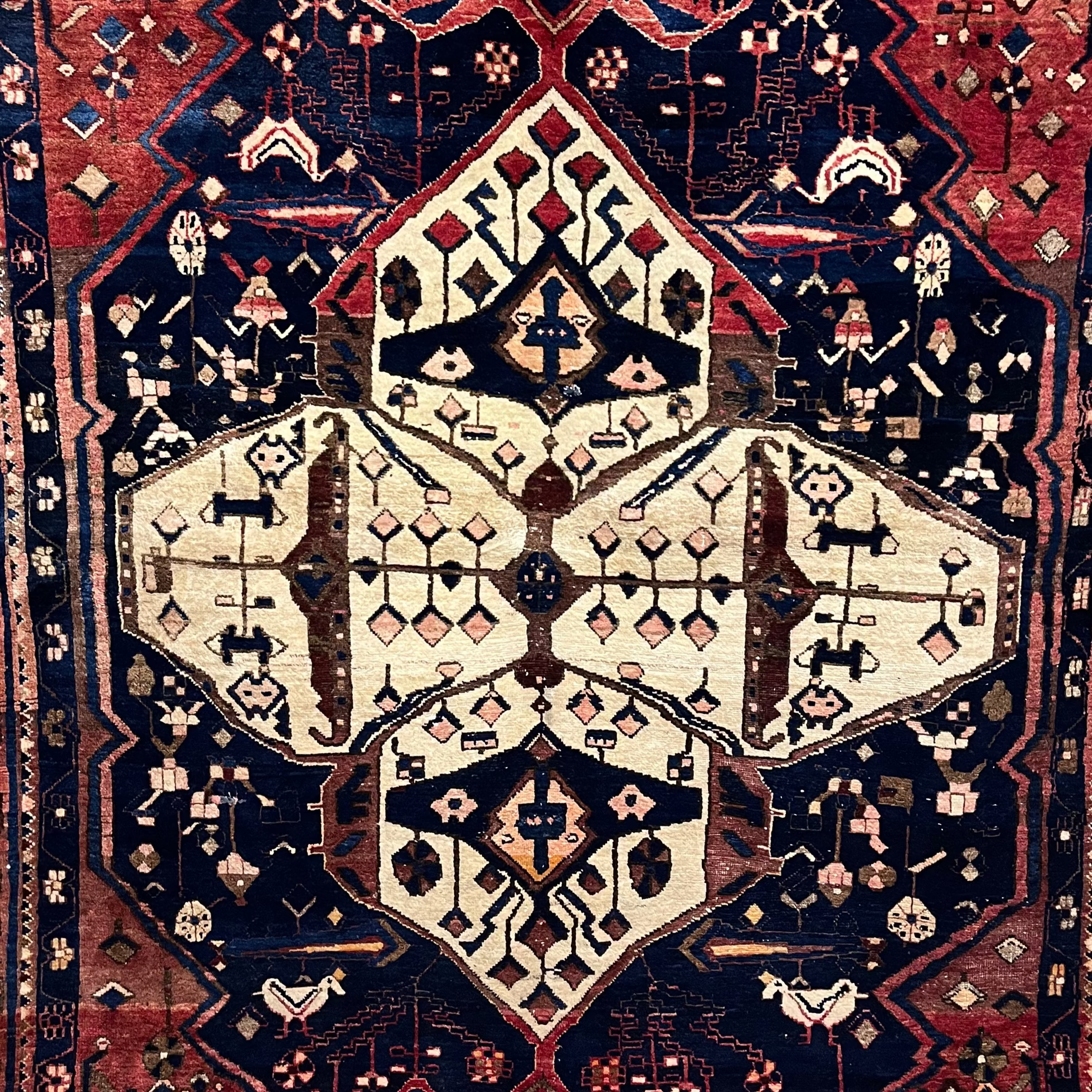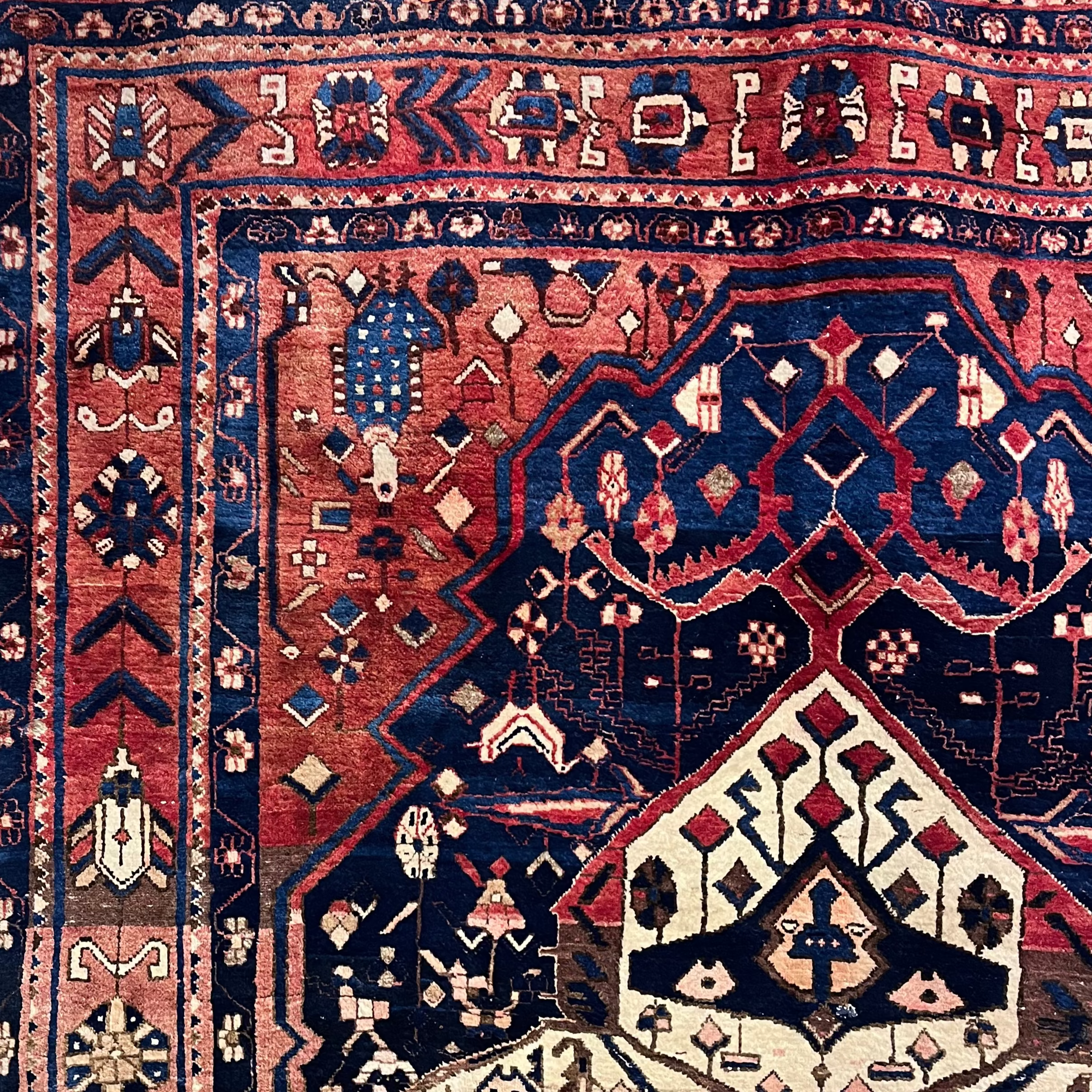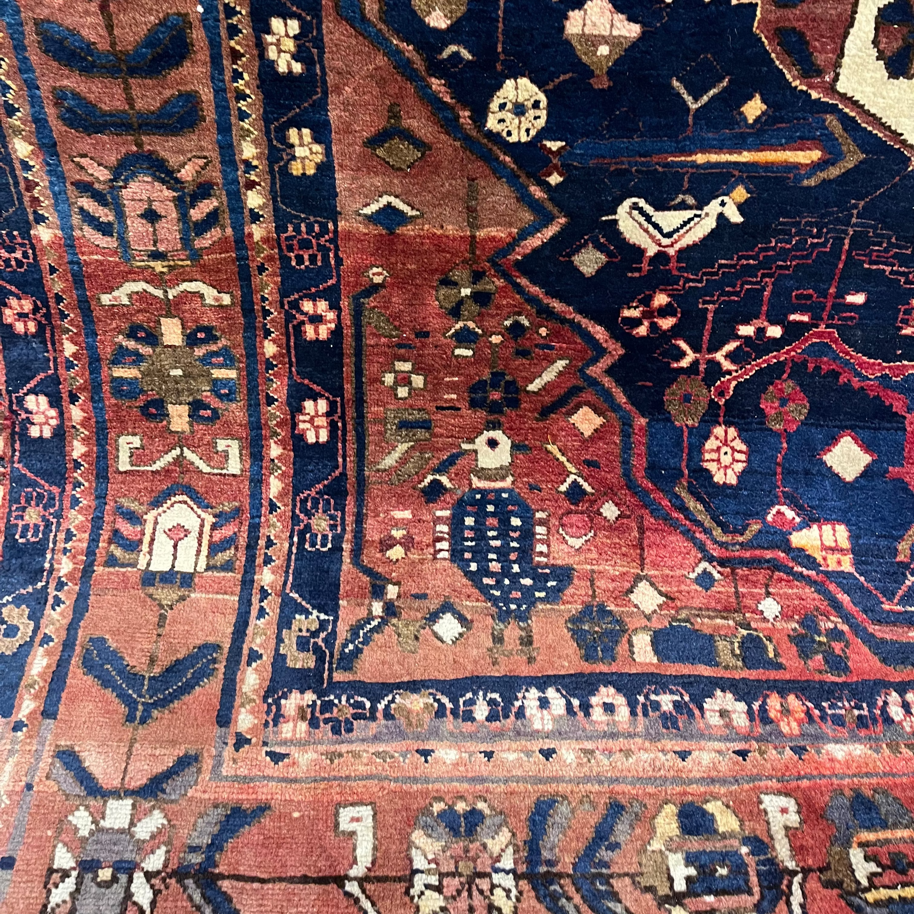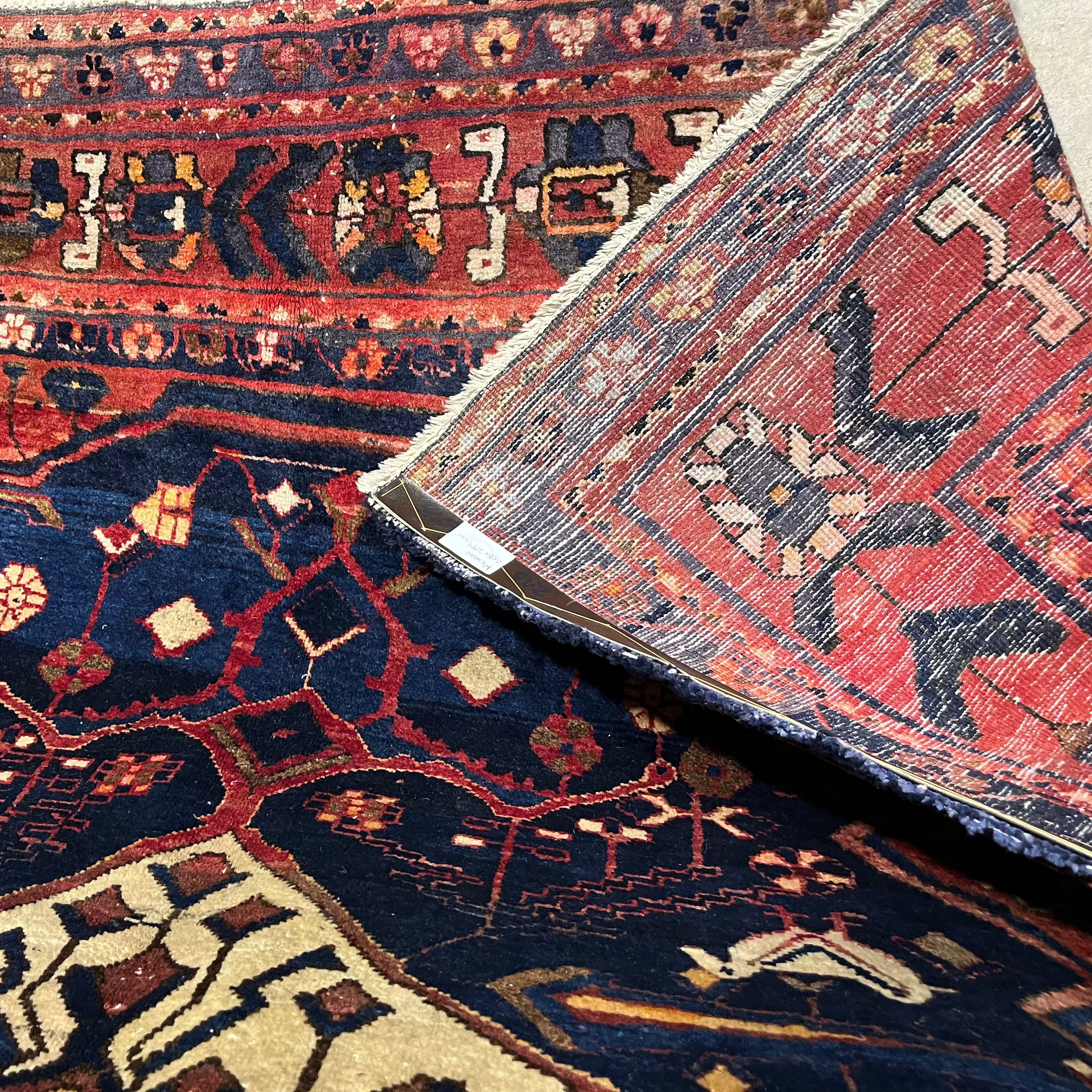 Hermosa alfombra iraní de Kashan muy bien conservada. Destaca por su diseño tradicional con un gran medallón central y un proceso de pigmentación y diseño completamente artesanal, lo que se refleja en las diferentes tonalidades de azul.
