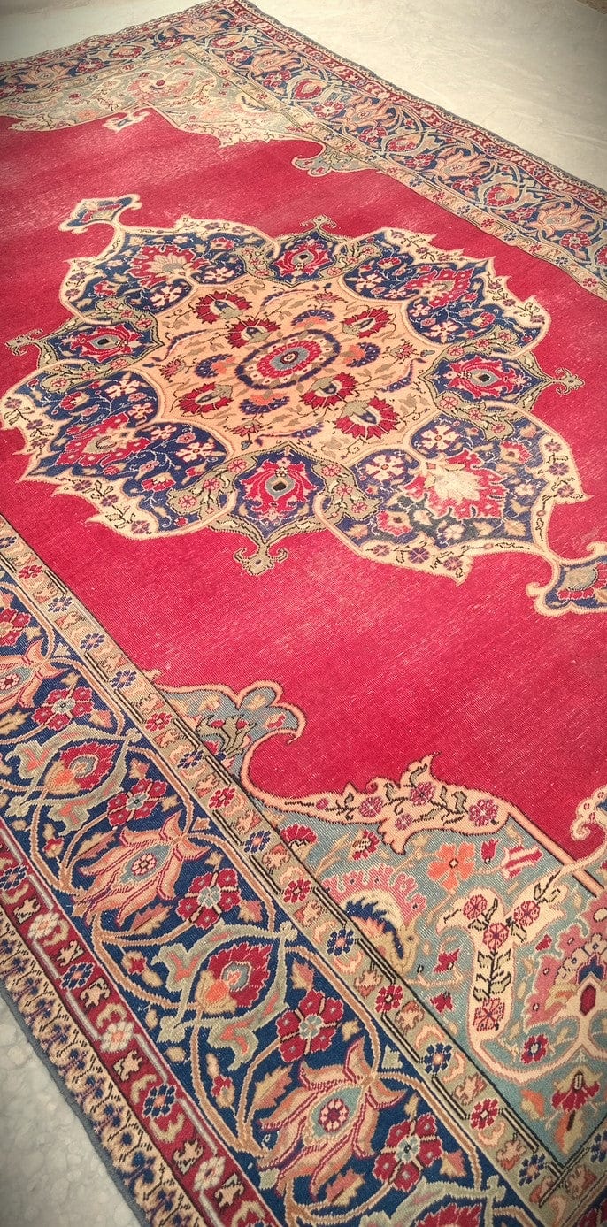 Excepcional densidad en sus nudos, gran contraste en su medallón central, bellas guardas con definidos diseños y escogidos colores.