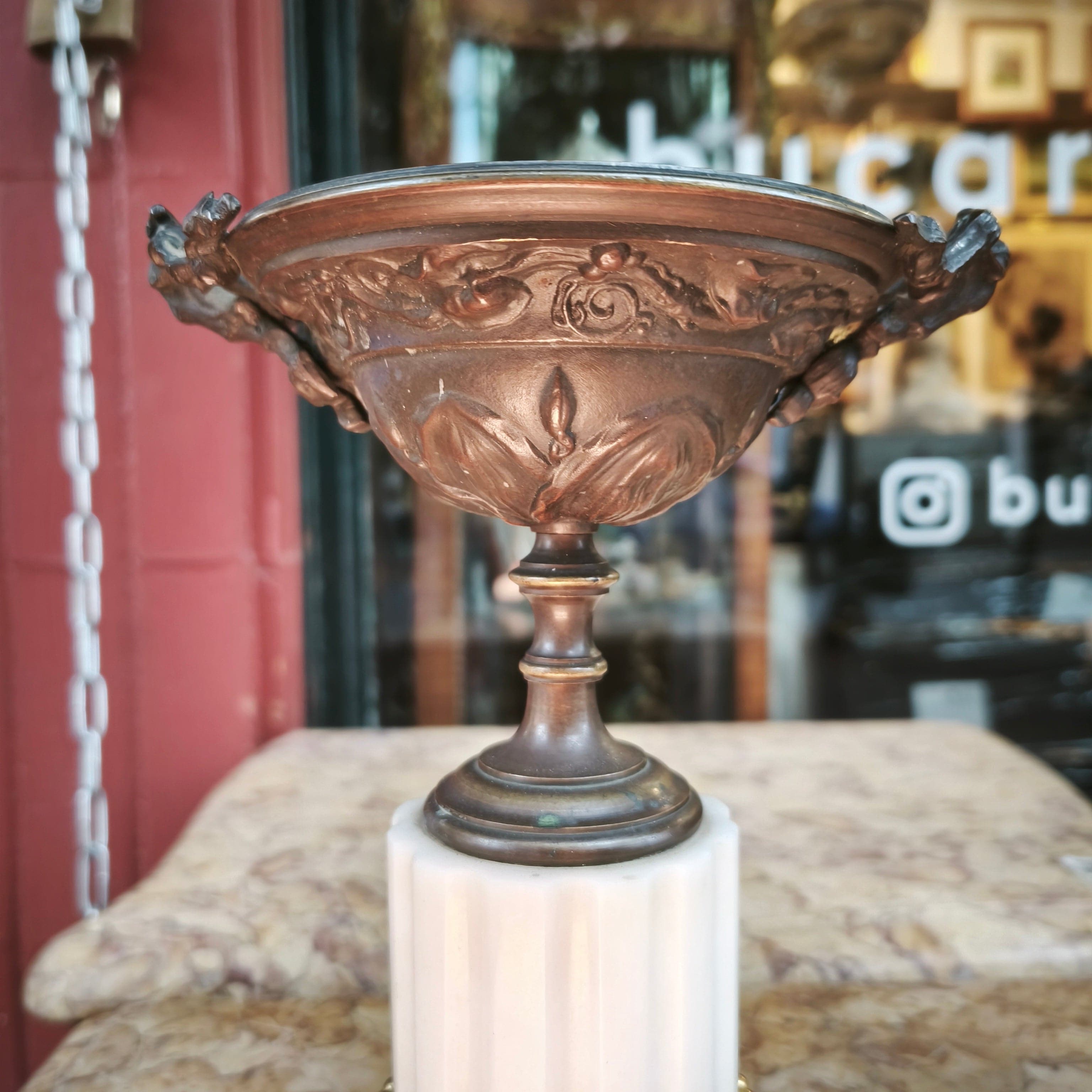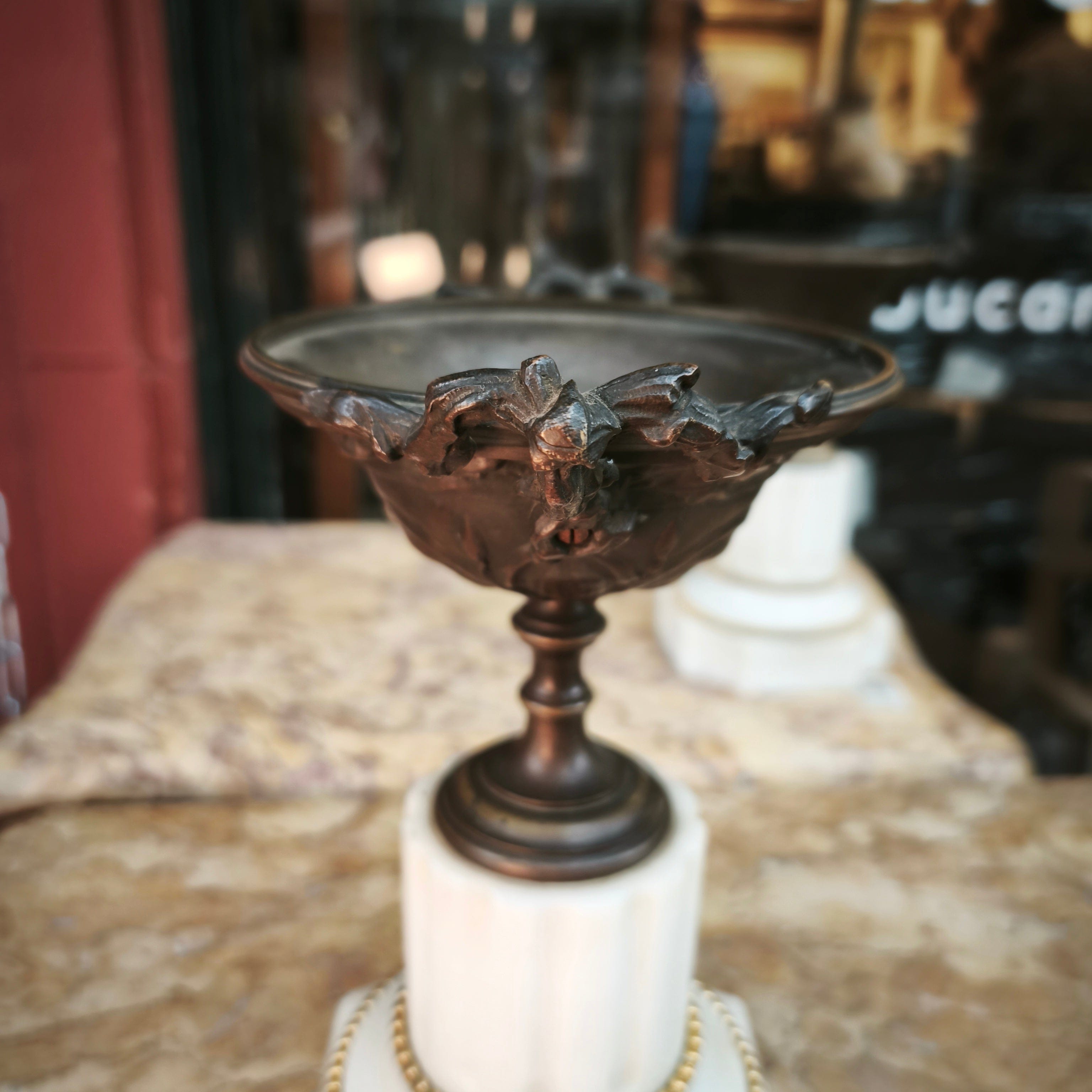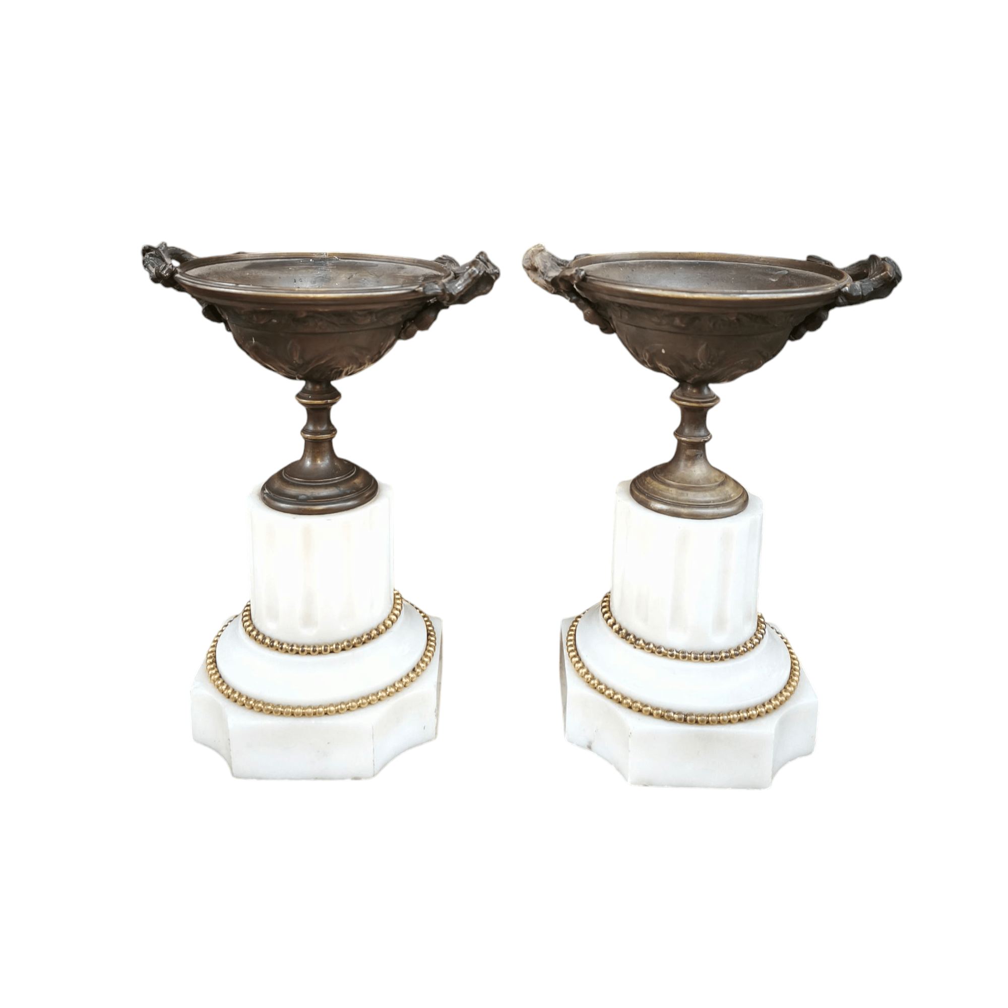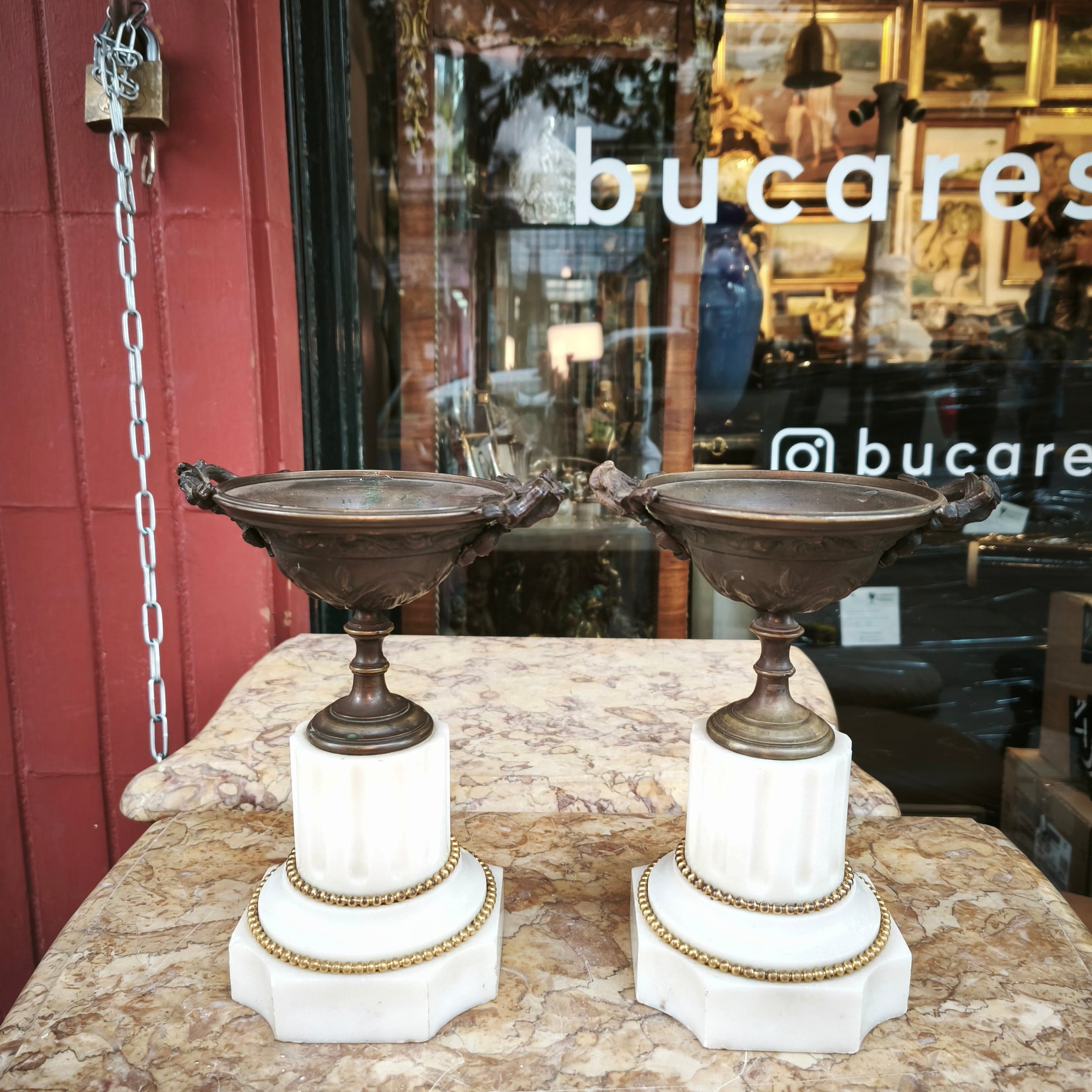Hermosos coponcitos franceses de bronce y mármol blanco estilo cassolettes.