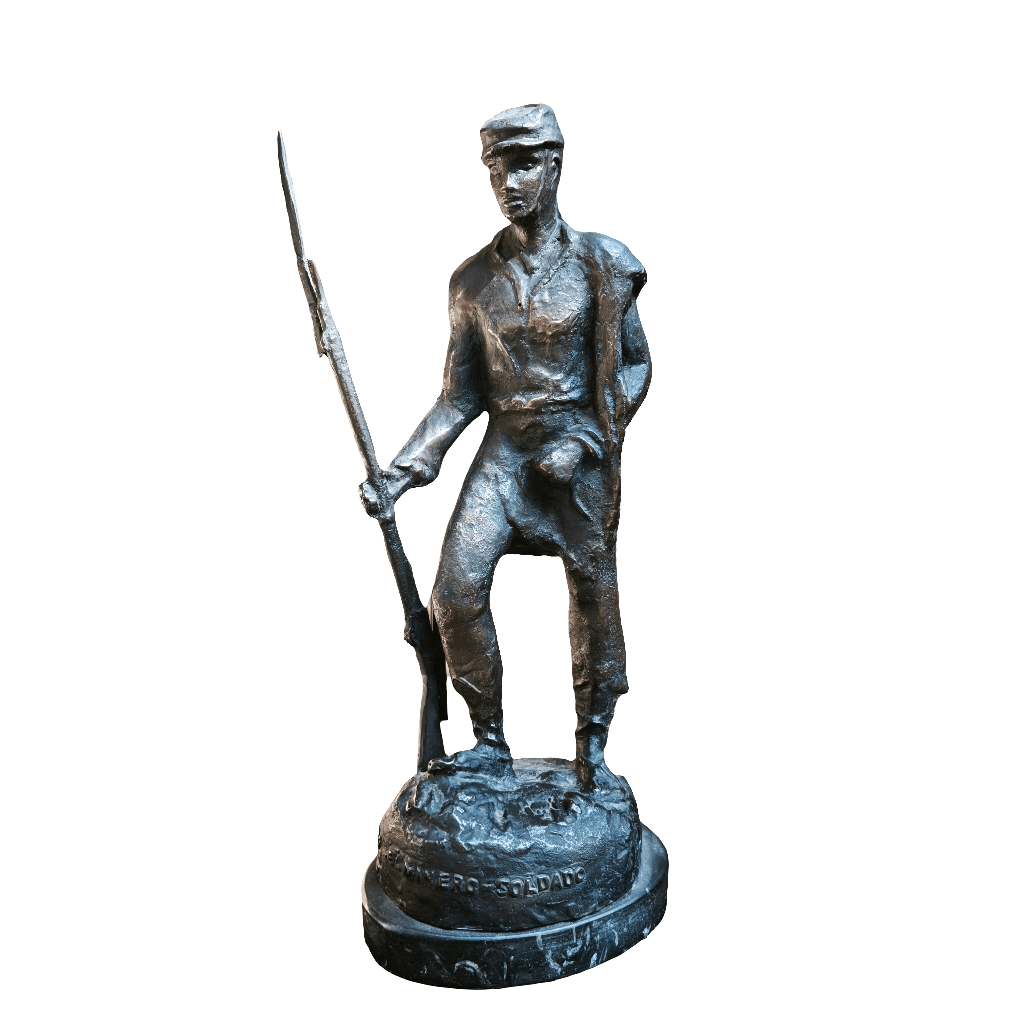Escultura hecha de bronce de origen chileno, hecha en 1980 por la empresa meatulrgica nacional, haciendo homenaje, por una parte, al período de boom de la industria salitrera chilena y a los soldados de la guerra del pacífico. La escultura representa a un soldado vestido con el uniforme de ls soldados de finales del siglo 19, posando con su balloneta en una mano y un cabestrillo en el otro brazo. La pieza tiene, en su base, la inscripción "1880 CODELCO CHILE EL MINERO SOLDADO"