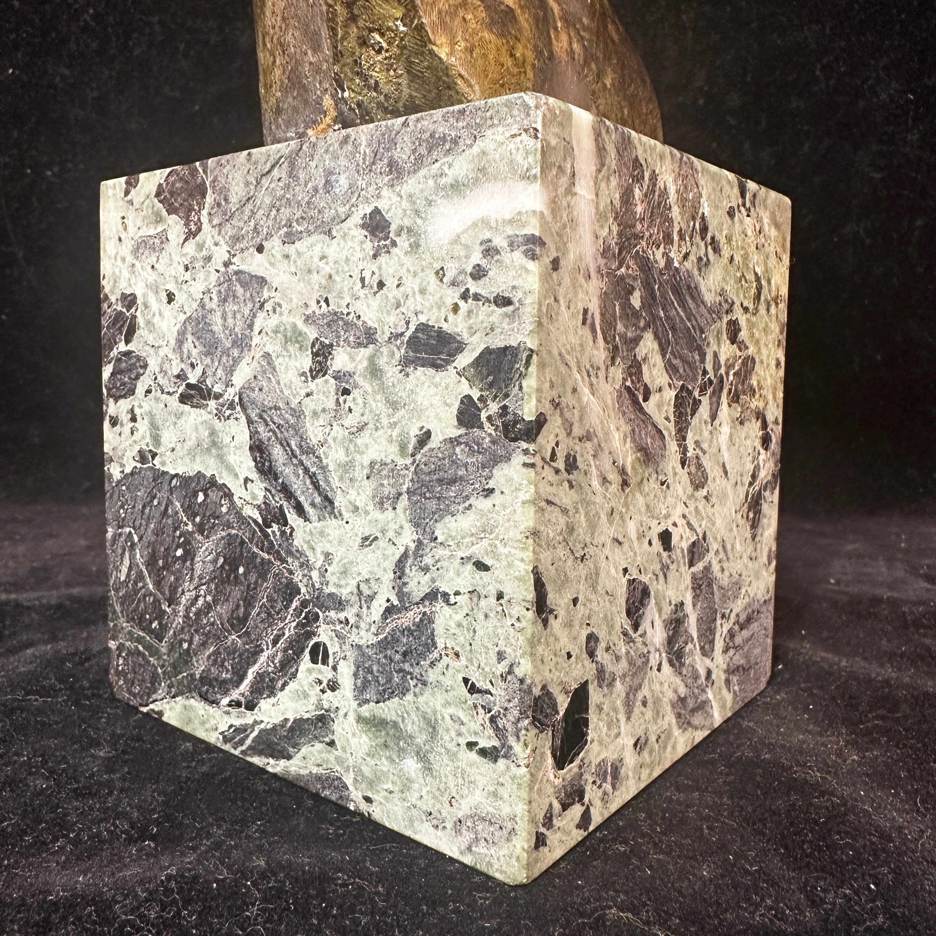 Enigmática escultura en bronce con pátina marrón sobre base de mármol brèche verde, obra de Jean-Baptiste Carpeaux (1827–1875). Replica de la original, que representa a un pescador joven con una concha en sus manos, arrodillado en el agua.
