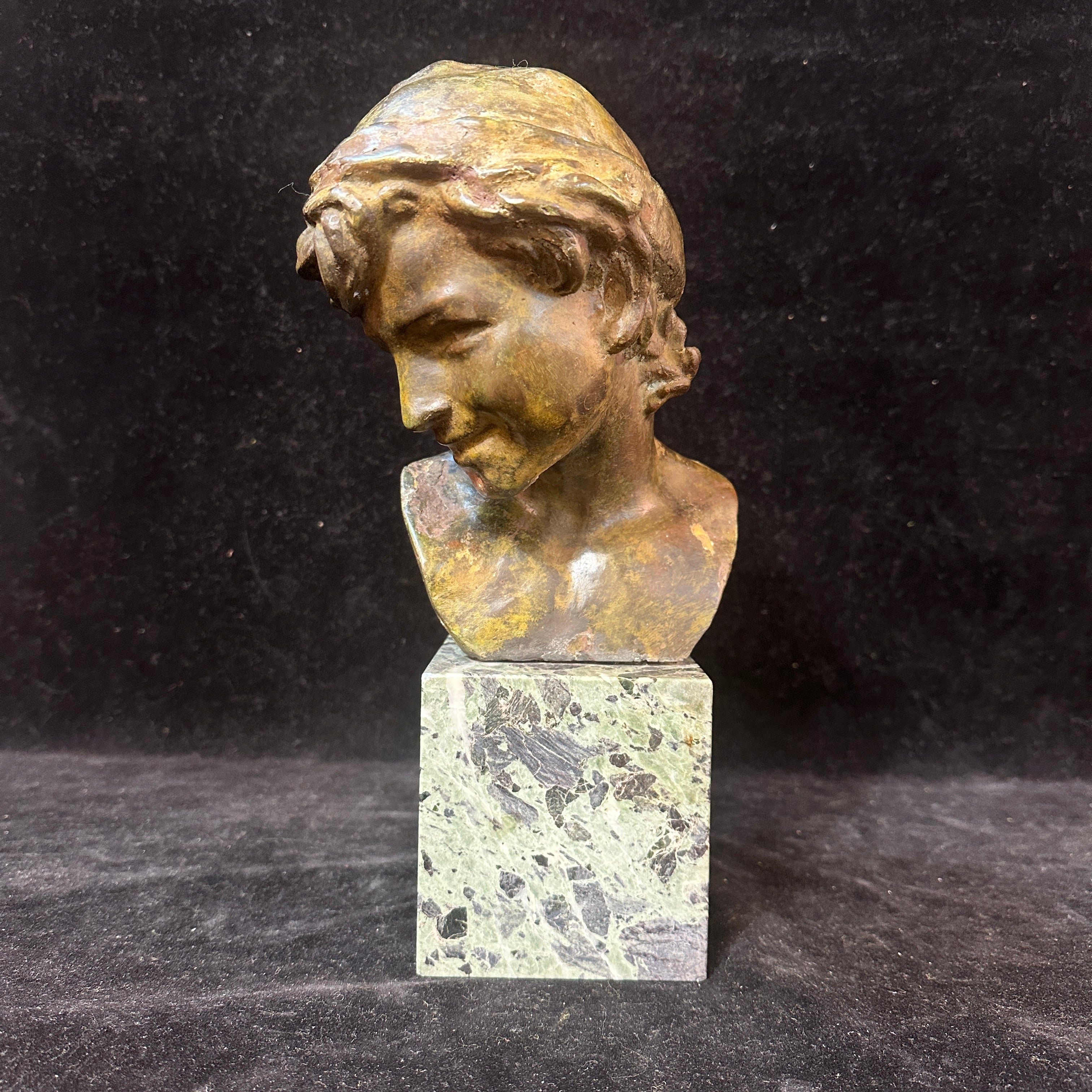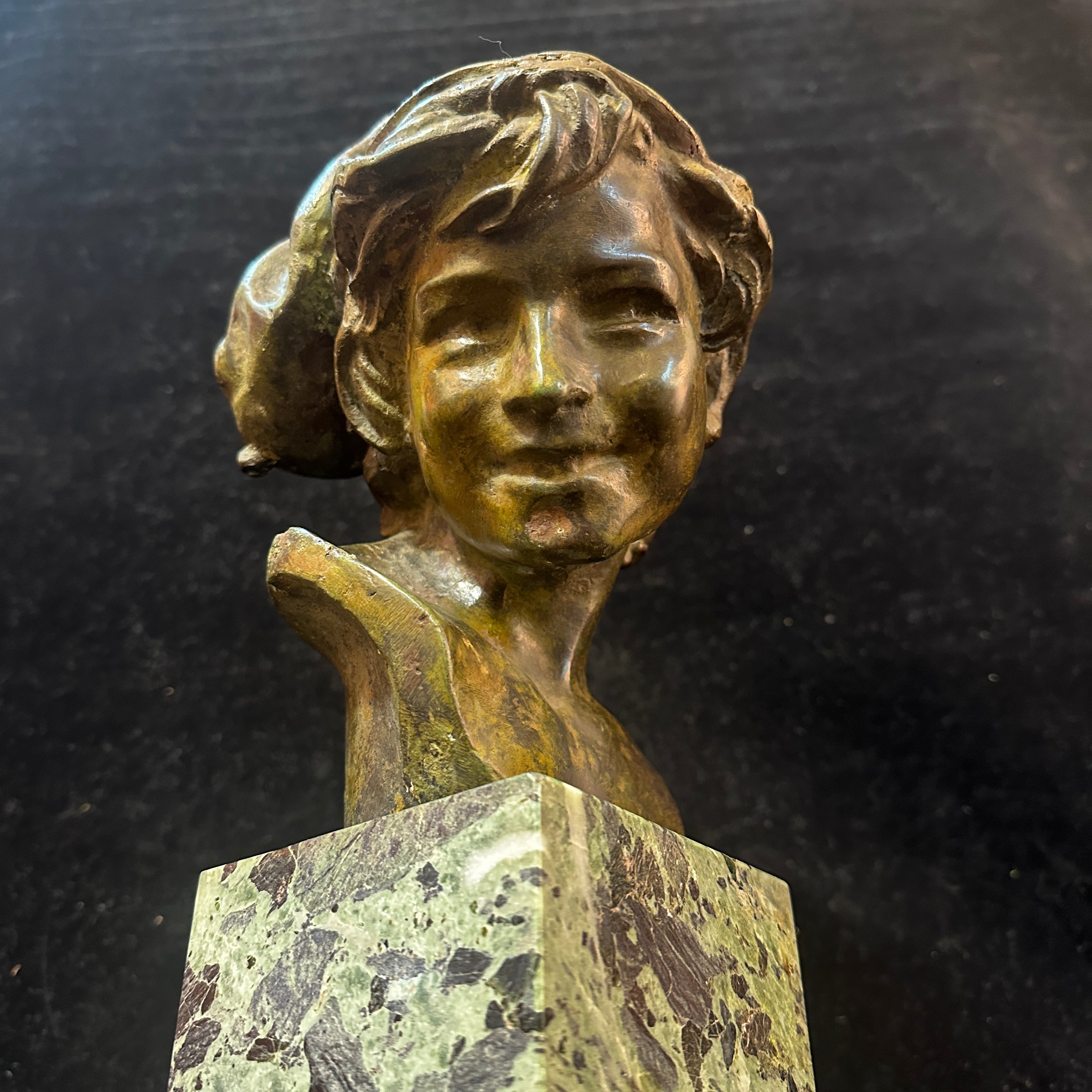 Busto en bronce sobre mármol 'Pescador de la concha' de J. Baptiste Carpeaux (1827-1875)