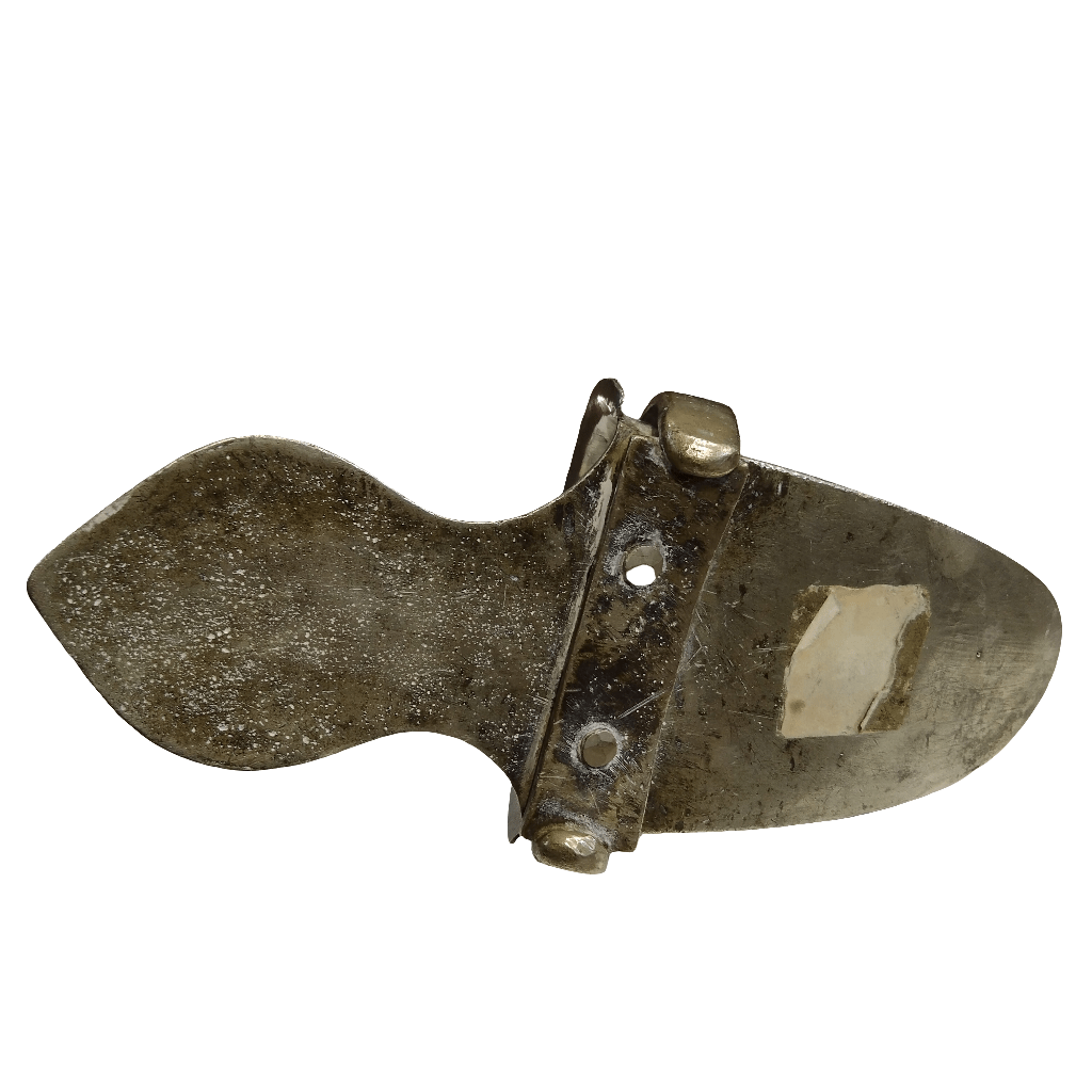 Increíble estribo antiguo, hecho de plata, con un bello y sobrio diseño, con tallados a mano, representando un águila y motivos florales, y una hebilla con forma de puño.