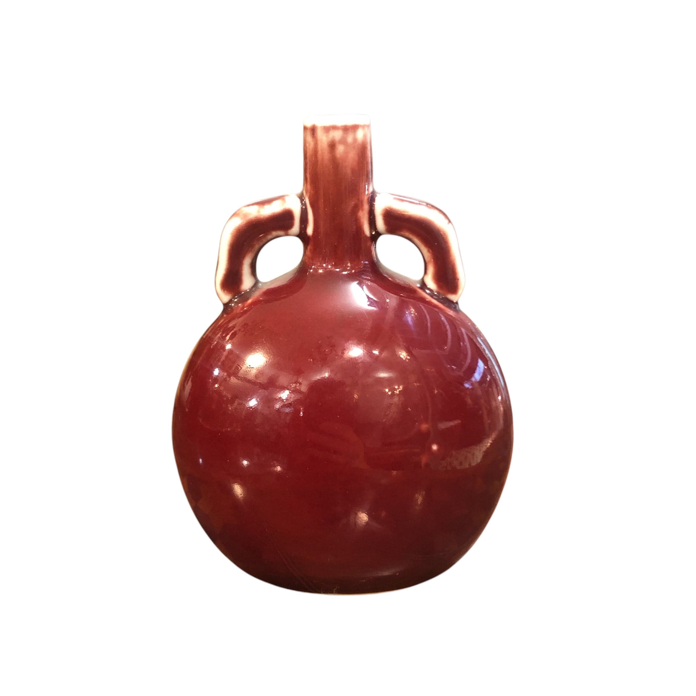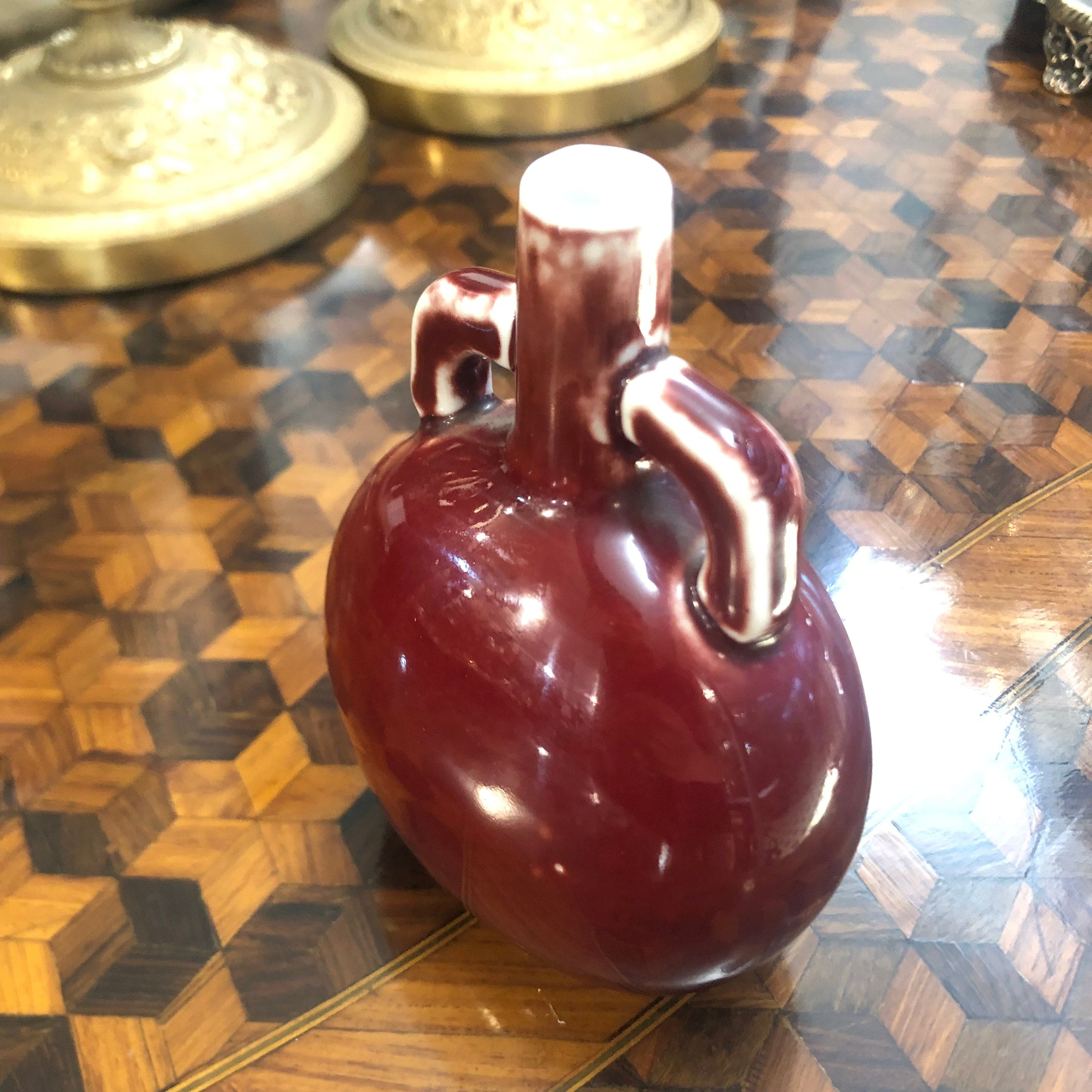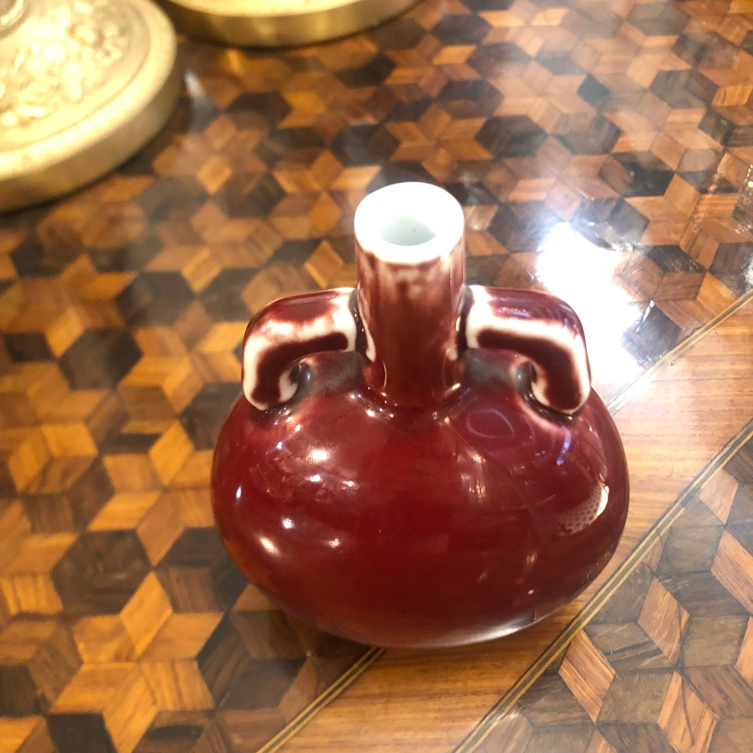 Jarron chino porcelana pequeño “Sang de boeuf” doble asa