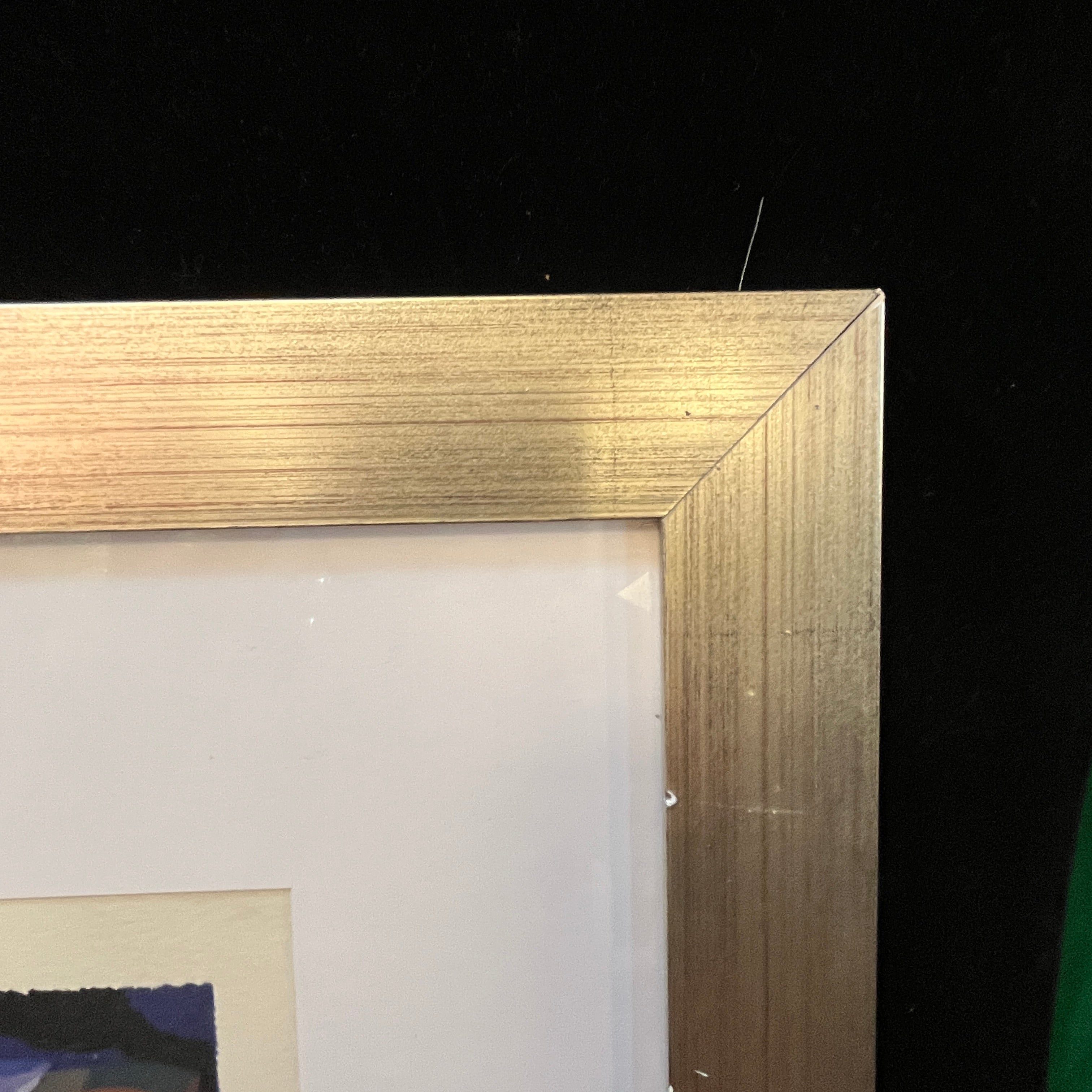 Serigrafía del reconocido artista chileno Mario Toral, firmado y marcado como prueba de artista, correspondiente a una pieza escala del mural hecho por el artista para la estación Universidad de Chile del metro de Santiago en 2013. La obra está enmarcada en madera, de diseño sobrio, y terminación en plateado.