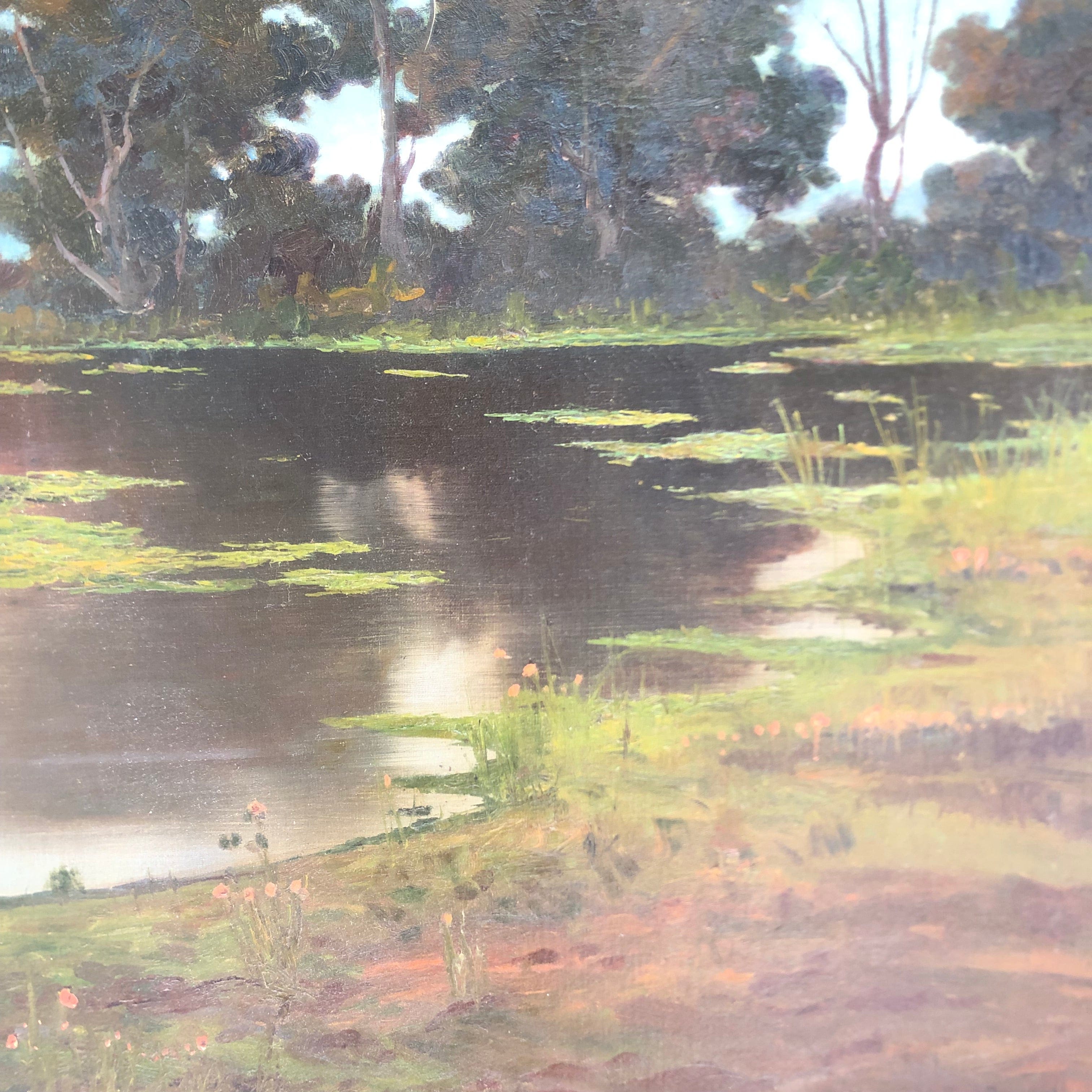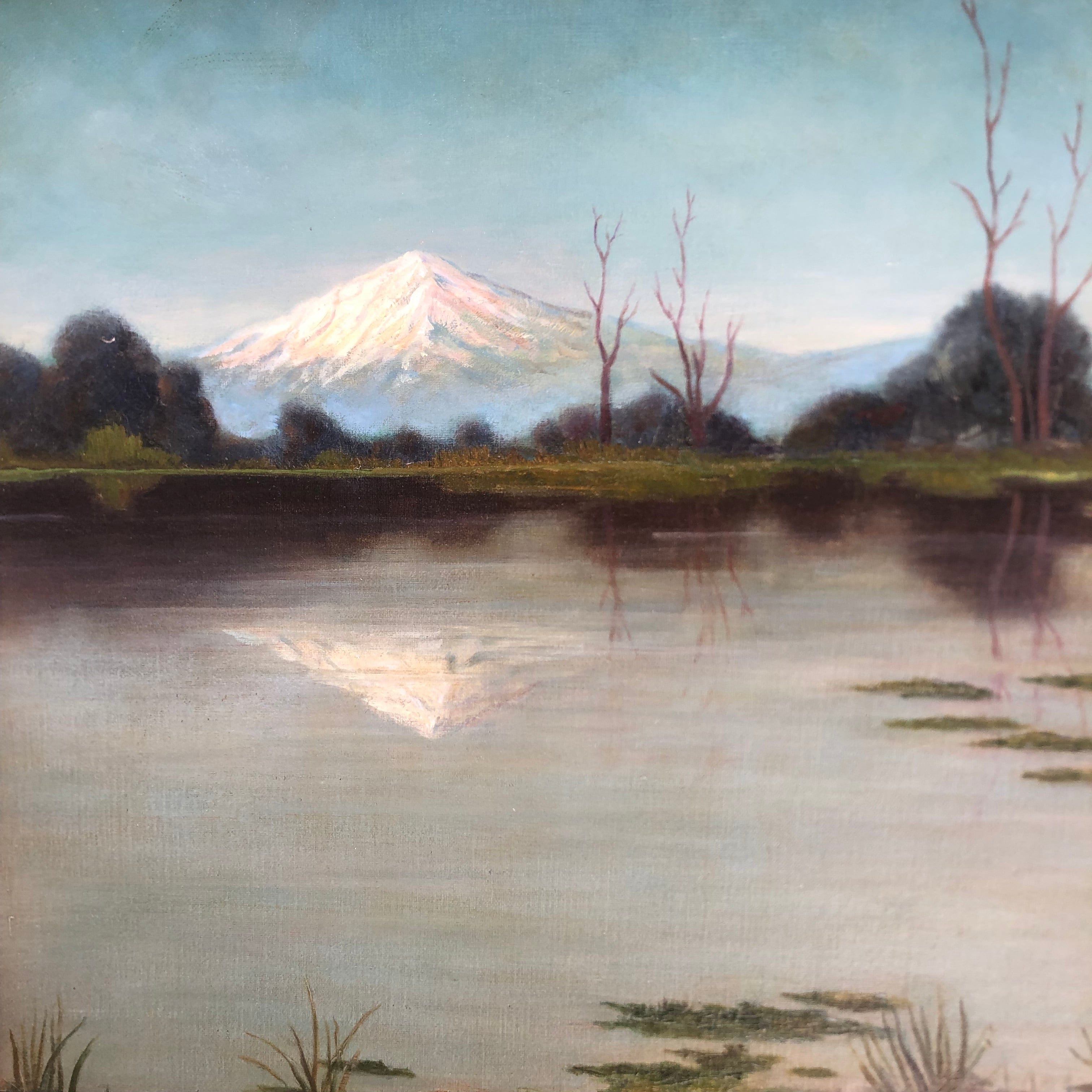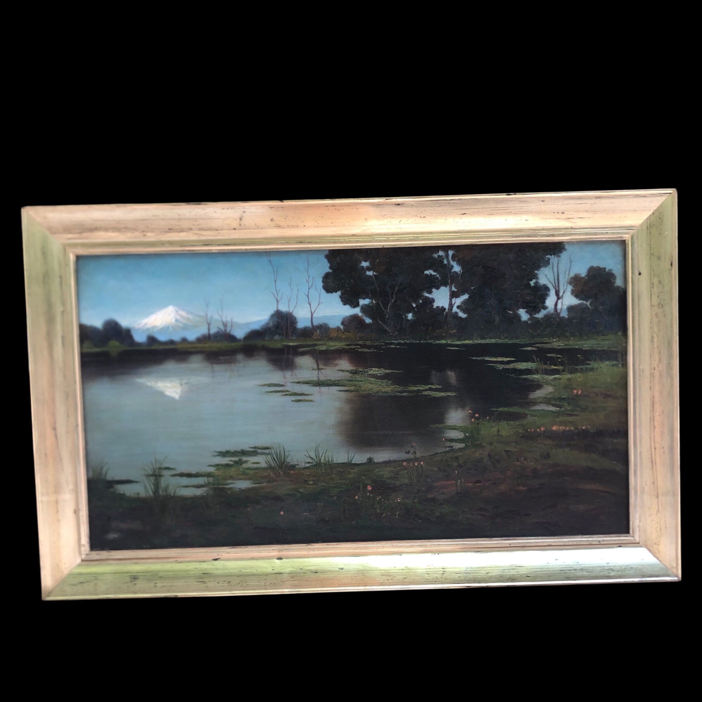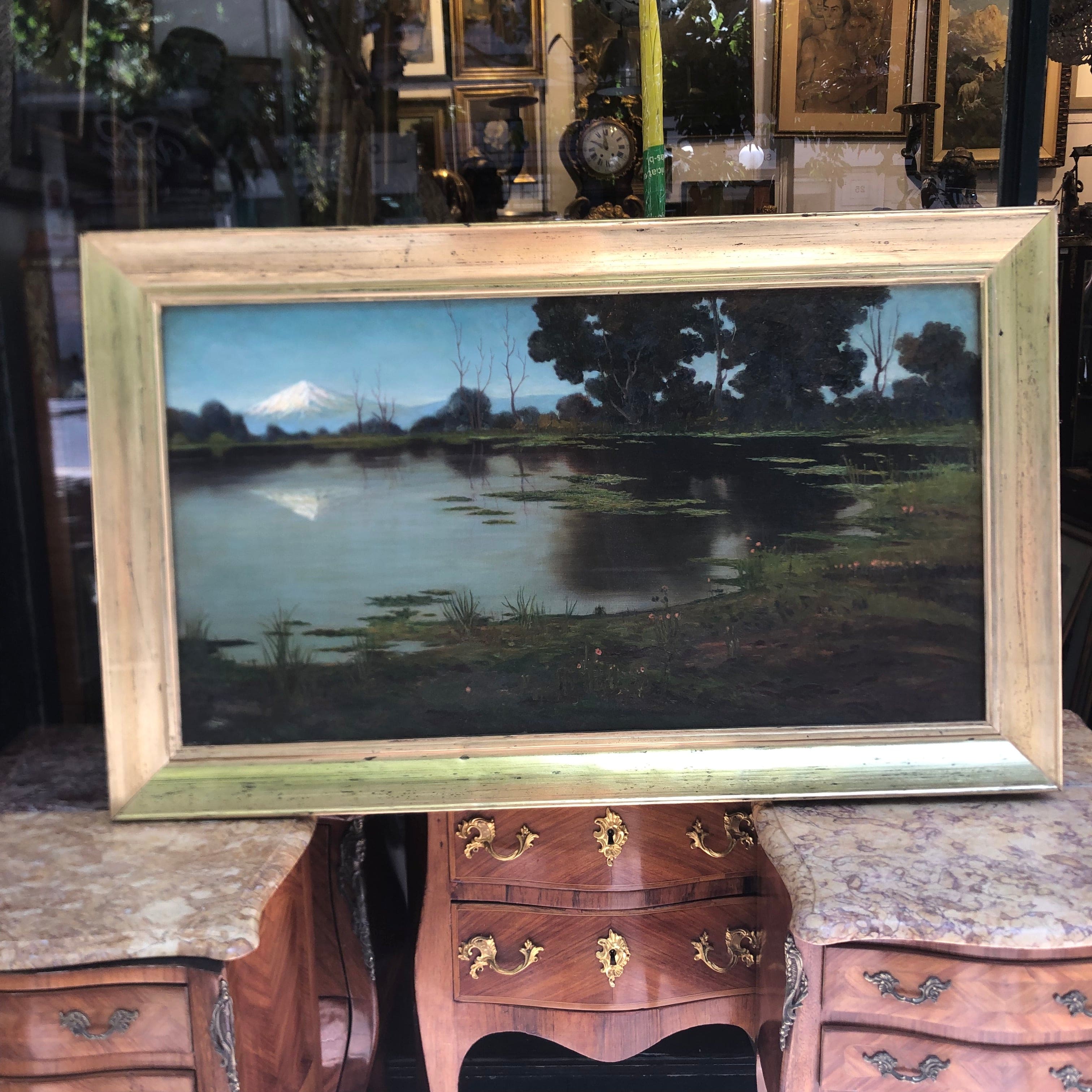 Óleo sobre tela del artista chileno Benito Ramos Catalán, representando un paisaje de Chile en el cual vemos el lago Llanquihue, con el Volcán Osorno de fondo. La obra está enmarcada en madera pintada en dorado.