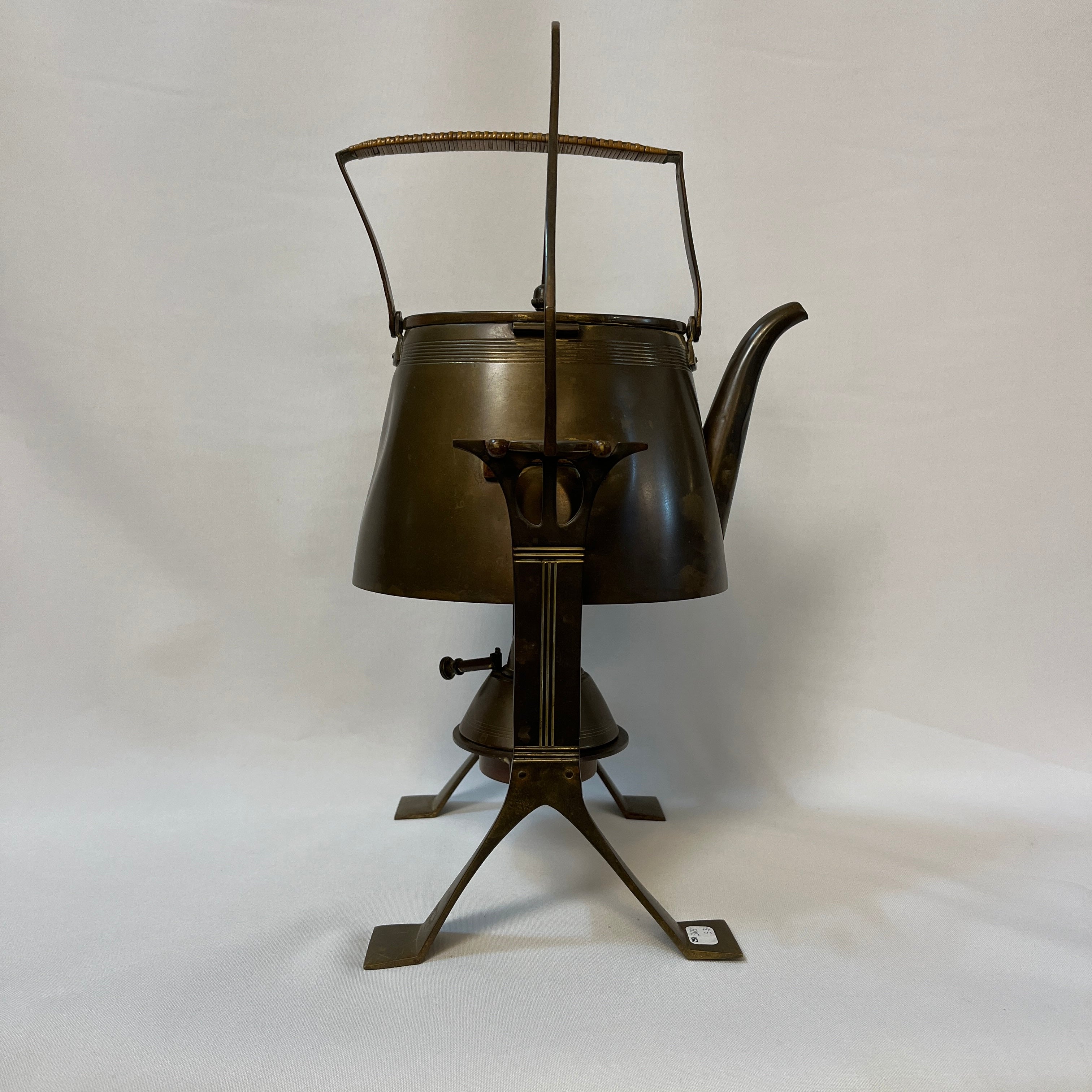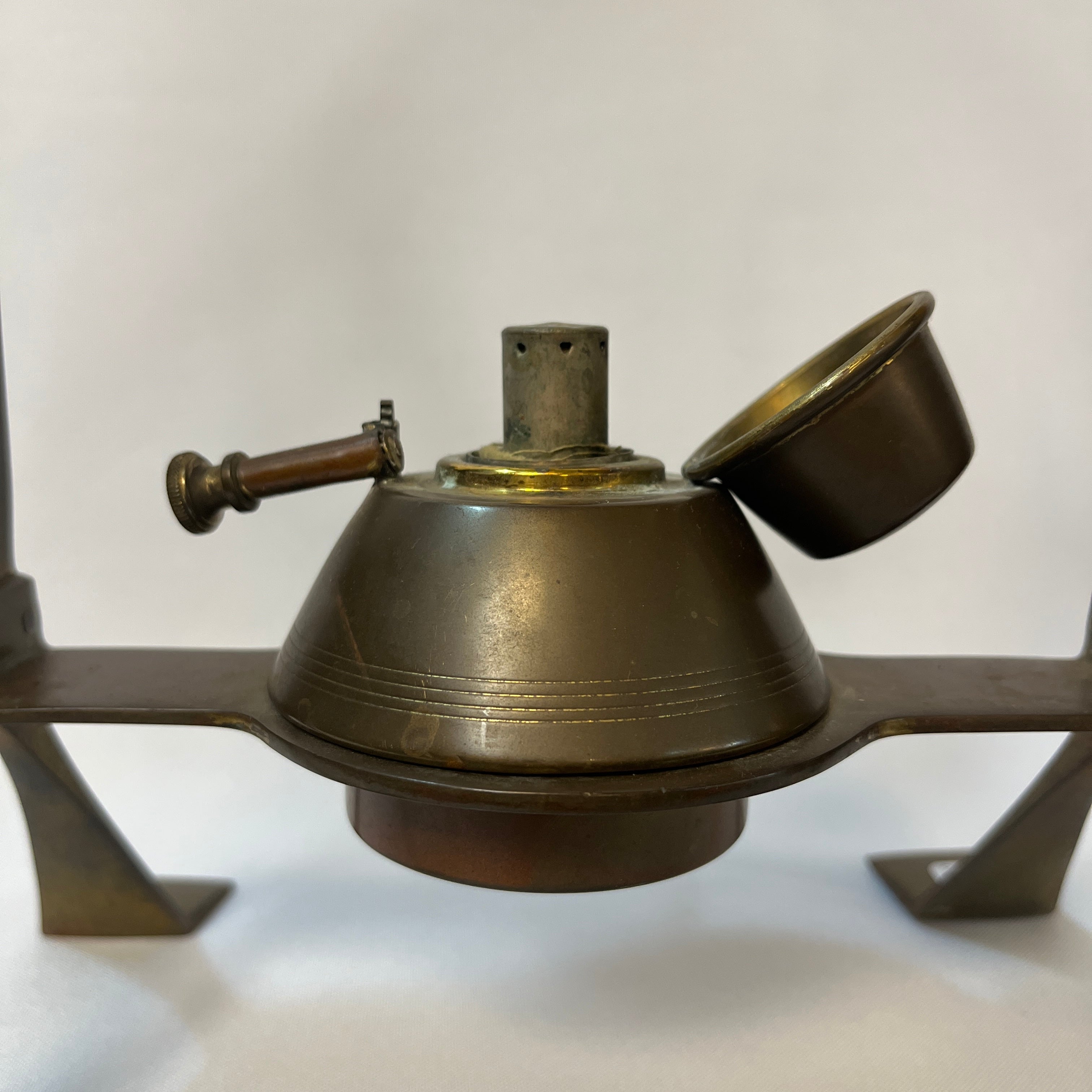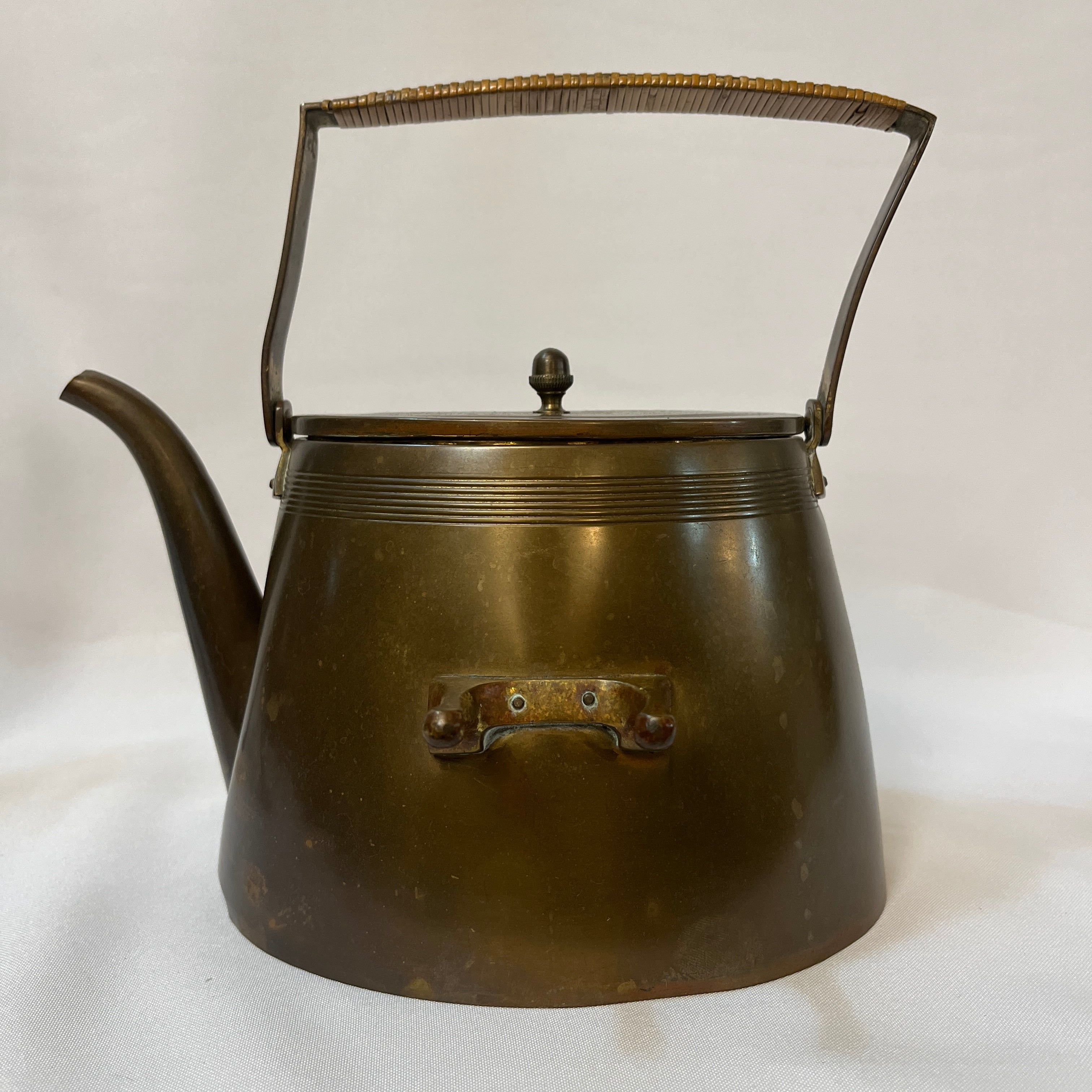 Especial samovar alemán de cobre, de refinado estilo Jugendstil, nombre con el que se conoció el movimiento Art Nouveau en Alemania y Austria. Su diseño combina una estructura geométrica con suaves curvas que aportan elegancia y un carácter distintivo, propio de la estética modernista alemana de comienzos del siglo XX.