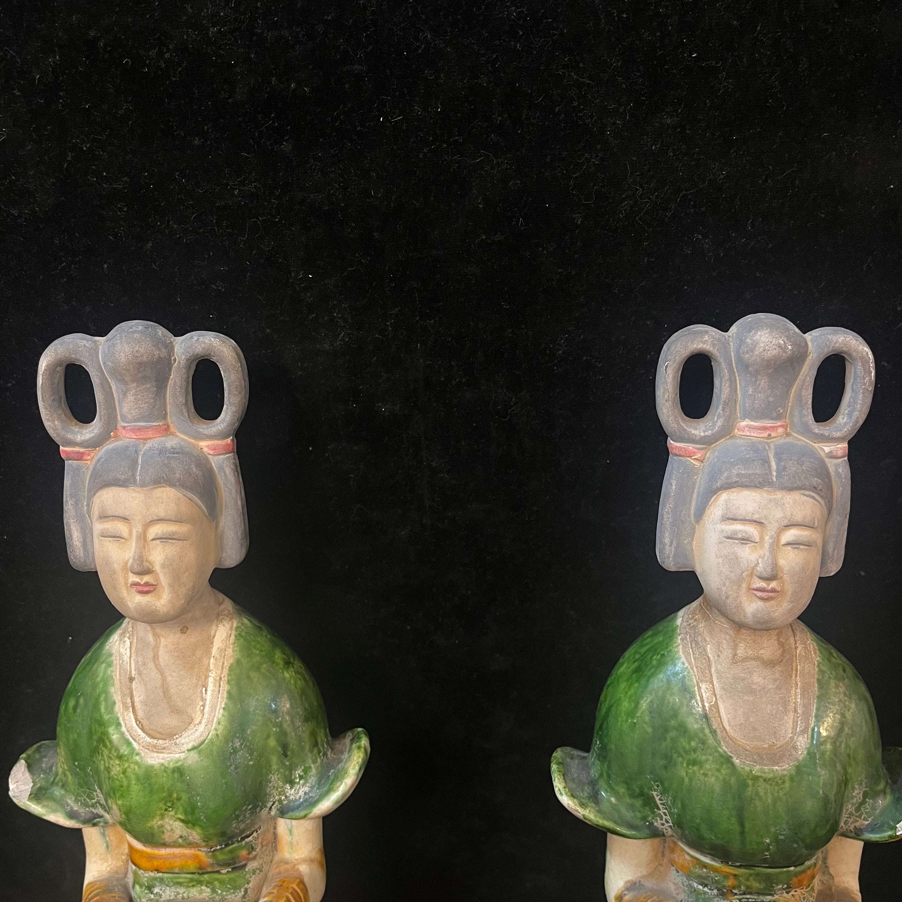 Pareja de figuras chinas terracota estilo Tang ‘Damas de verde’