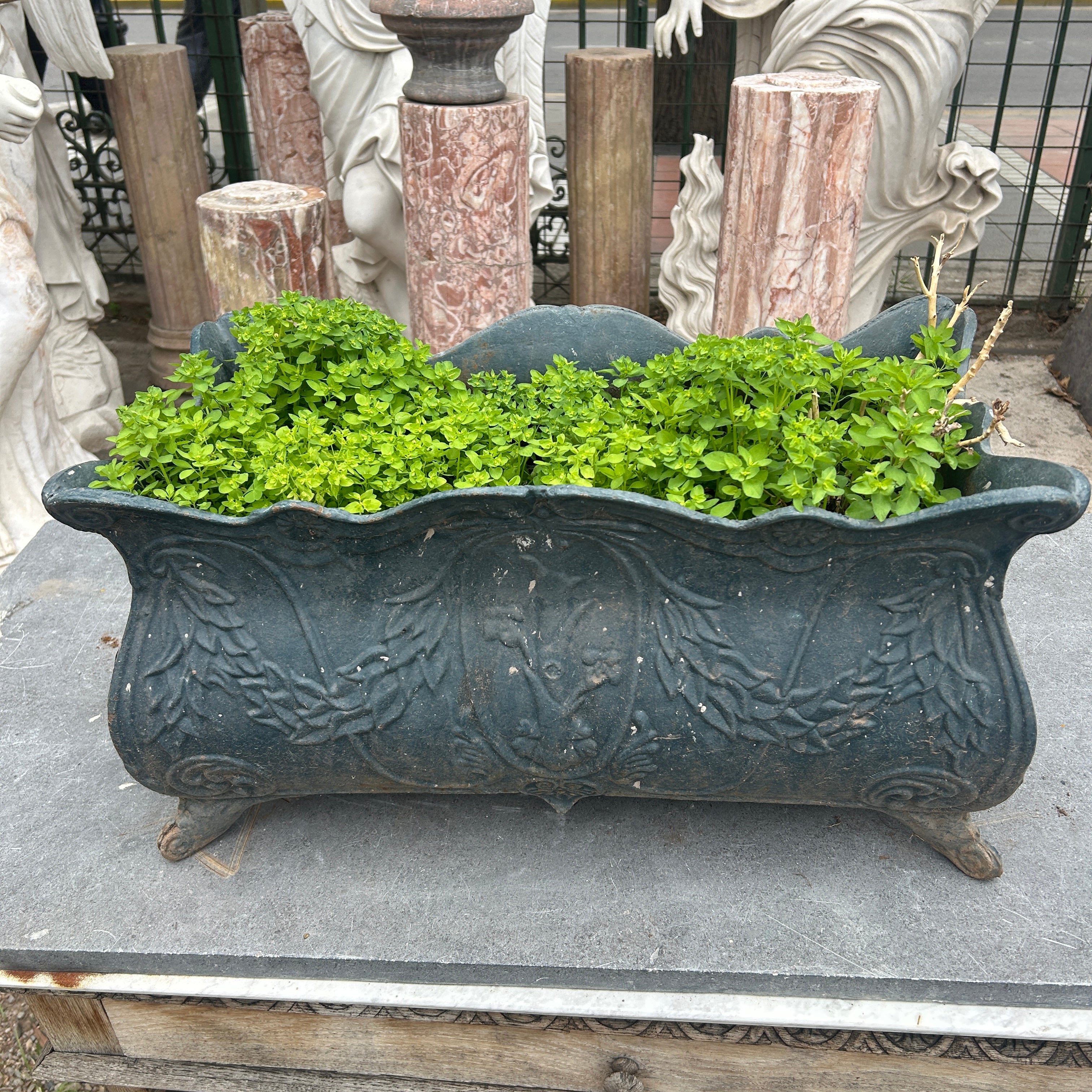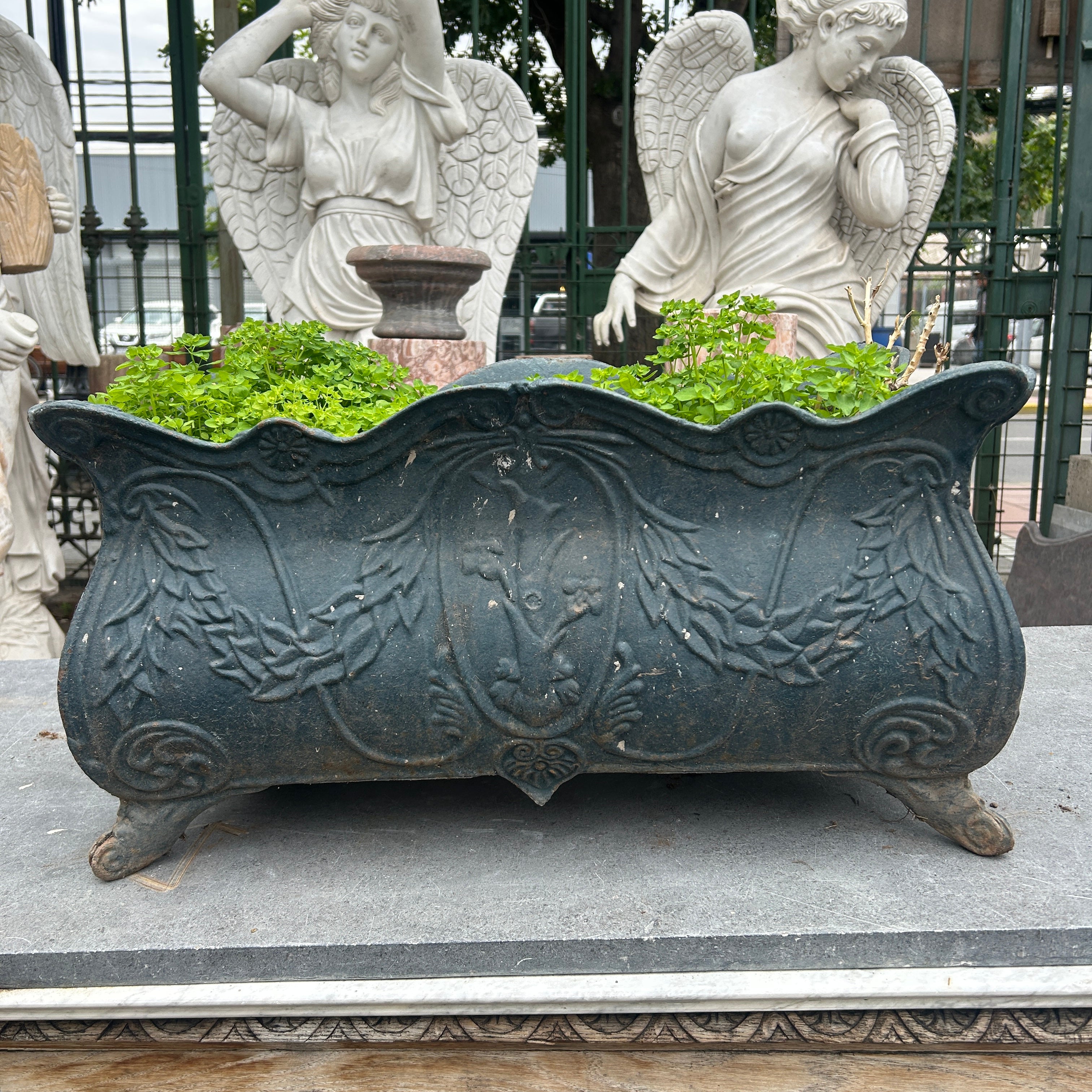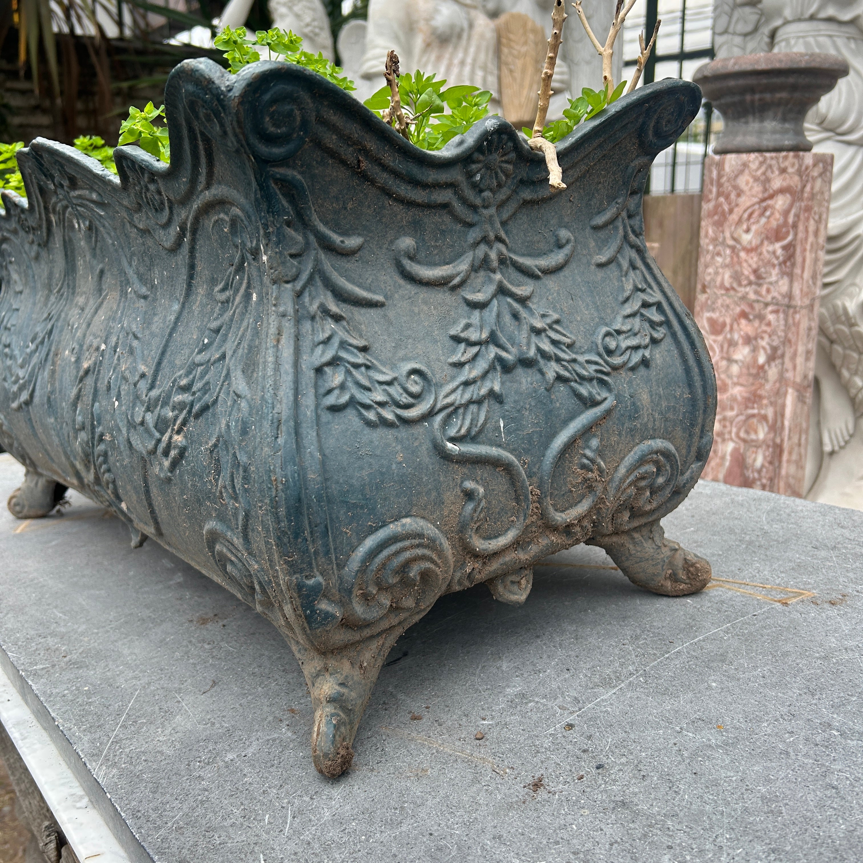 Jardinera rectangular de fierro fundido 1920s.