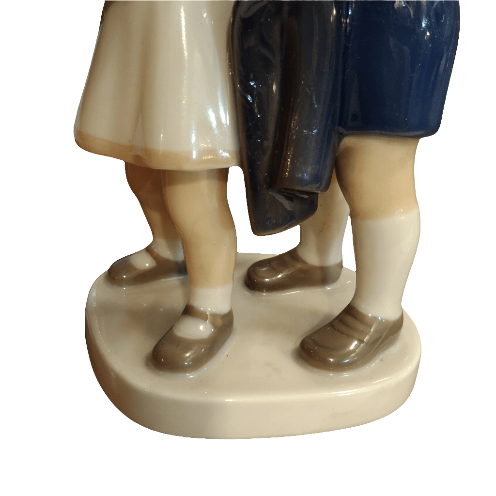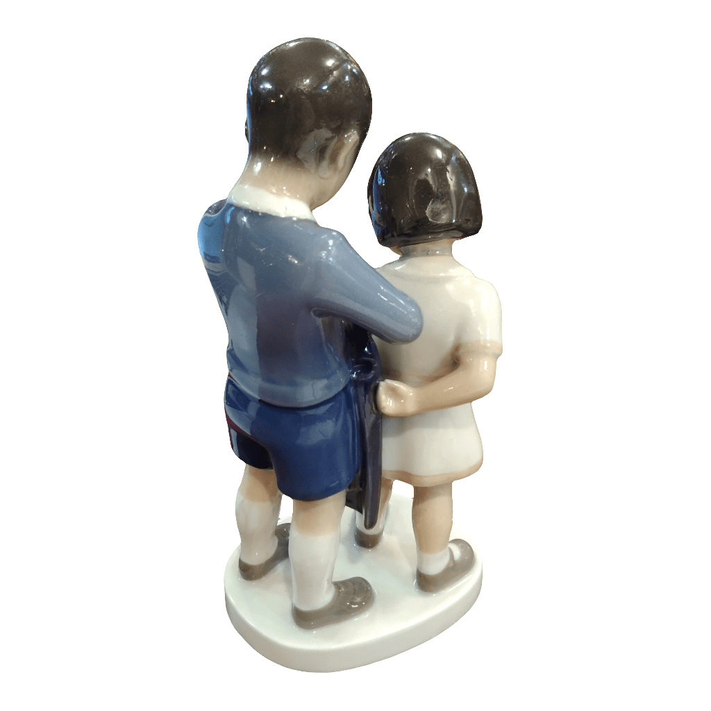 Figura de porcelana danesa Bing & Grondhal 'hermanos preparándose para el colegio'