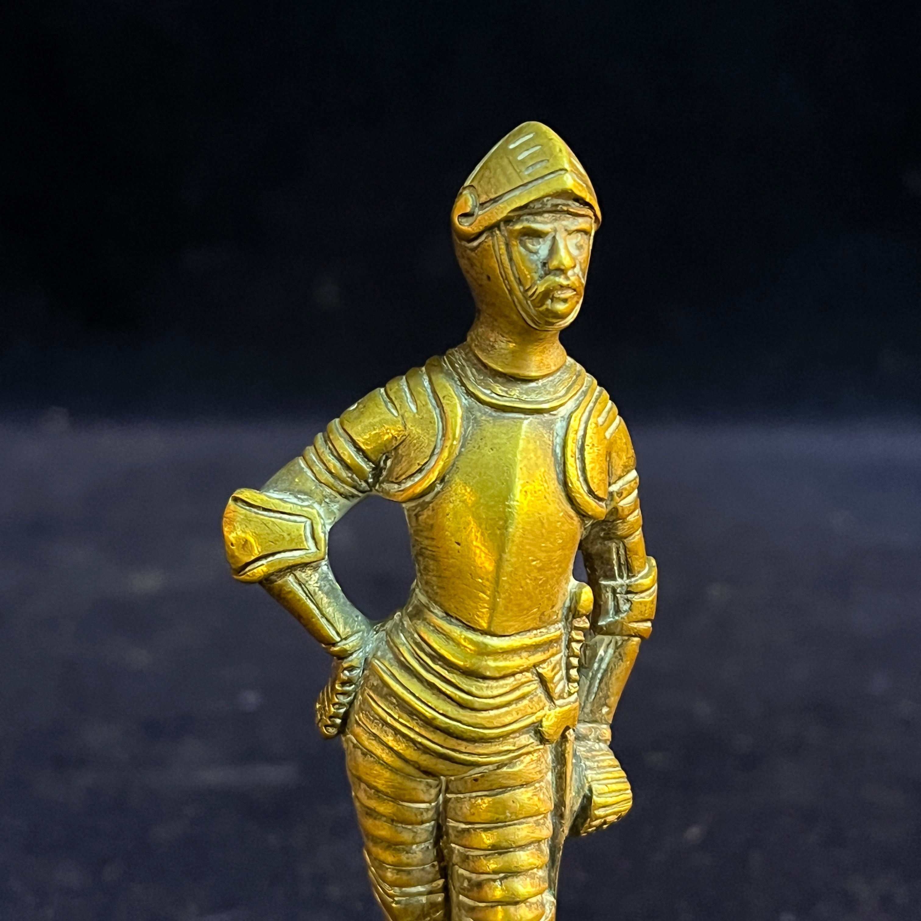 Figura francesa bronce caballero medieval pose relajada