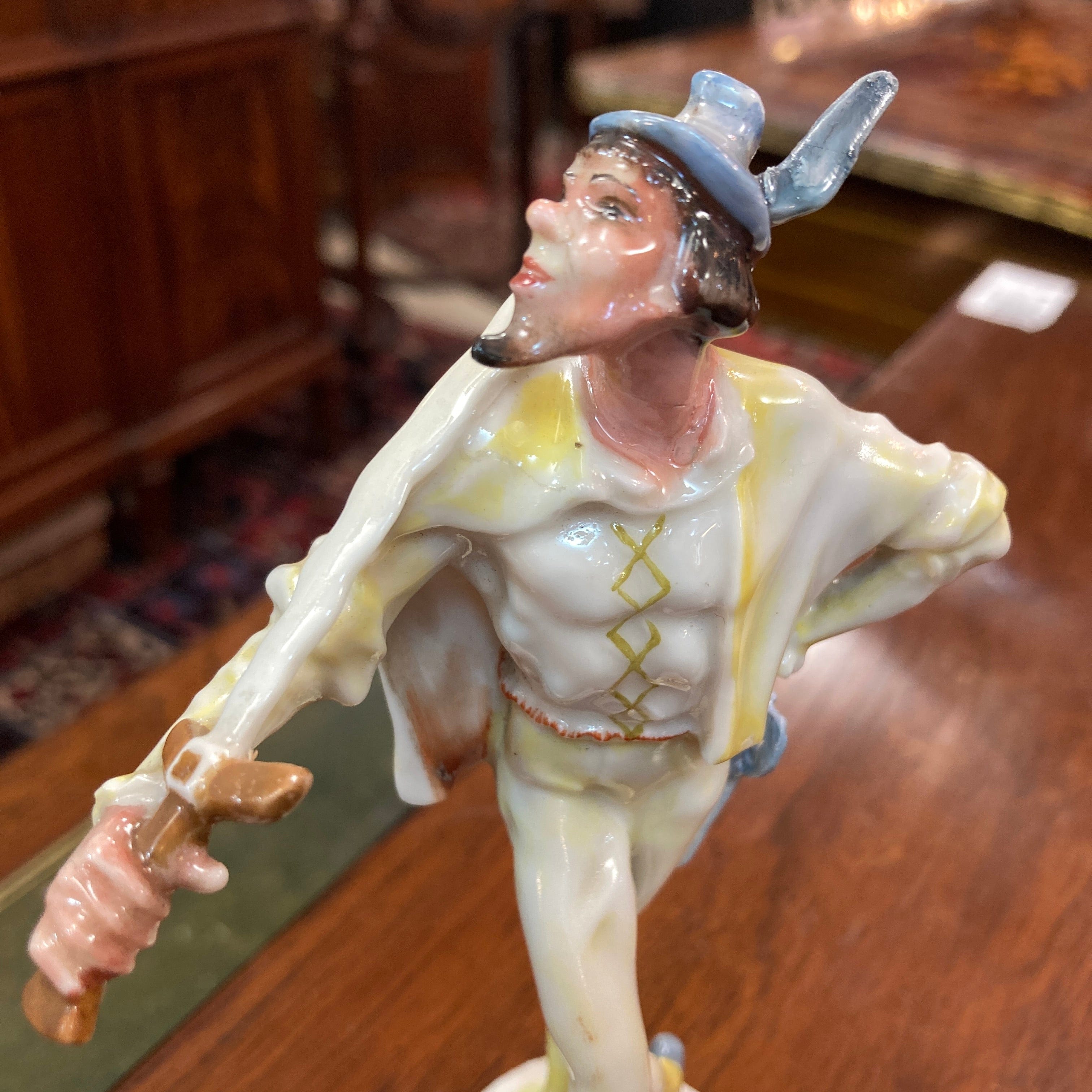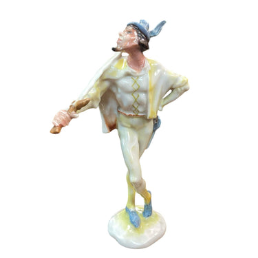 Bella figura de porcelana alemana de la marca Hurschenreuther, que retrata a un espadachín.