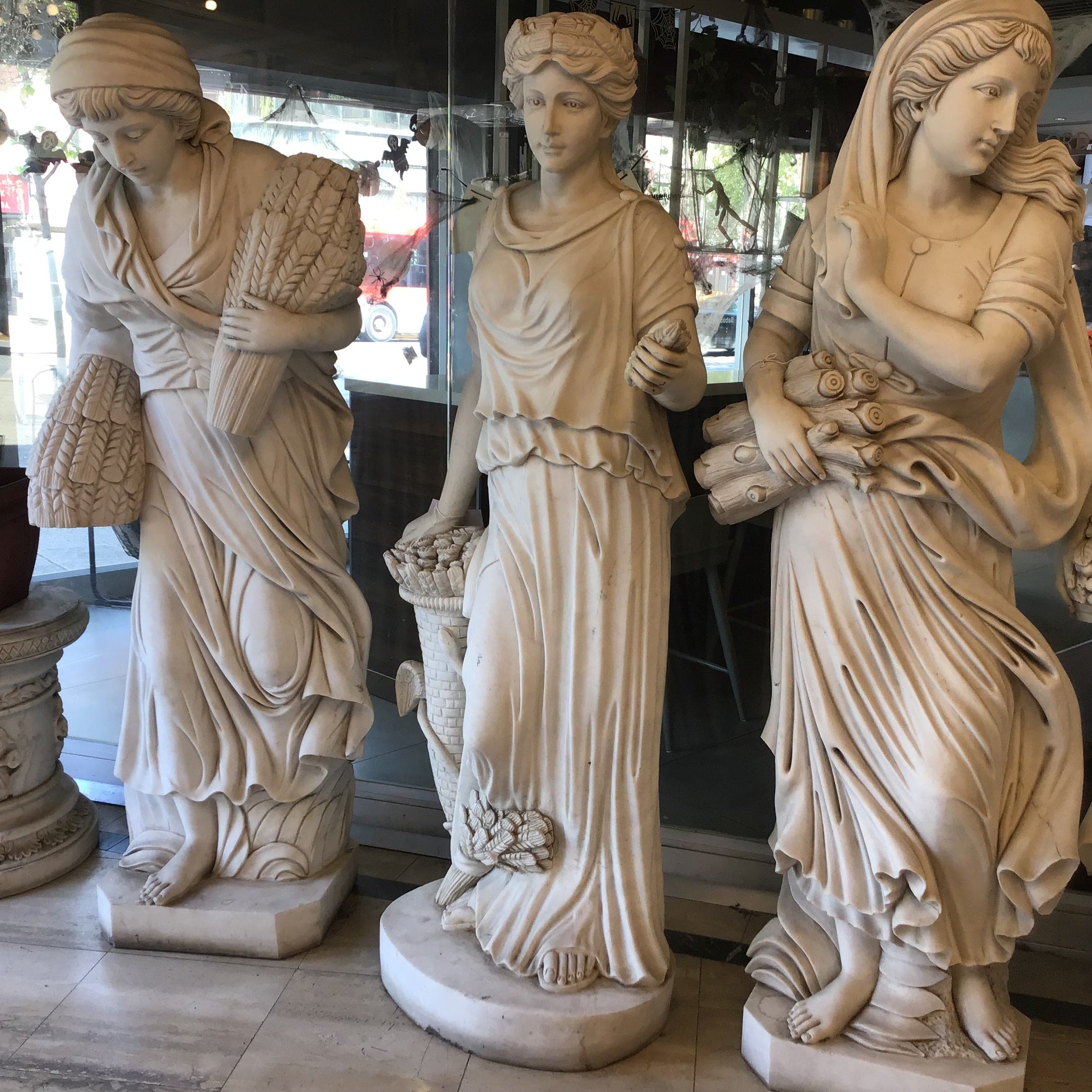 Escultura tallada en mármol de inspiración griega. En "Las cuatro estaciones", esta pieza representa la primavera.