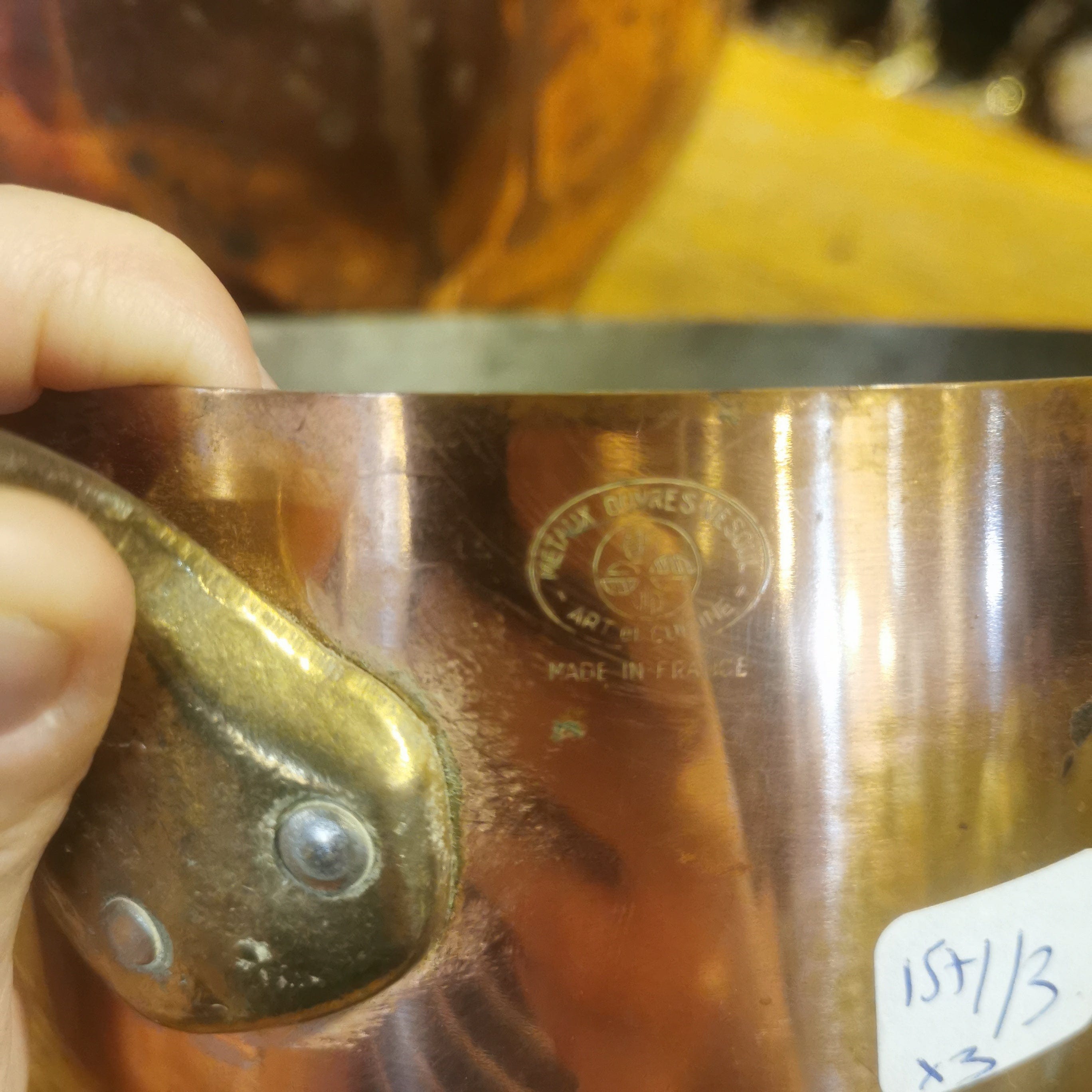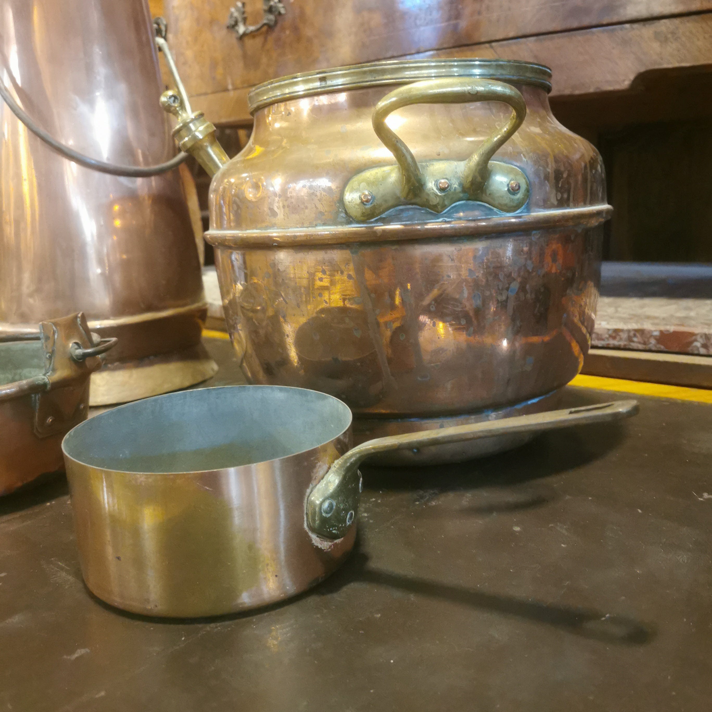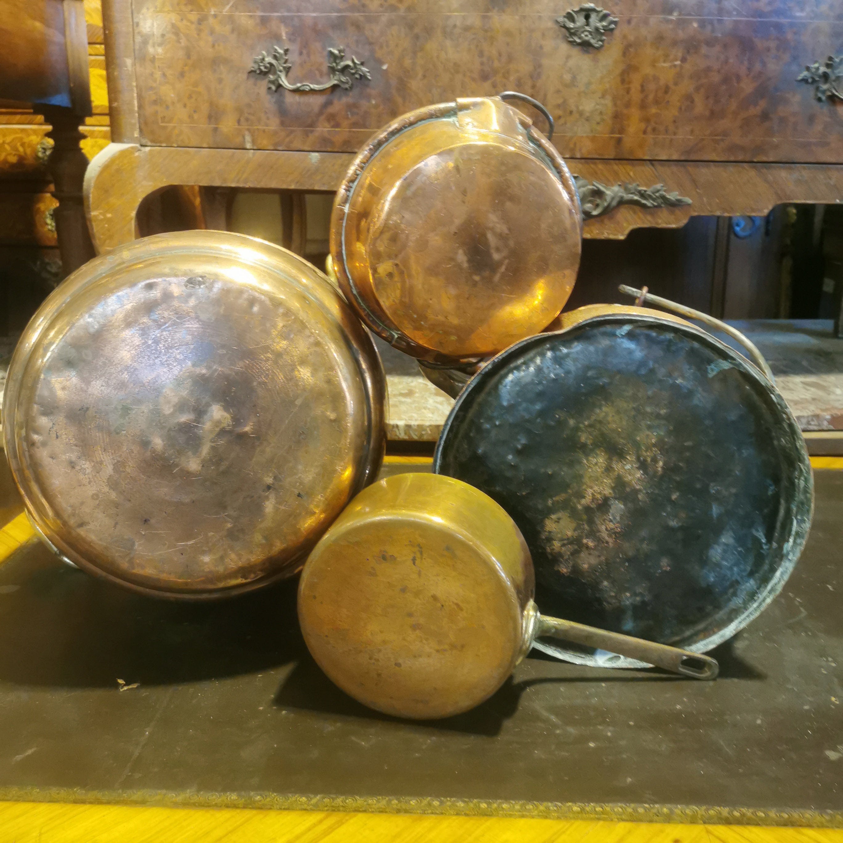Bellas piezas de cobre francesas. Tres llevan su sello original.