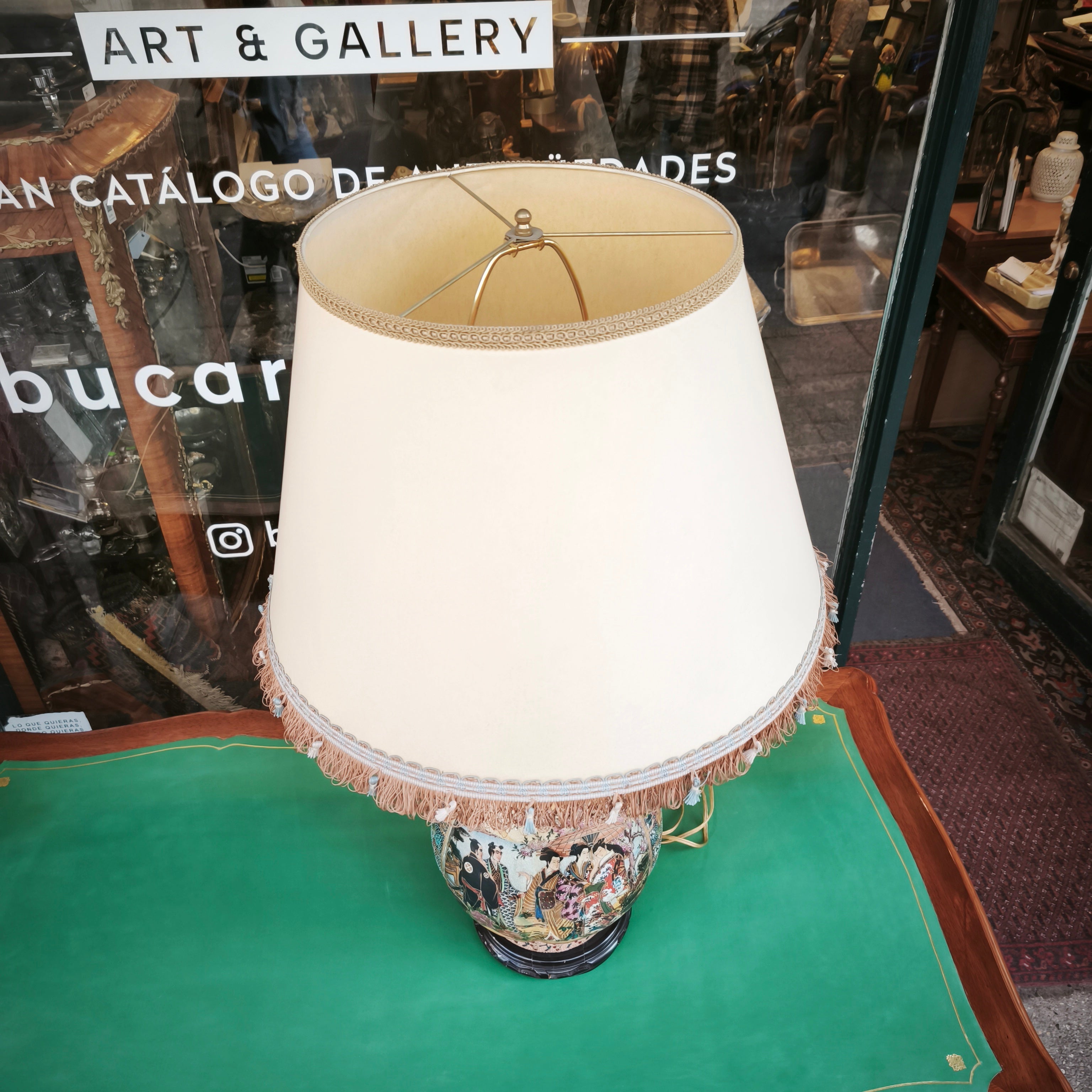 Lámpara china estilo Satsuma con peana diseño dorado y floral