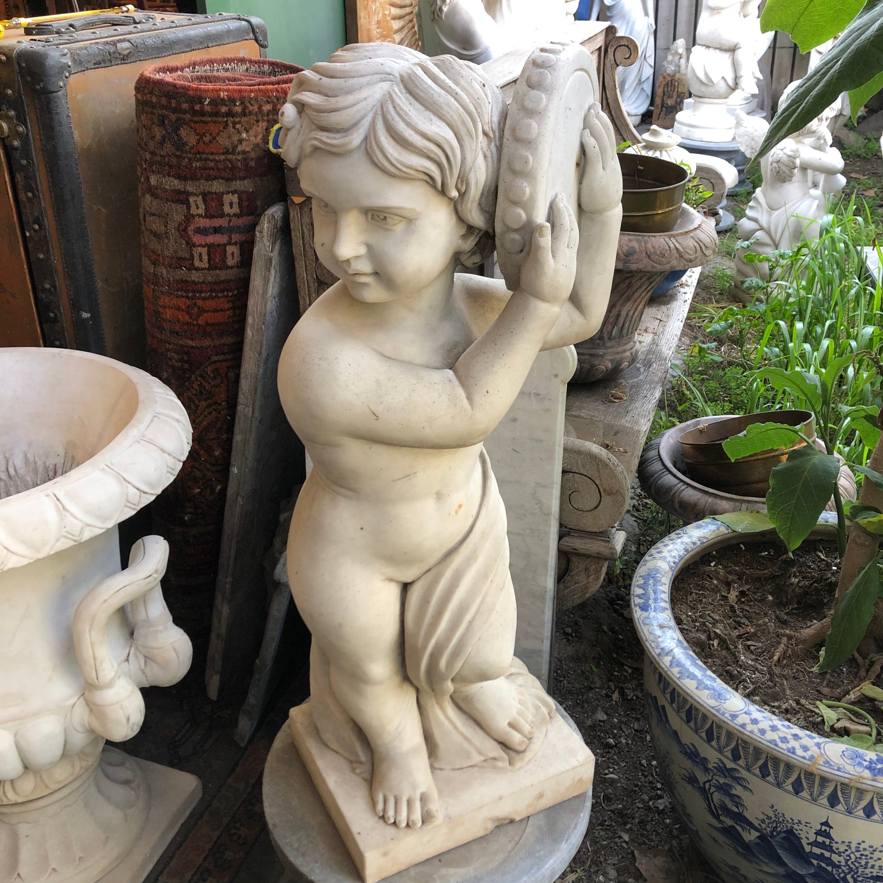 Escultura de mármol - Niño con pandero