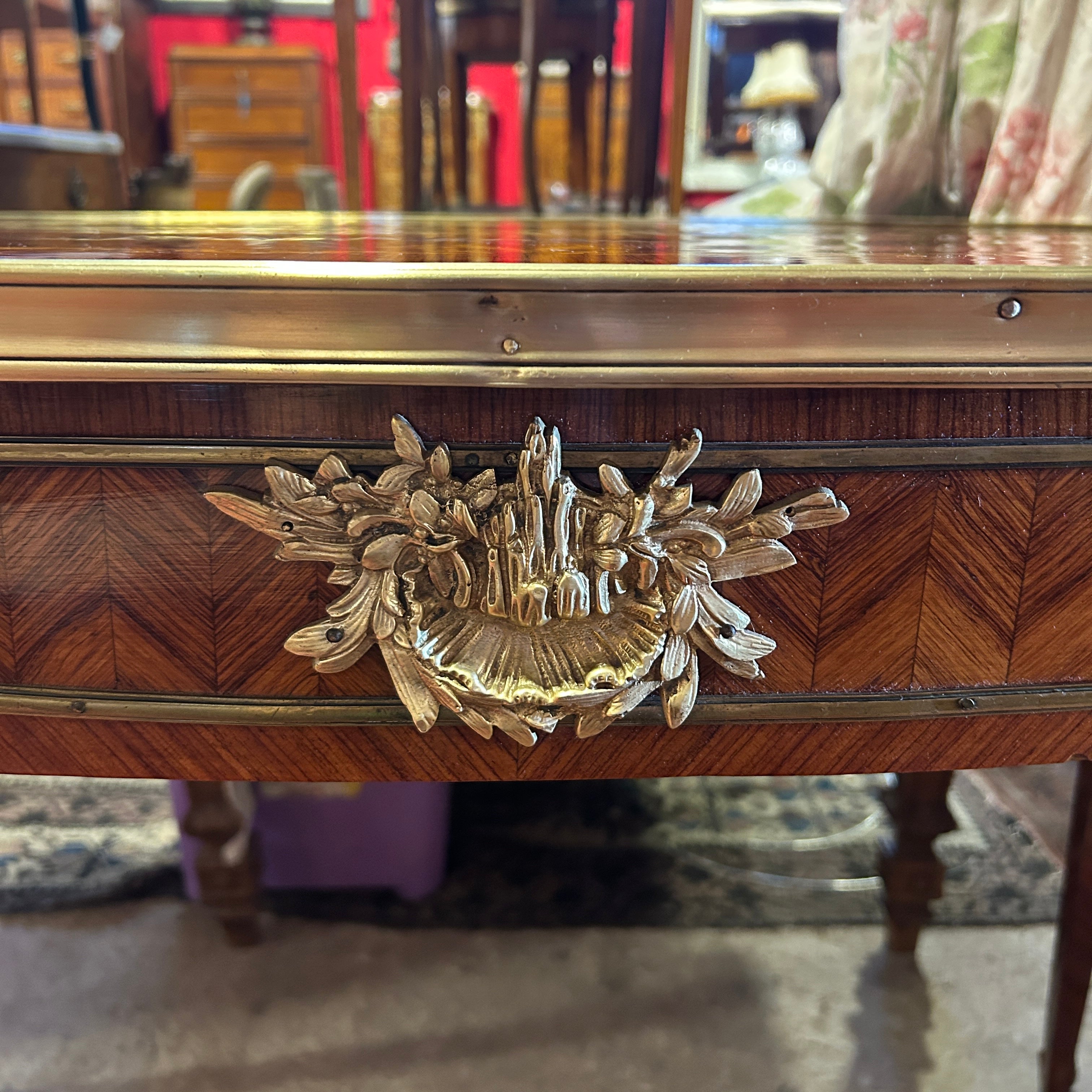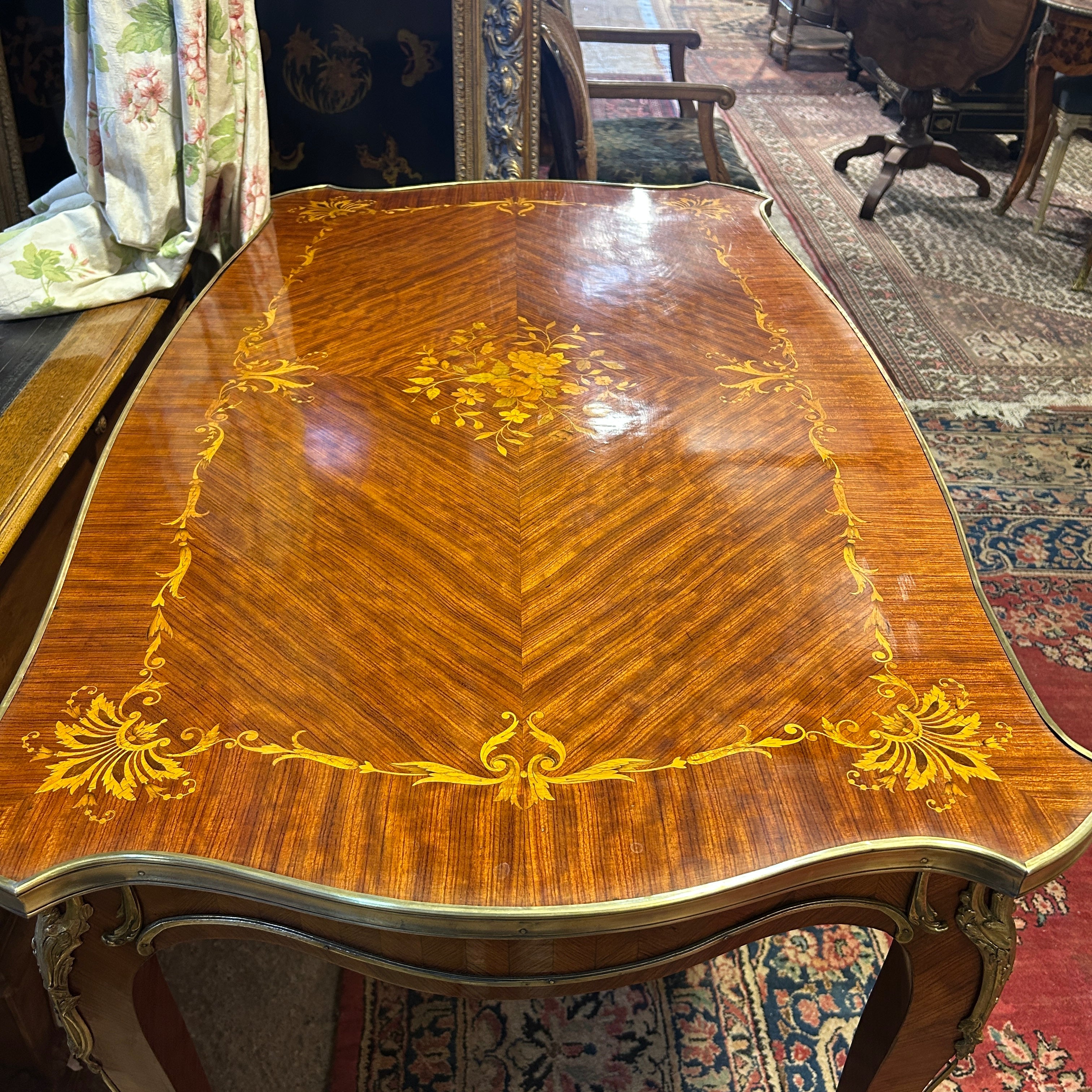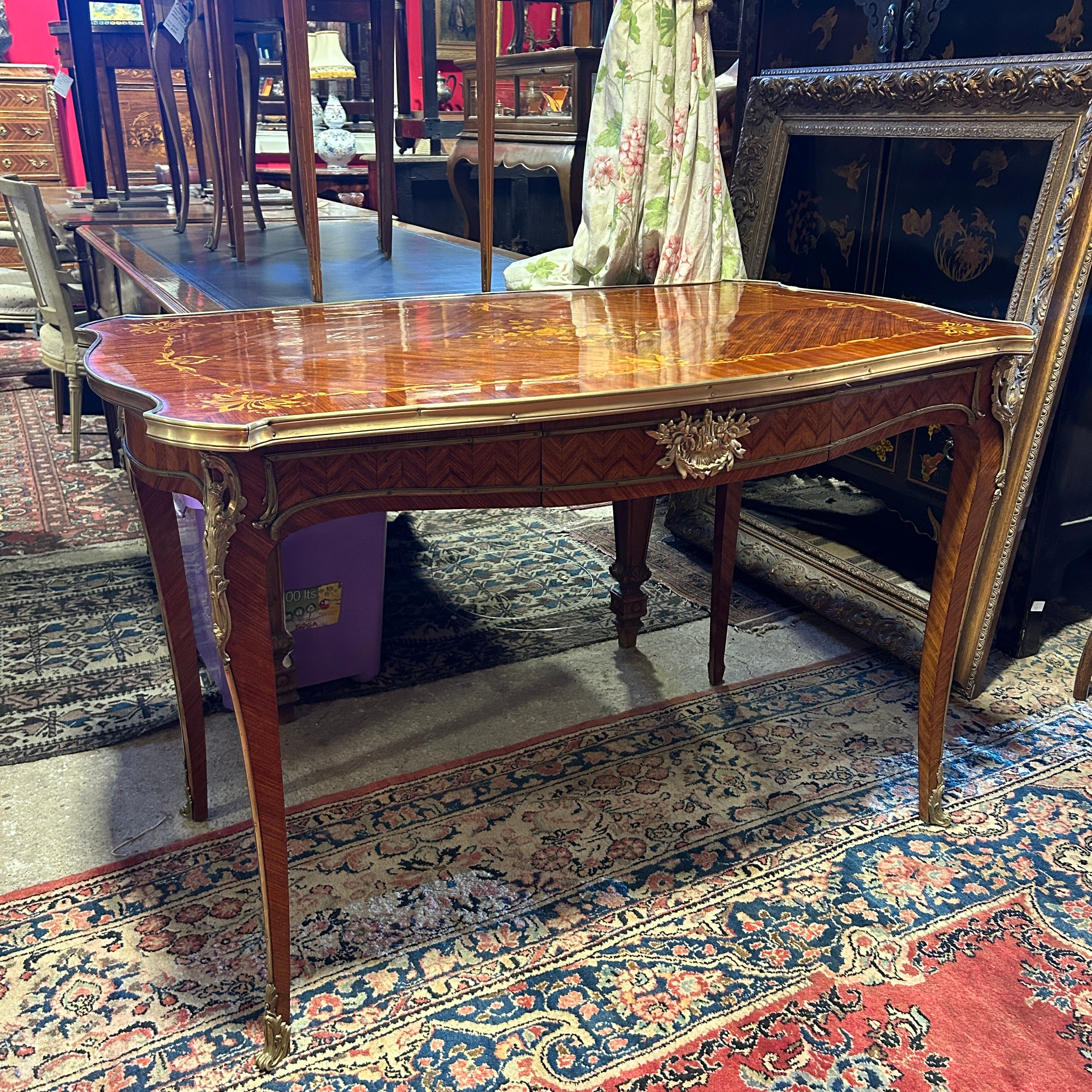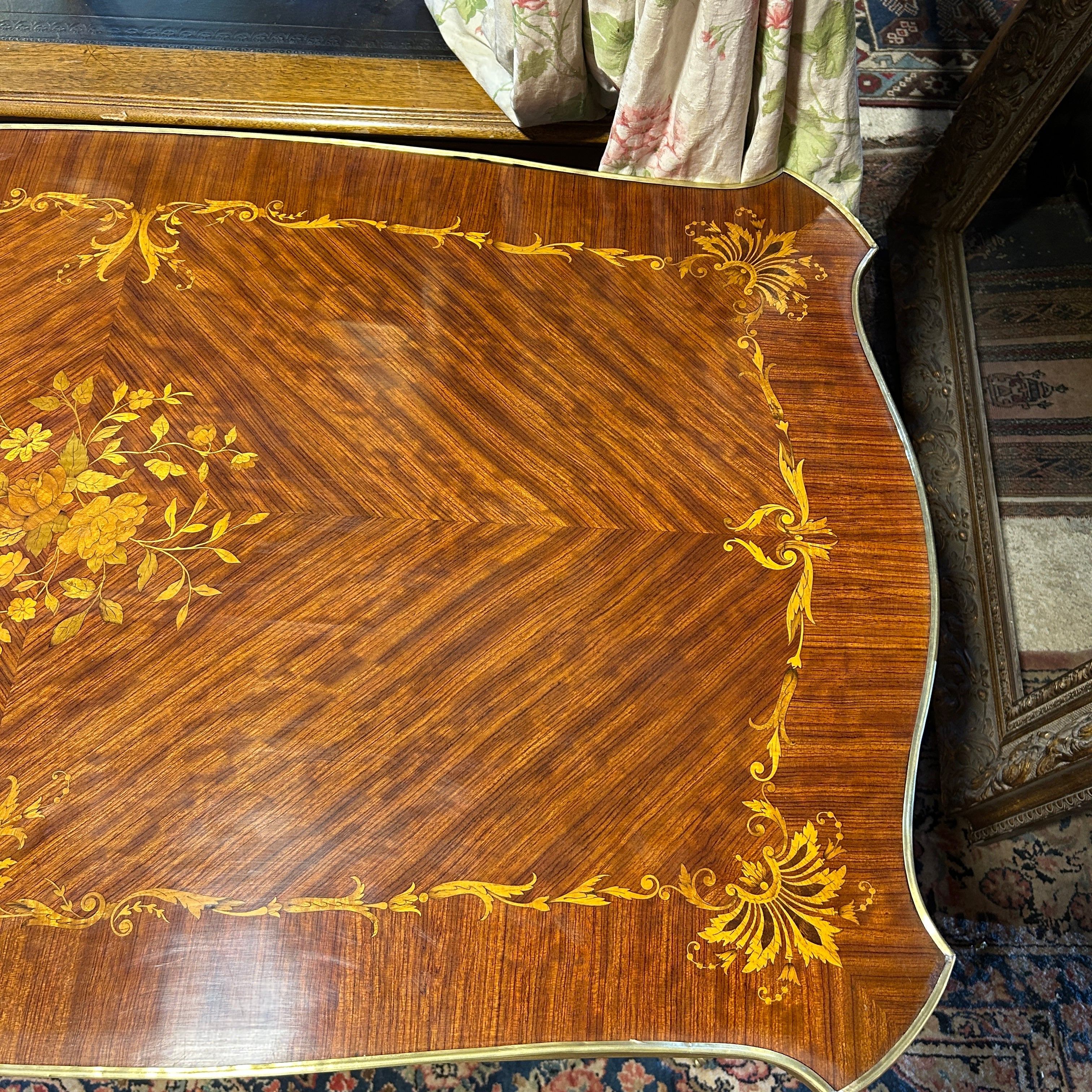 Mesa de escritorio francesa estilo Luis XV marquetería floral