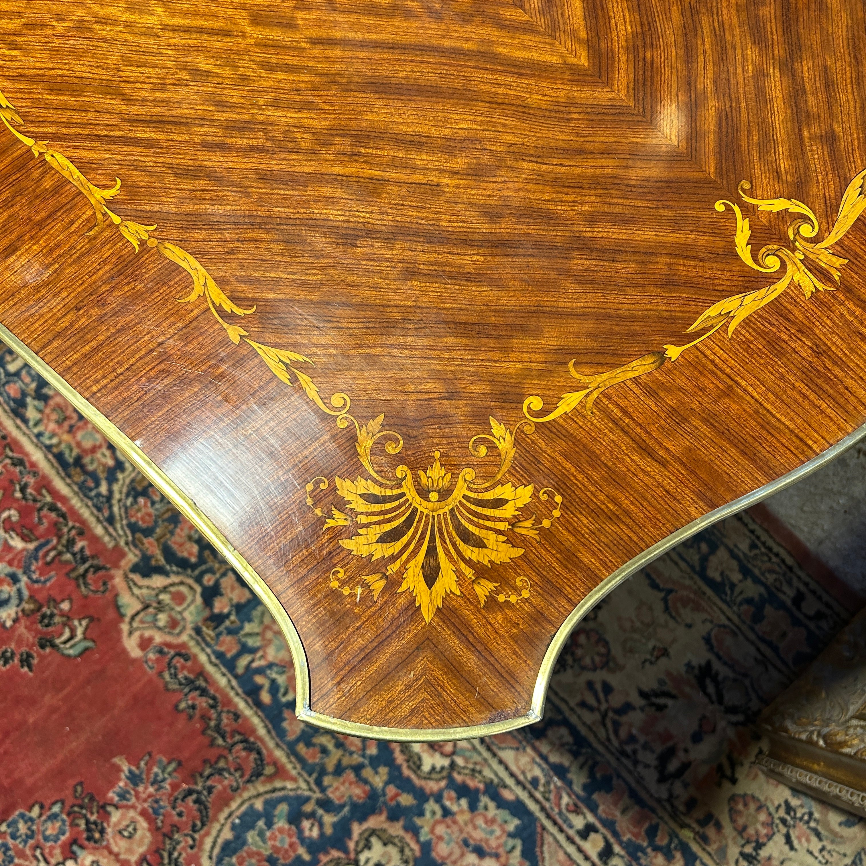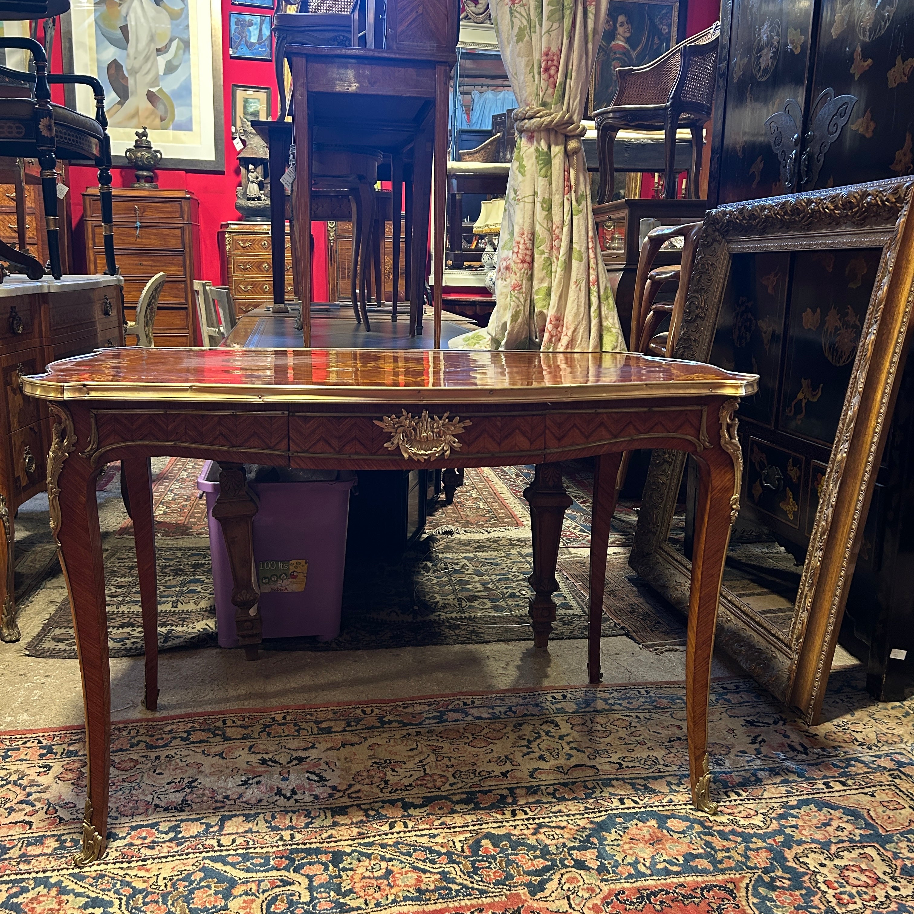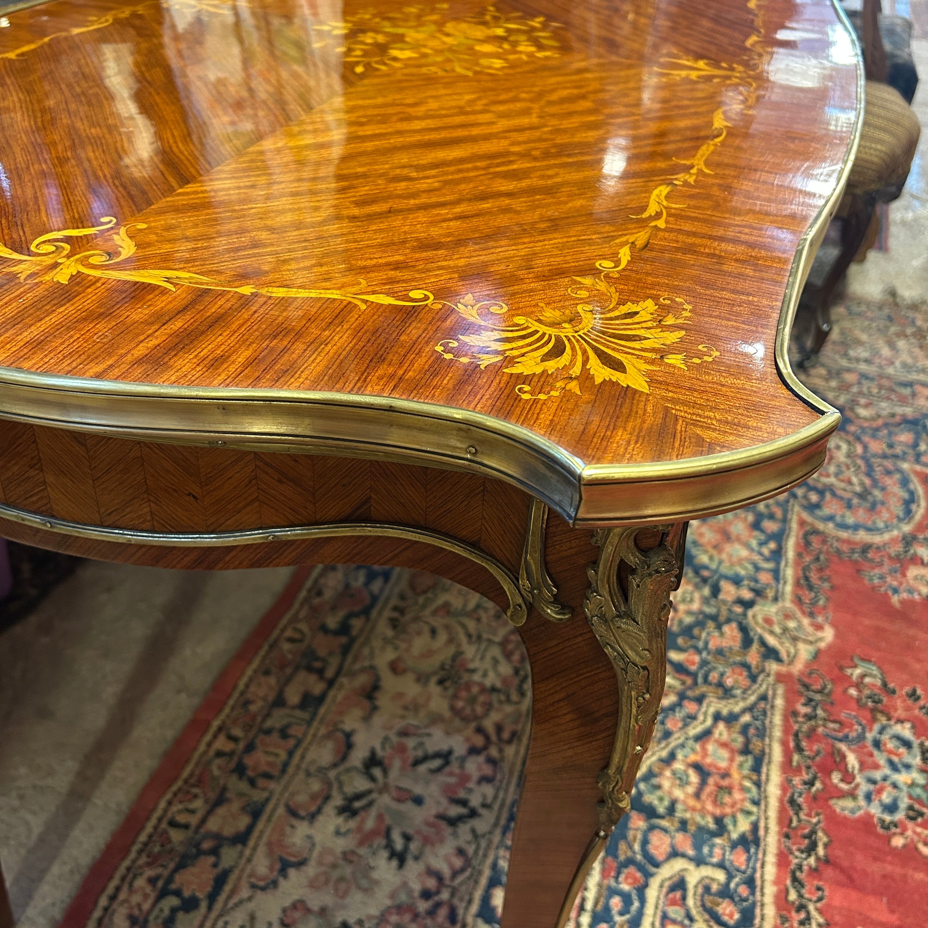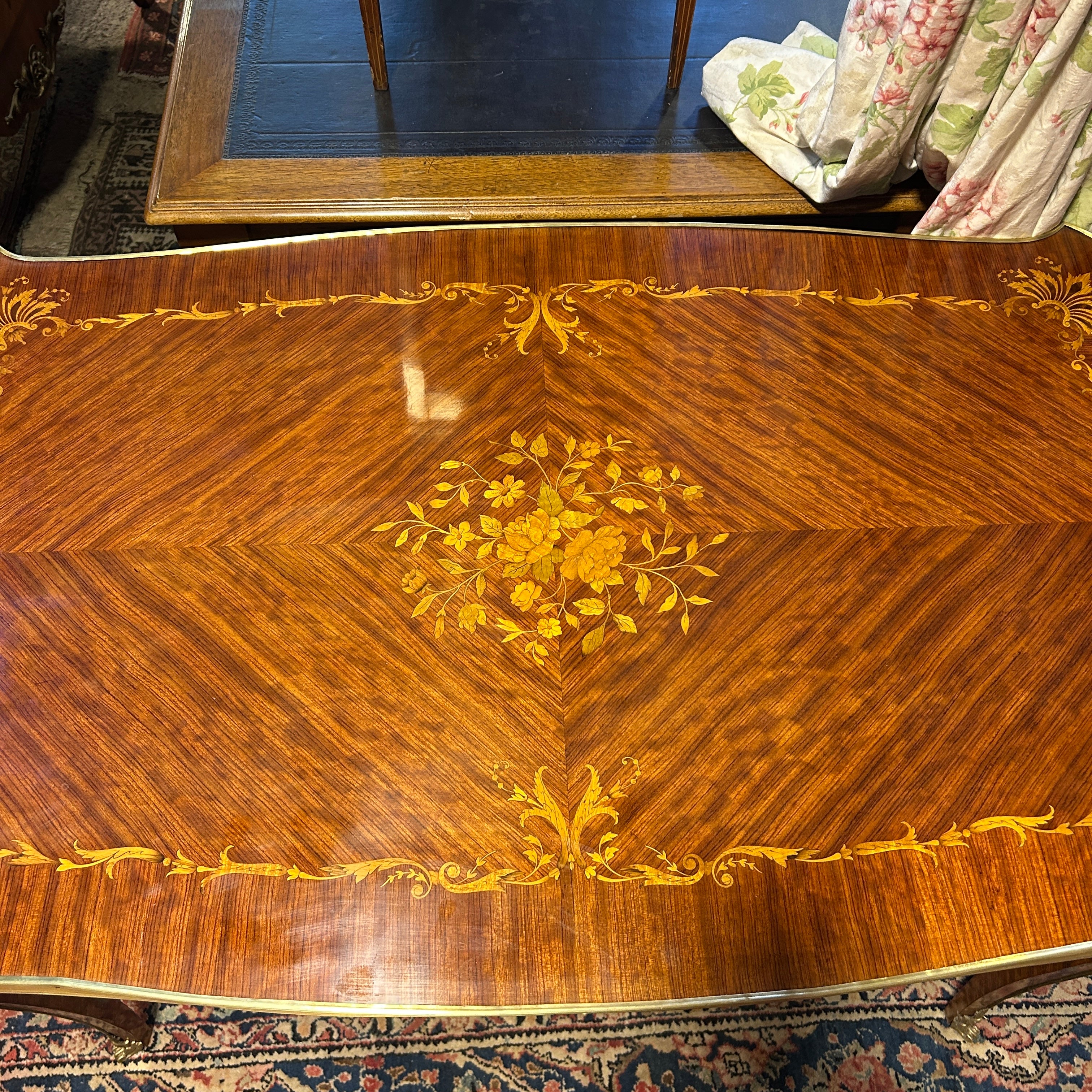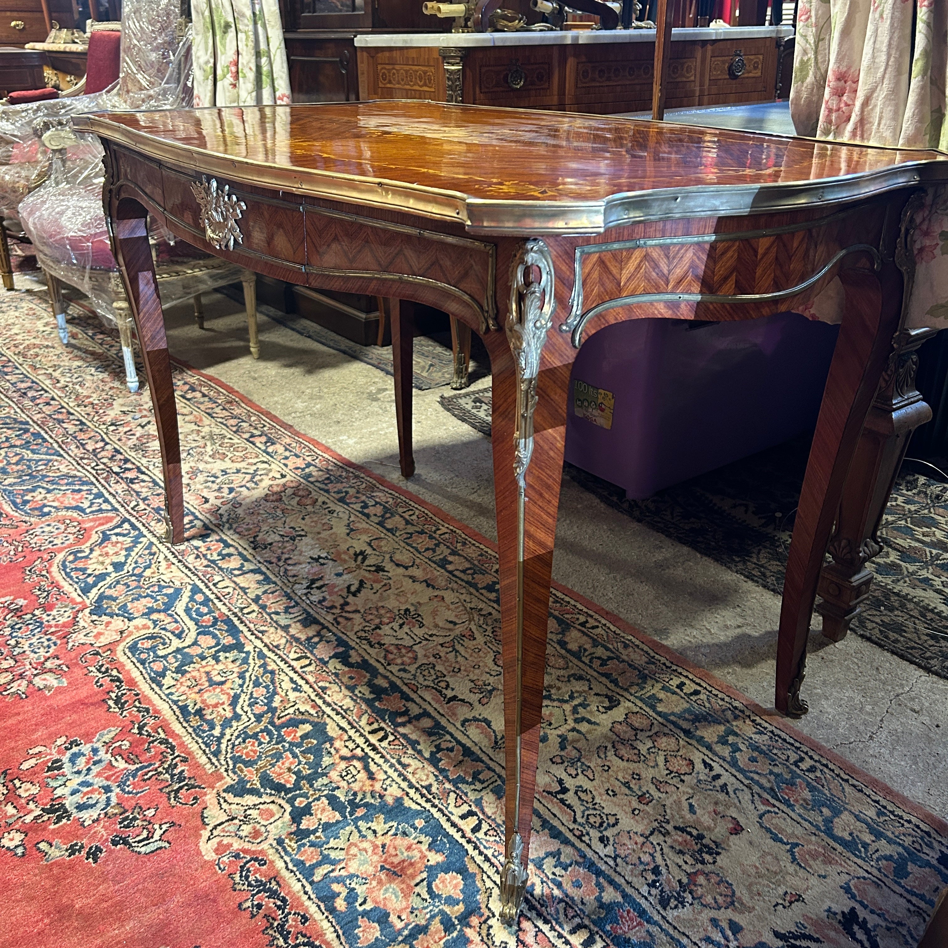 Mesa de escritorio francesa estilo Luis XV marquetería floral