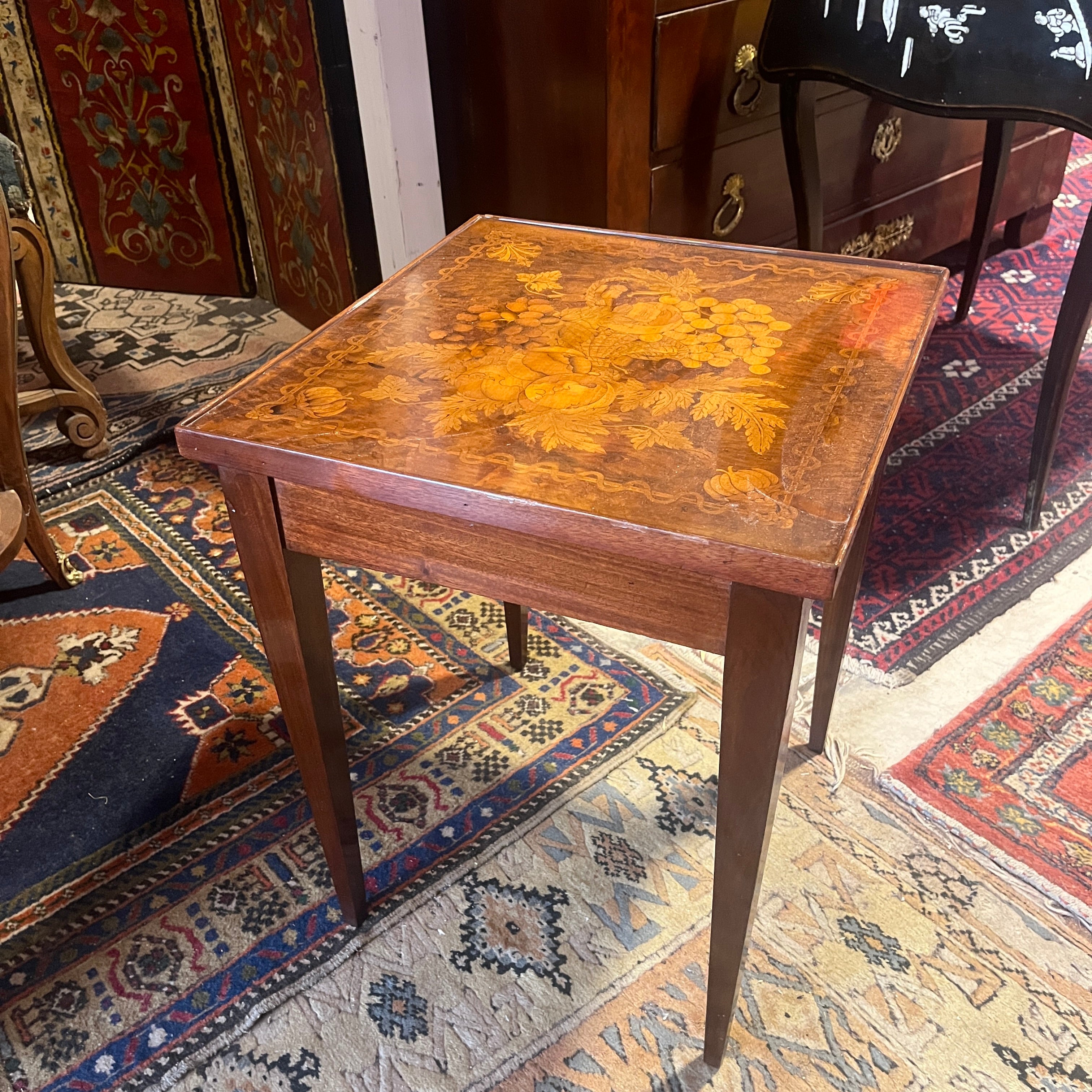 Mesita de apoyo holandesa contemporánea pino y fina marquetería en múltiples maderas frutales