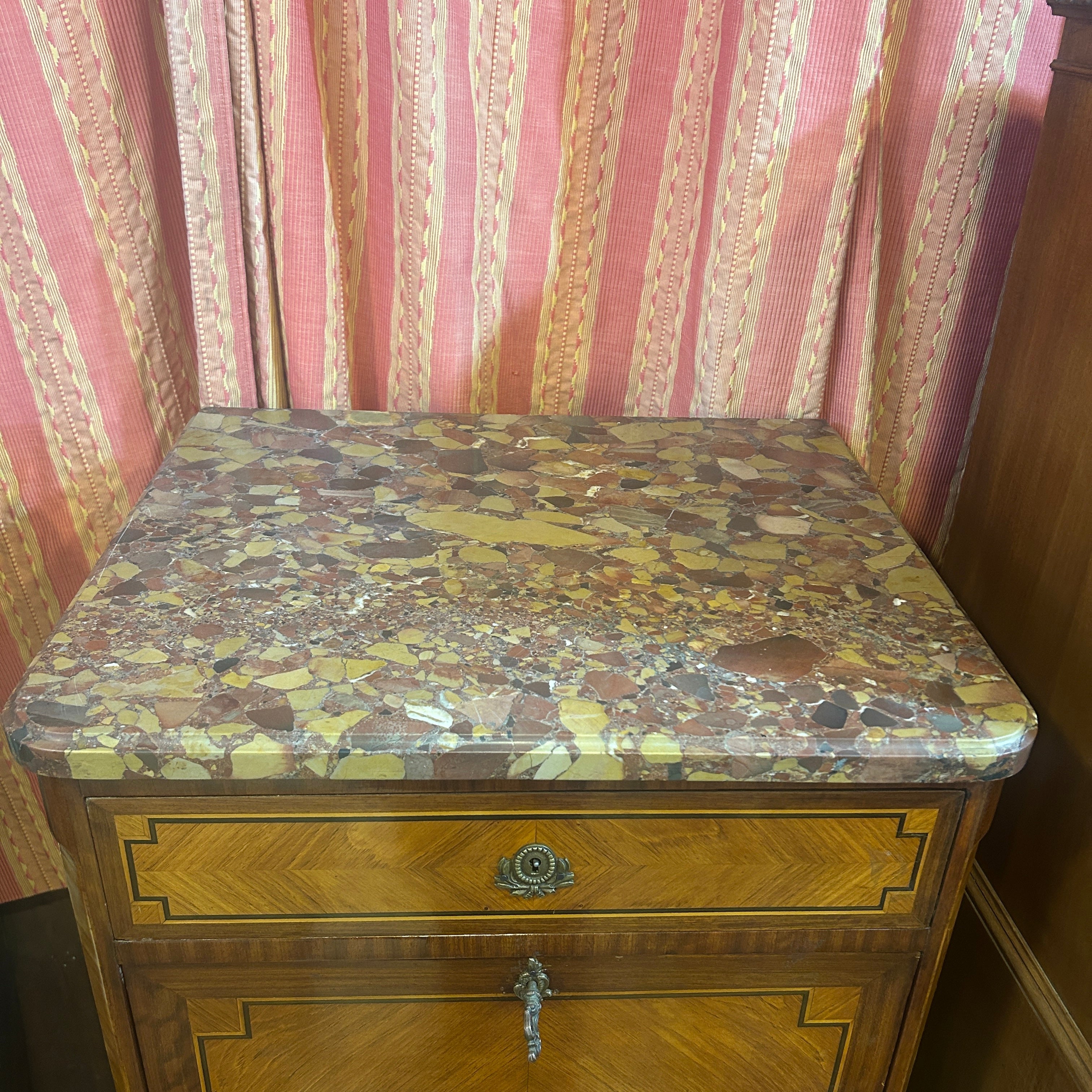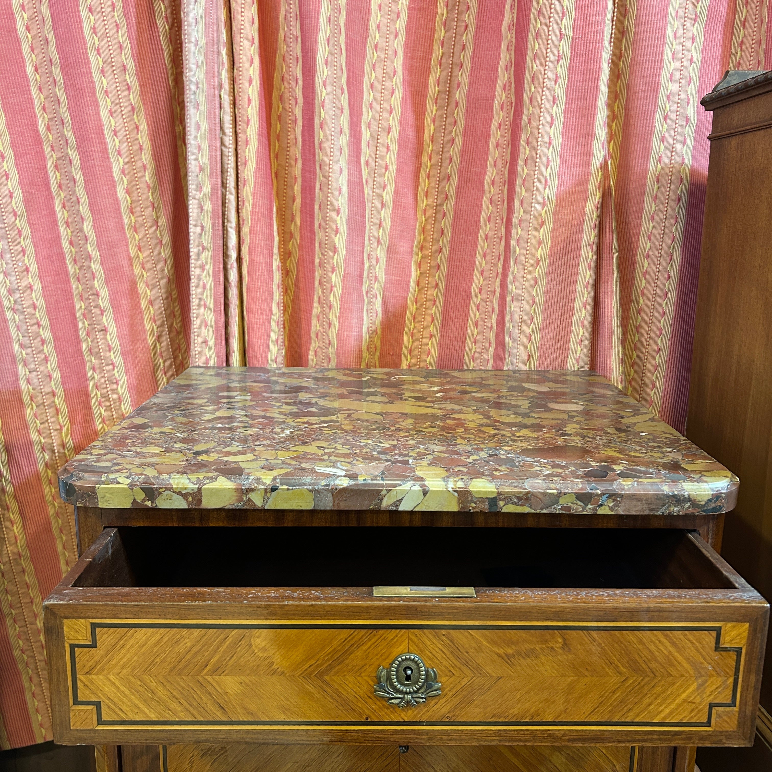 Petit chiffonier francés estilo transición con cubierta de mármol