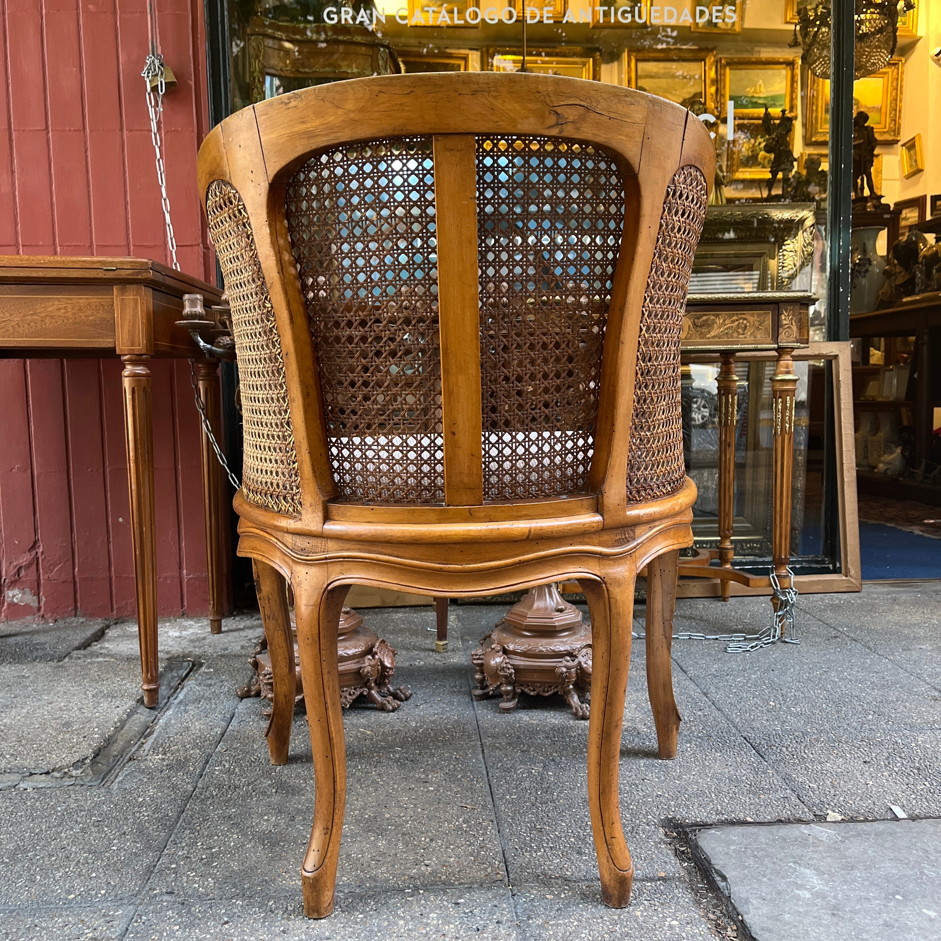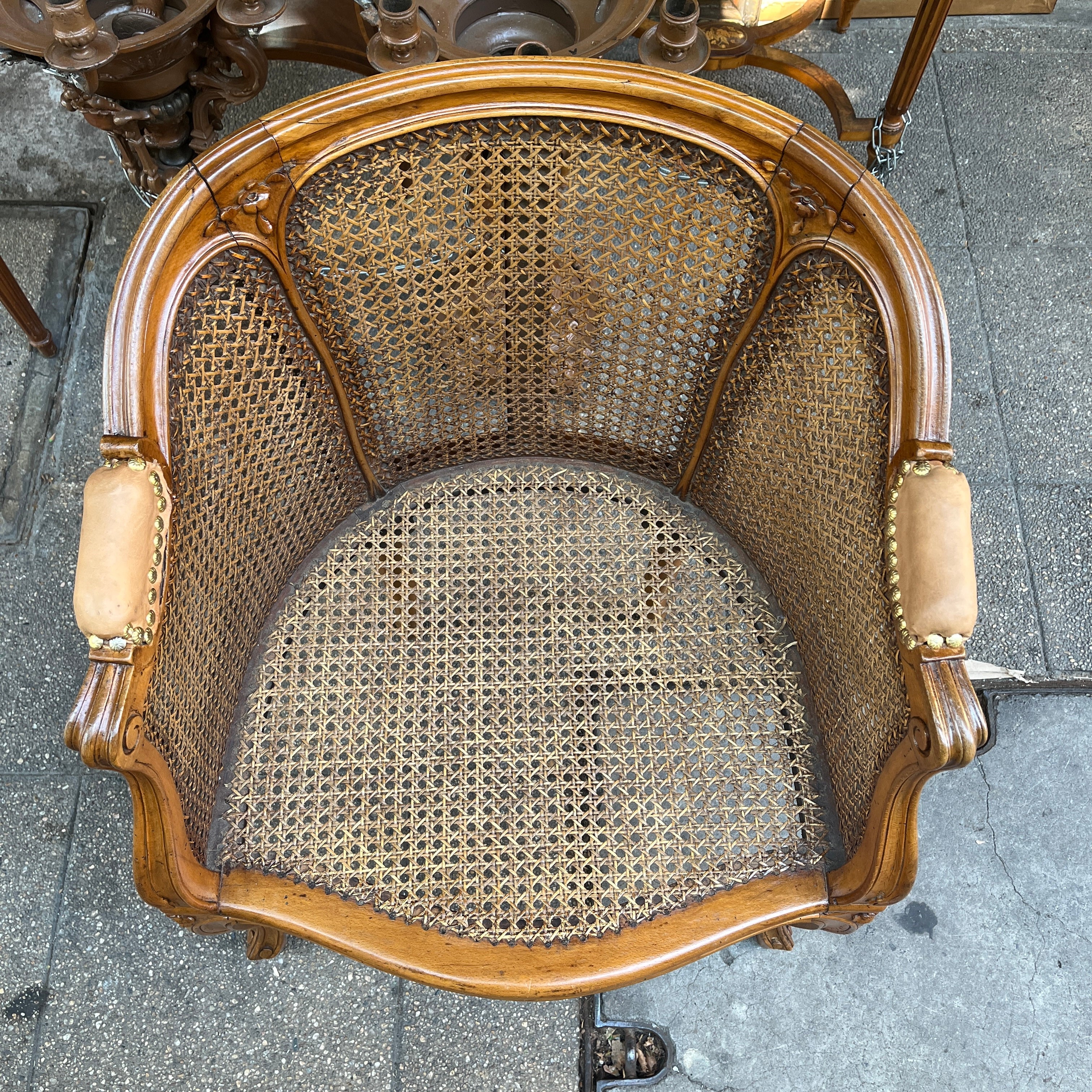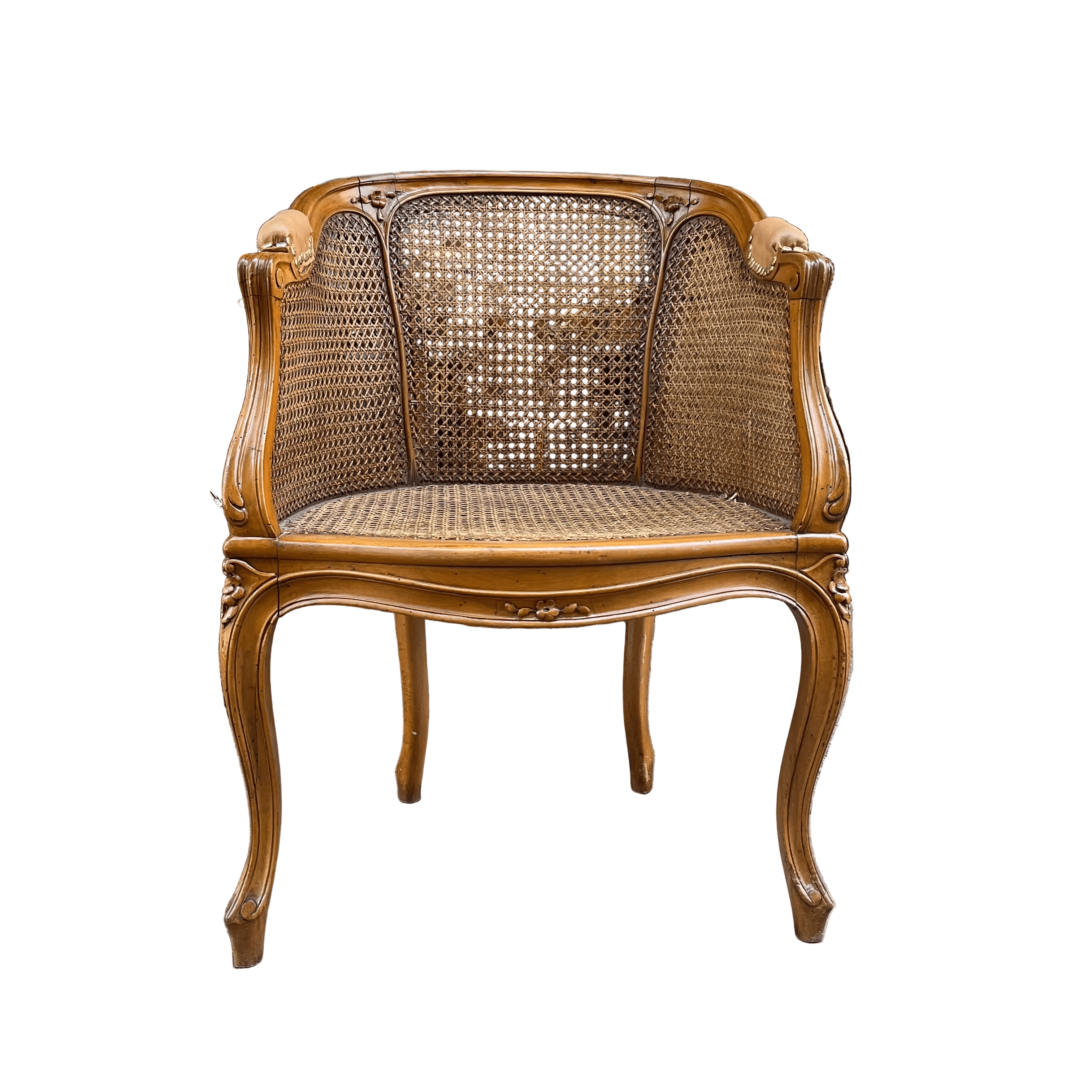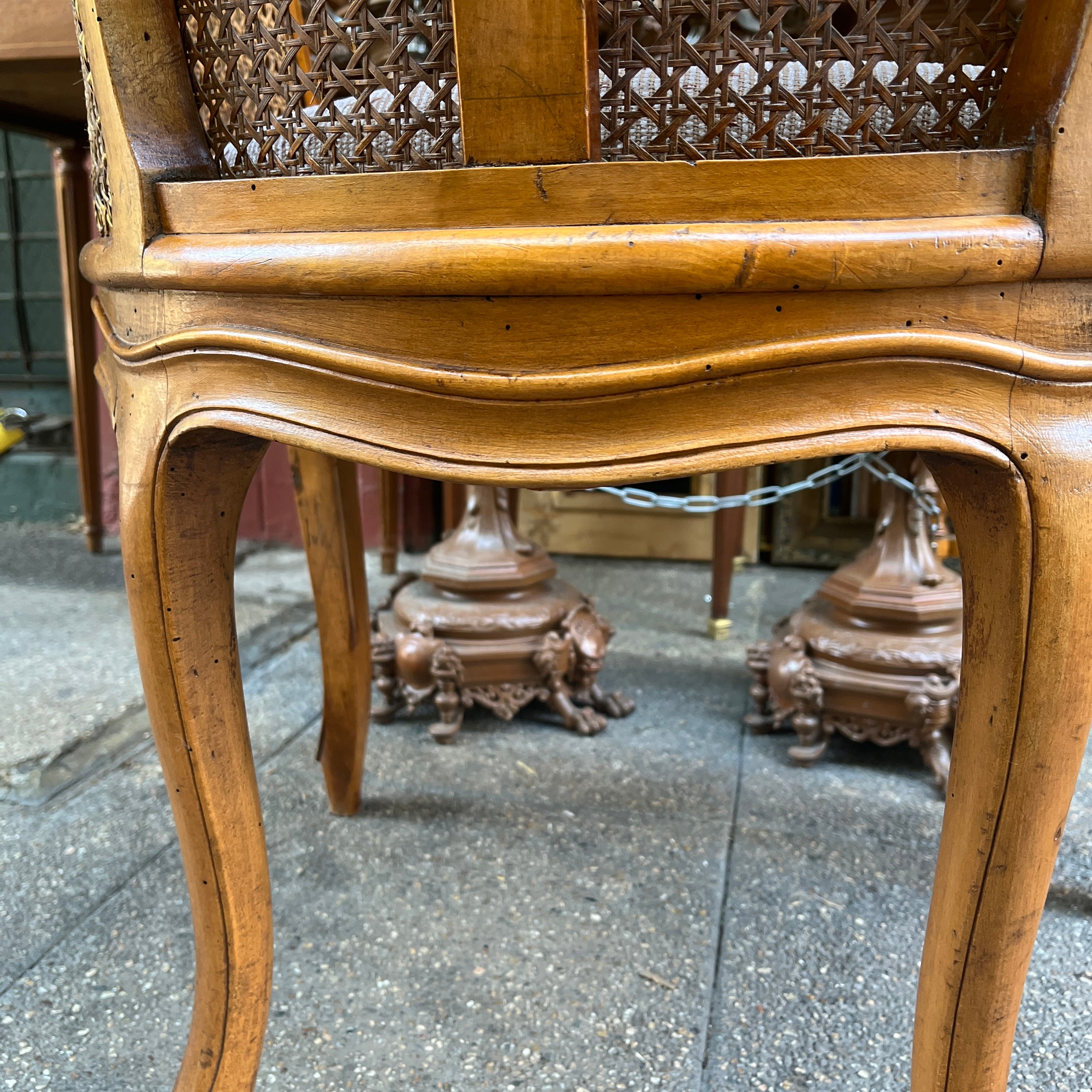 Sitial francés estilo Luís XV de haya enjuncado y clavetones de bronce circa 1900